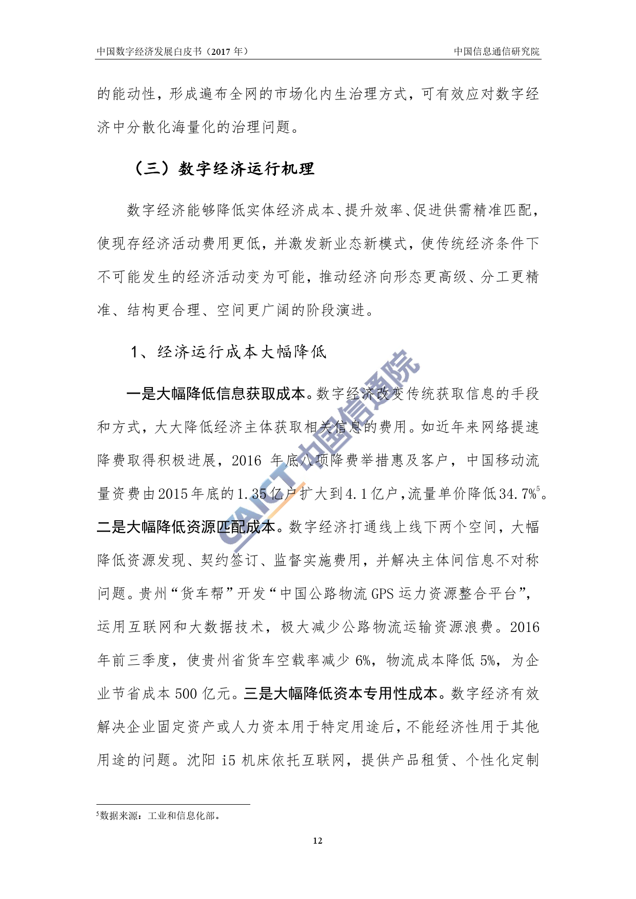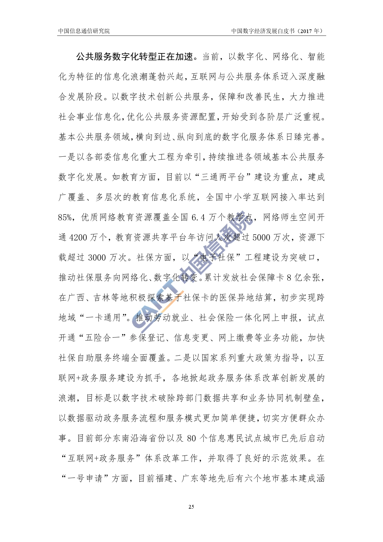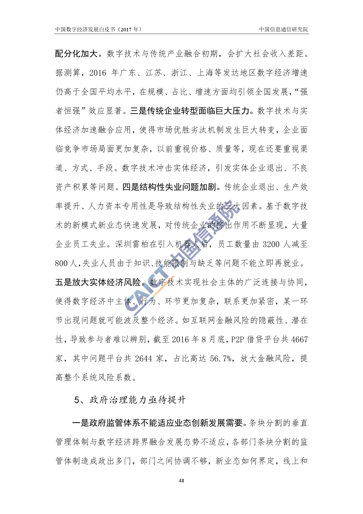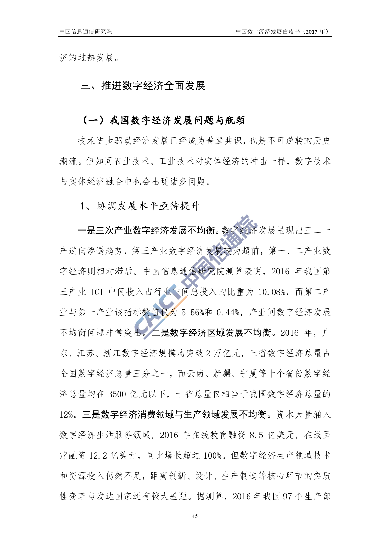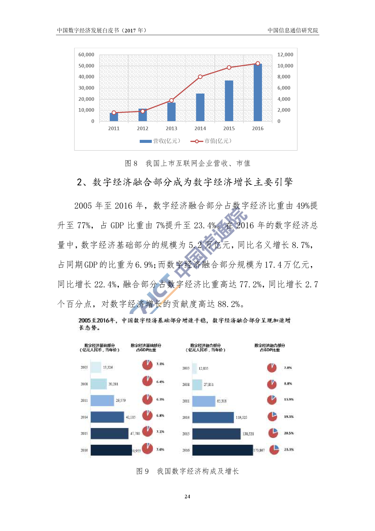 当前,我国数字经济正在进入快速发展新阶段。2016年,中国数字经济规模达到22.6万亿,同比增长18.9%,占GDP比重达到30.3%,数字经济基础设施实现跨越式发展数字经济基础部分增势稳定,结构优化,新业态新模式蓬勃发展,传统产业数字化转型不断加快,融合部分成为增长主要引擎,面向数字经济的社会治理模式在摸索中不断创新。数字经济在各行业中的发展出现较大差异,数字经济占本行业增加值比重呈现出三产高于二产、二产高于一产的典型特征。