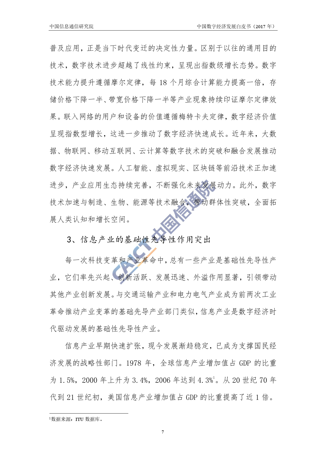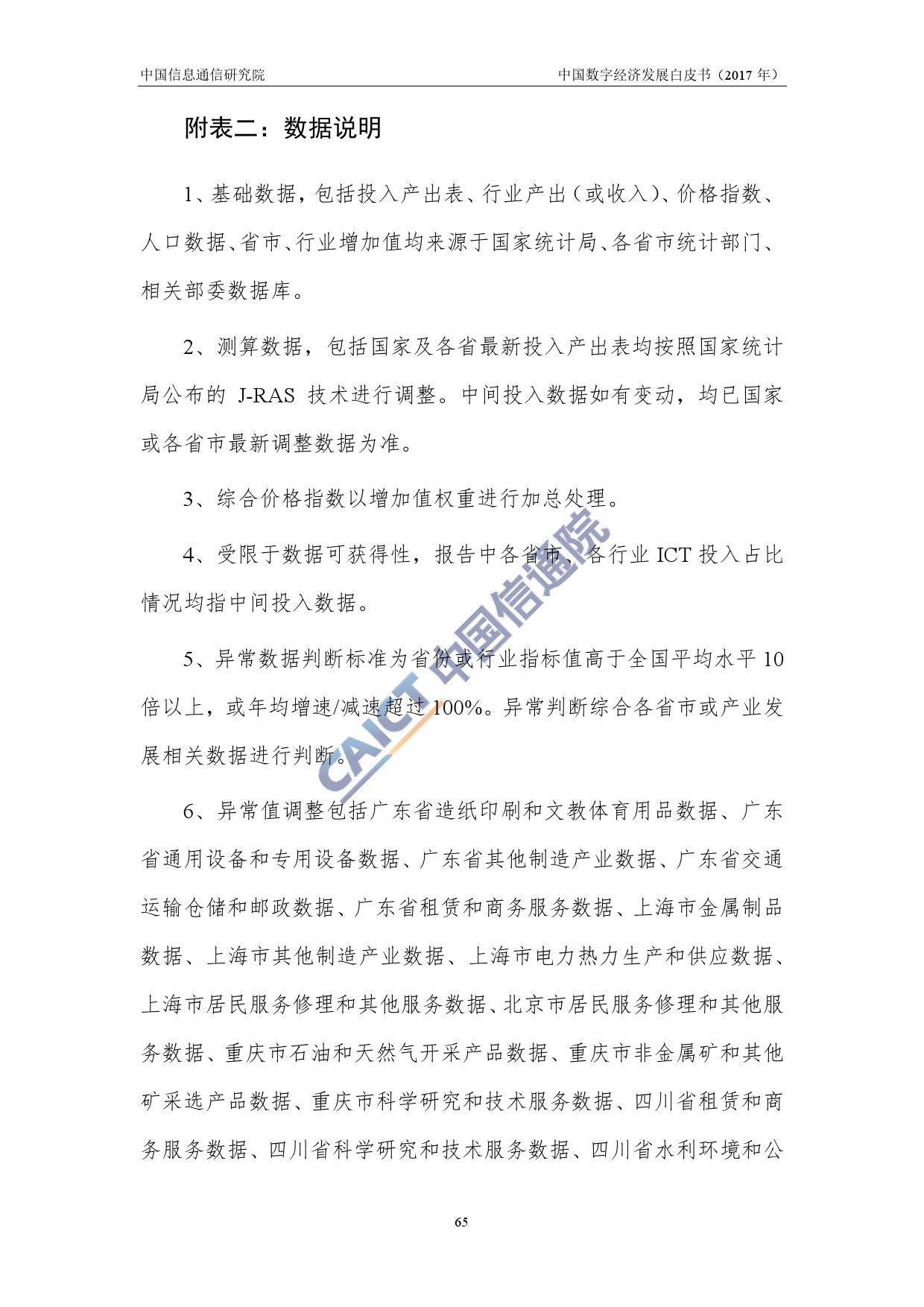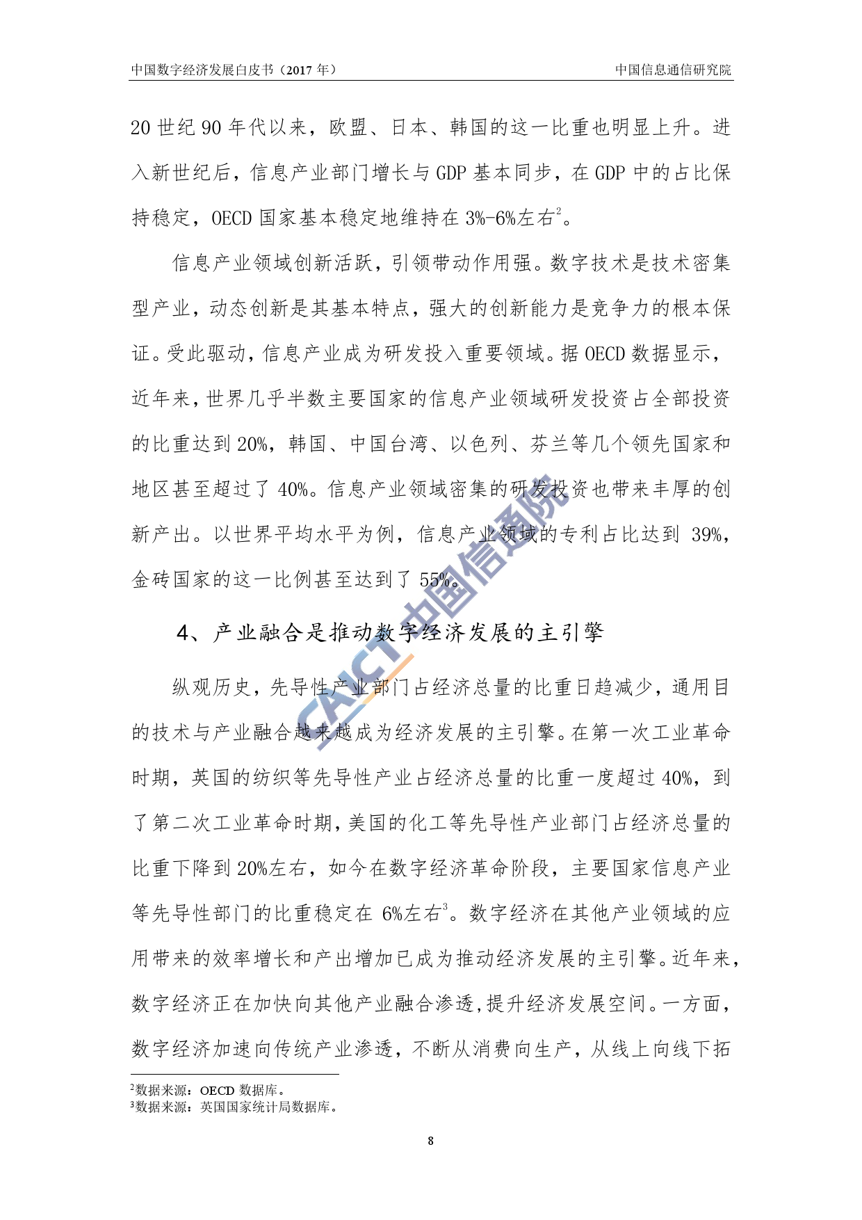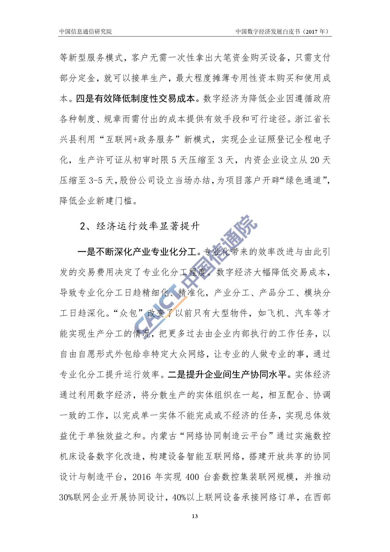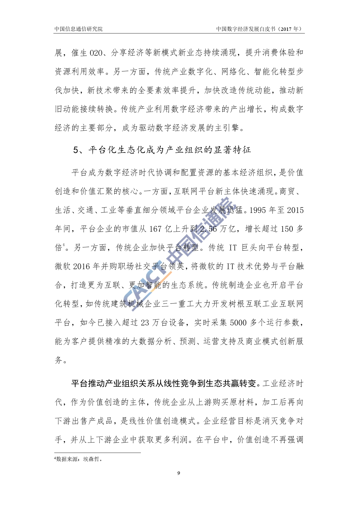 当前,我国数字经济正在进入快速发展新阶段。2016年,中国数字经济规模达到22.6万亿,同比增长18.9%,占GDP比重达到30.3%,数字经济基础设施实现跨越式发展数字经济基础部分增势稳定,结构优化,新业态新模式蓬勃发展,传统产业数字化转型不断加快,融合部分成为增长主要引擎,面向数字经济的社会治理模式在摸索中不断创新。数字经济在各行业中的发展出现较大差异,数字经济占本行业增加值比重呈现出三产高于二产、二产高于一产的典型特征。