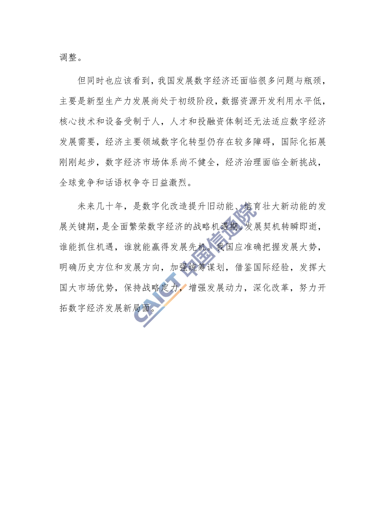 未来几十年,是数字化改造提升旧动能、培育壮大新动能的发展关键期,是全面繁荣数字经济的战略机遇期。发展契机转瞬即逝,谁能抓住机遇,谁就能赢得发展先机。我国应准确把握发展大势,明确历史方位和发展方向,加强统筹谋划,借鉴国际经验,发挥大国大市场优势,保持战略定力,增强发展动力,深化改革,努力开拓数字经济发展新局面。