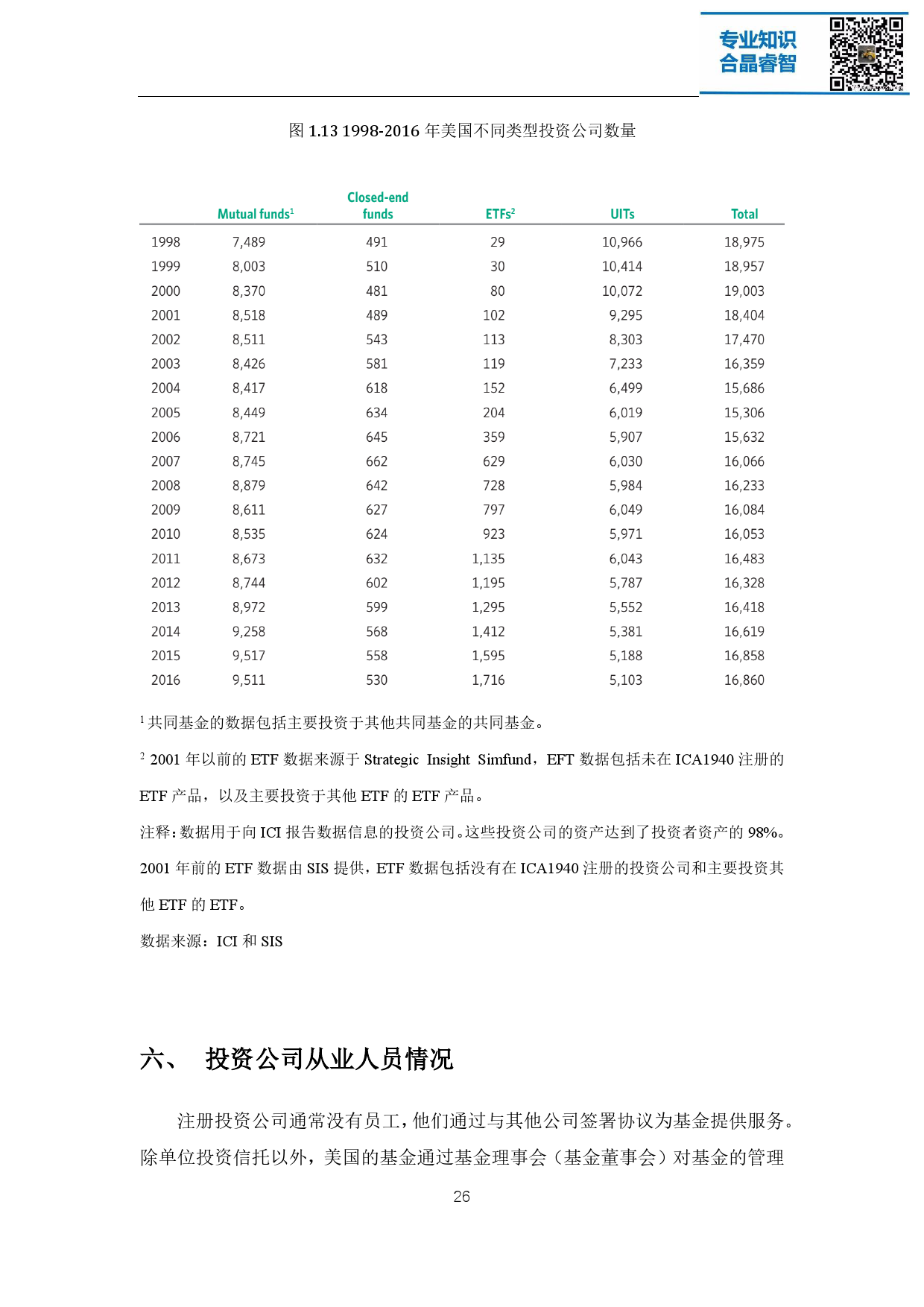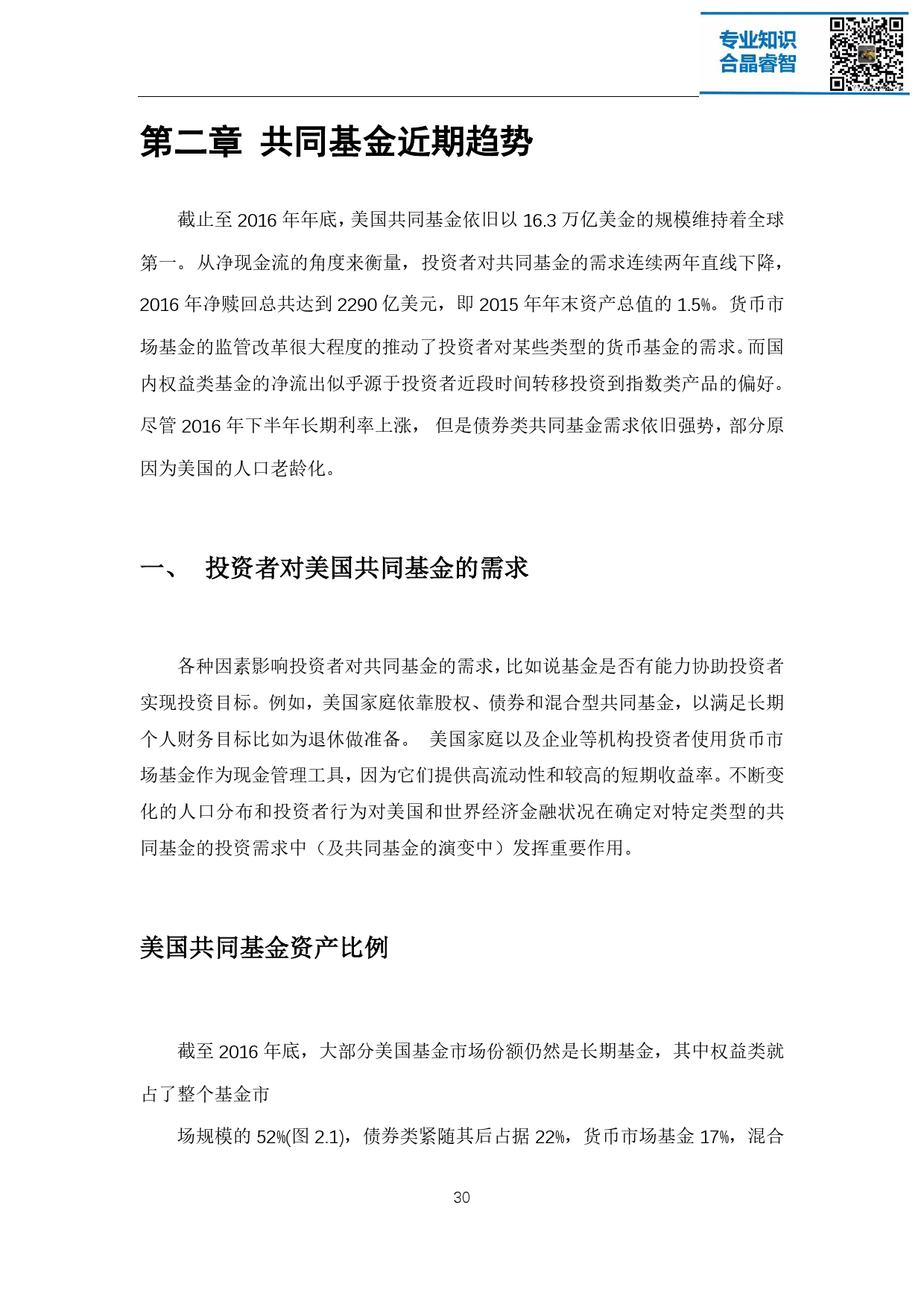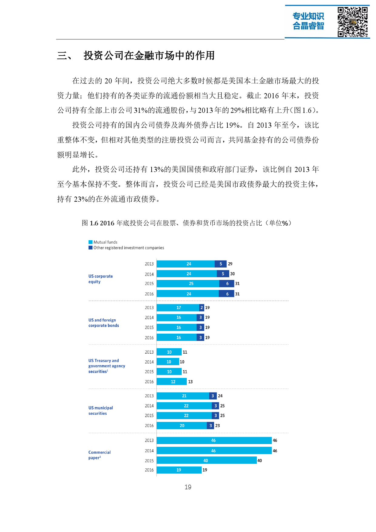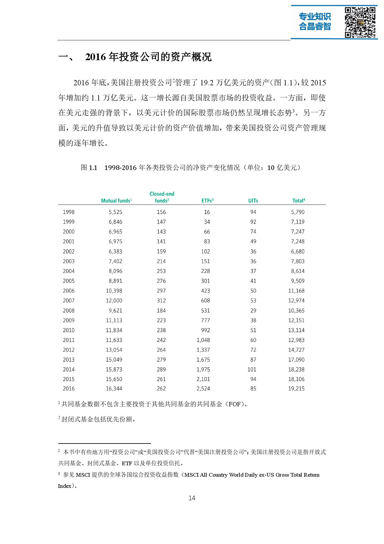 注册投资公司是美国资产管理行业的主体,这些机构不仅在美国经济和金融 市场发挥着重要的作用,在全球金融市场的影响力也与日俱增。截至 2016 年底, 美国注册投资公司管理的基金资产总额达 19 万亿美元,其背后代表着超过 9500 万名投资者的利益。整个资产管理行业在过去的 25 年中经历了稳健的增长,资 产增值、家庭财富增长带来的理财需求增加、人口老龄化以及退休金体系的演变 都是促使其蓬勃向上的重要原因。