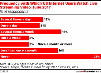 2017年6月,Magid的新研究发现,很多人经常观看直播视频流。
