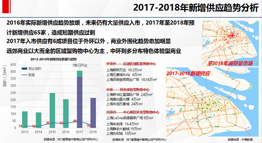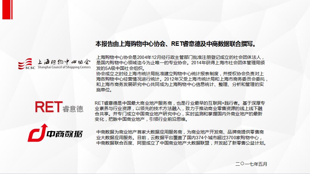 据上海购物中心联合RET睿意德、中商数据发布的《上海购物中心2017年发展报告》显示: