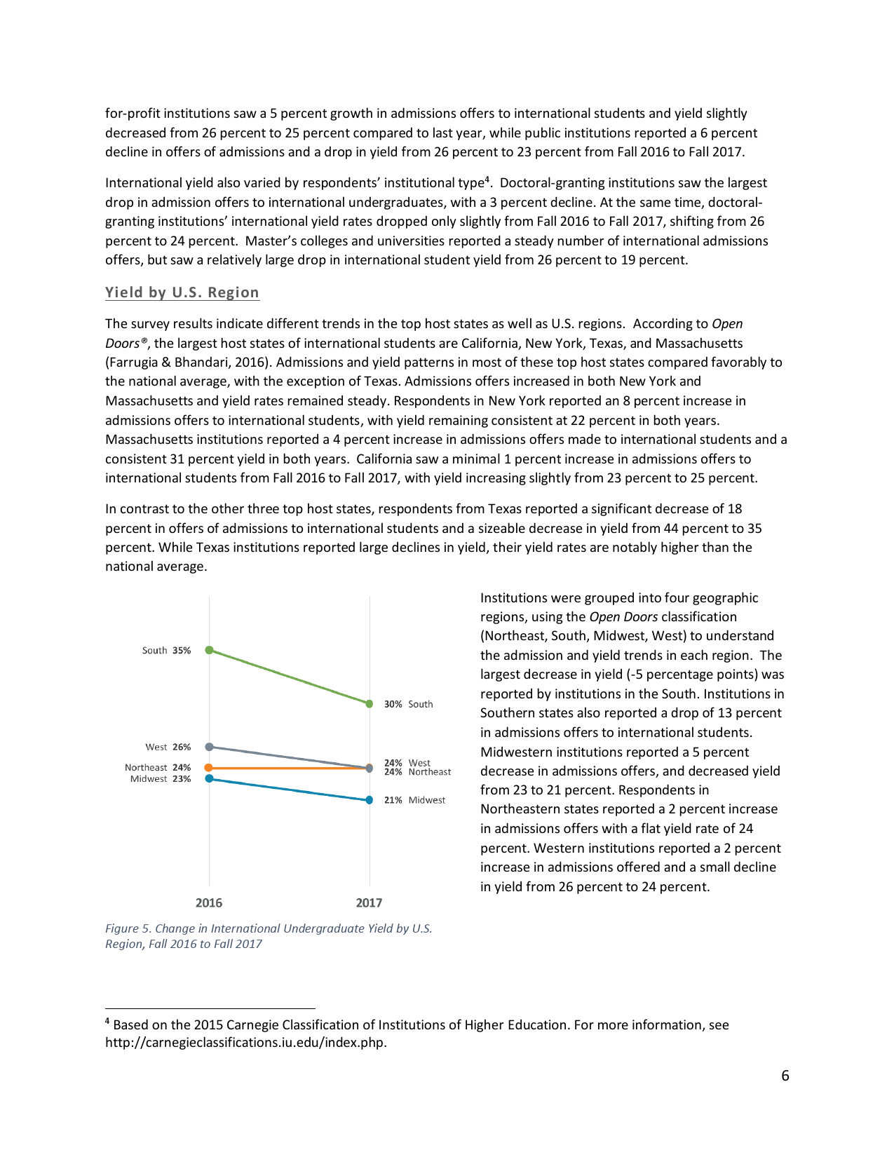 这项调查由国际教育研究院(Institute of International Education,IIE)与其他4所高等教育团体合作完成。所谓国际学生“注册率”,是指外国学生被美国大学录取后的报到比率。