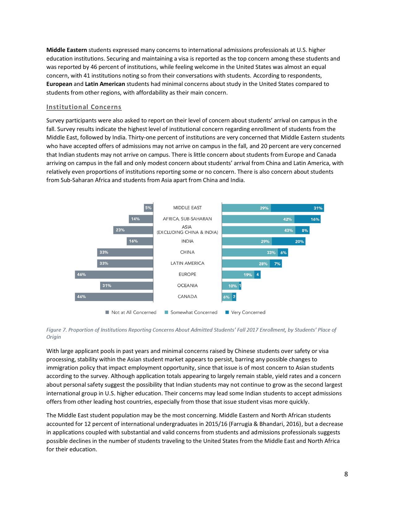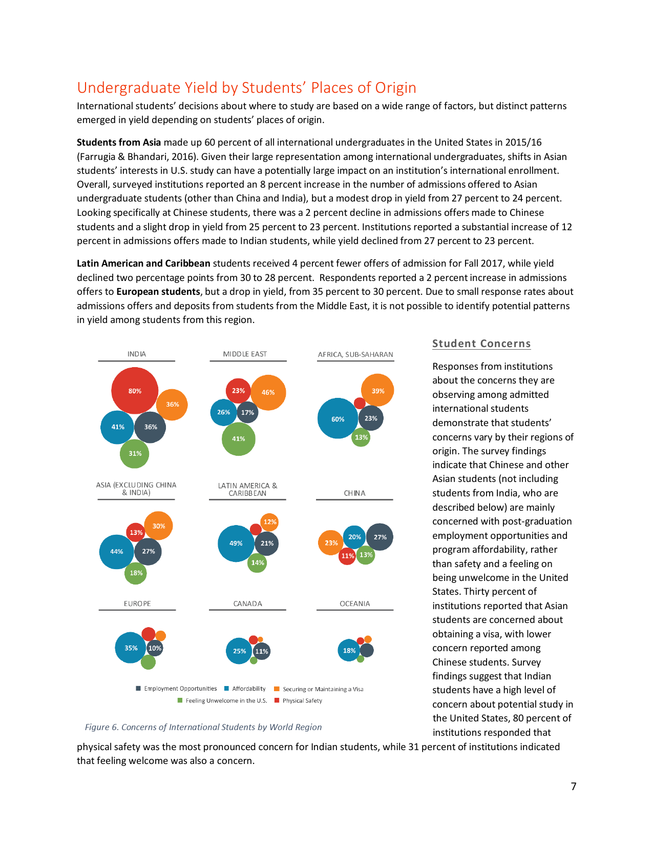 相比之下,中国留学生最关心毕业以后能否找到工作。中国学生和印度学生合计占美国全部国际学生的近半数。一项调查发现,美国大学对中国留学生录取率提高了8%,但是注册率却从25%下降到23%。印度学生的录取率提高了12%,但注册率也从27%下降到23%。