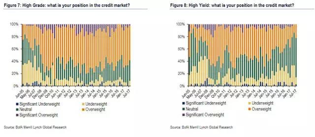 美银美林的分析师米克尔森(Hans Mikkelsen)在报告中指出,虽然优质投资者在6月份的持仓有所减少(仍然‘显著超重’),但高收益投资者的持仓则从“较轻”转为“小幅超重”。