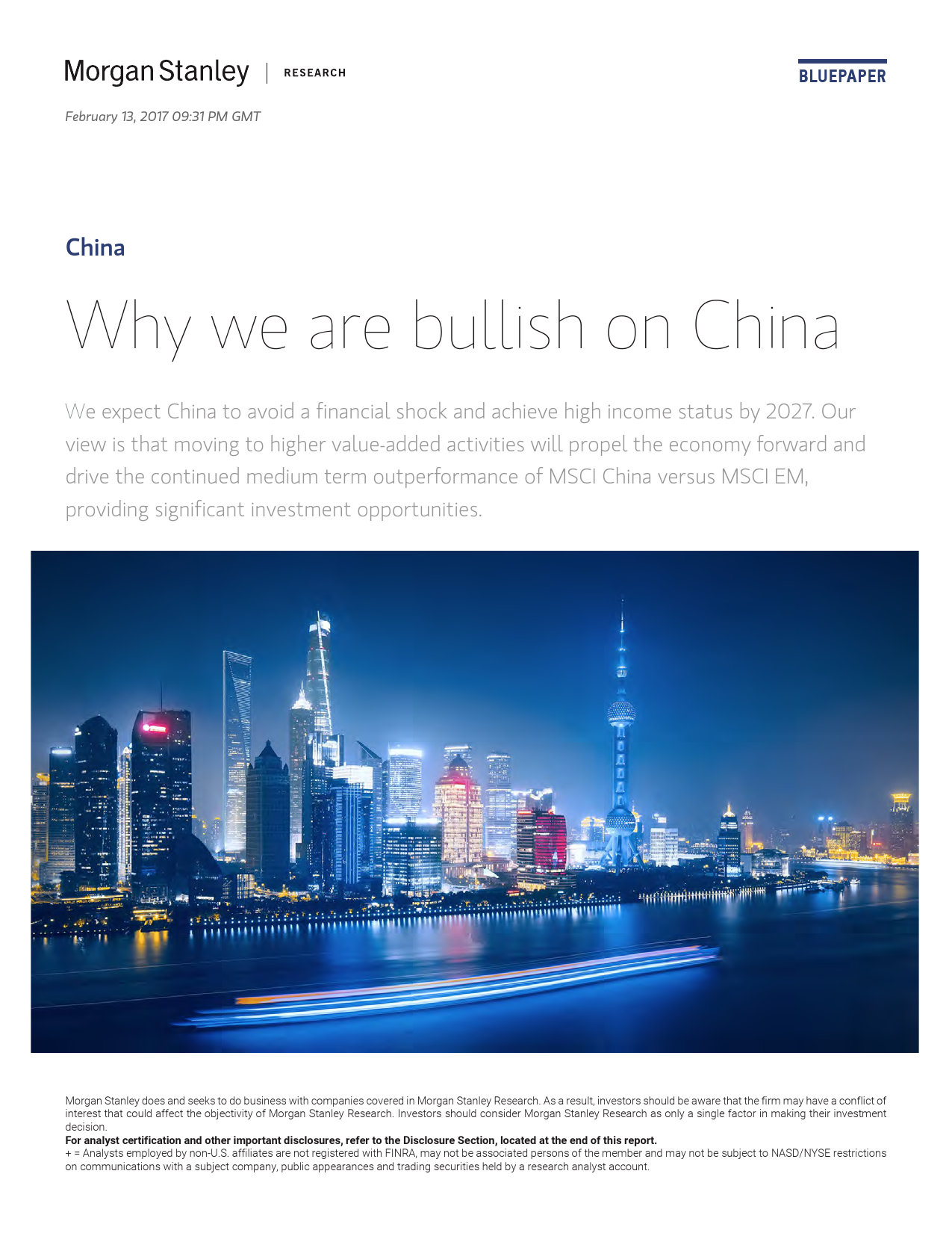摩根士丹利首席经济学家和首席策略分析师最近发表了标题为“我们为何看好中国——投资者反馈和全球影响”的中国经济蓝皮书展望报告。