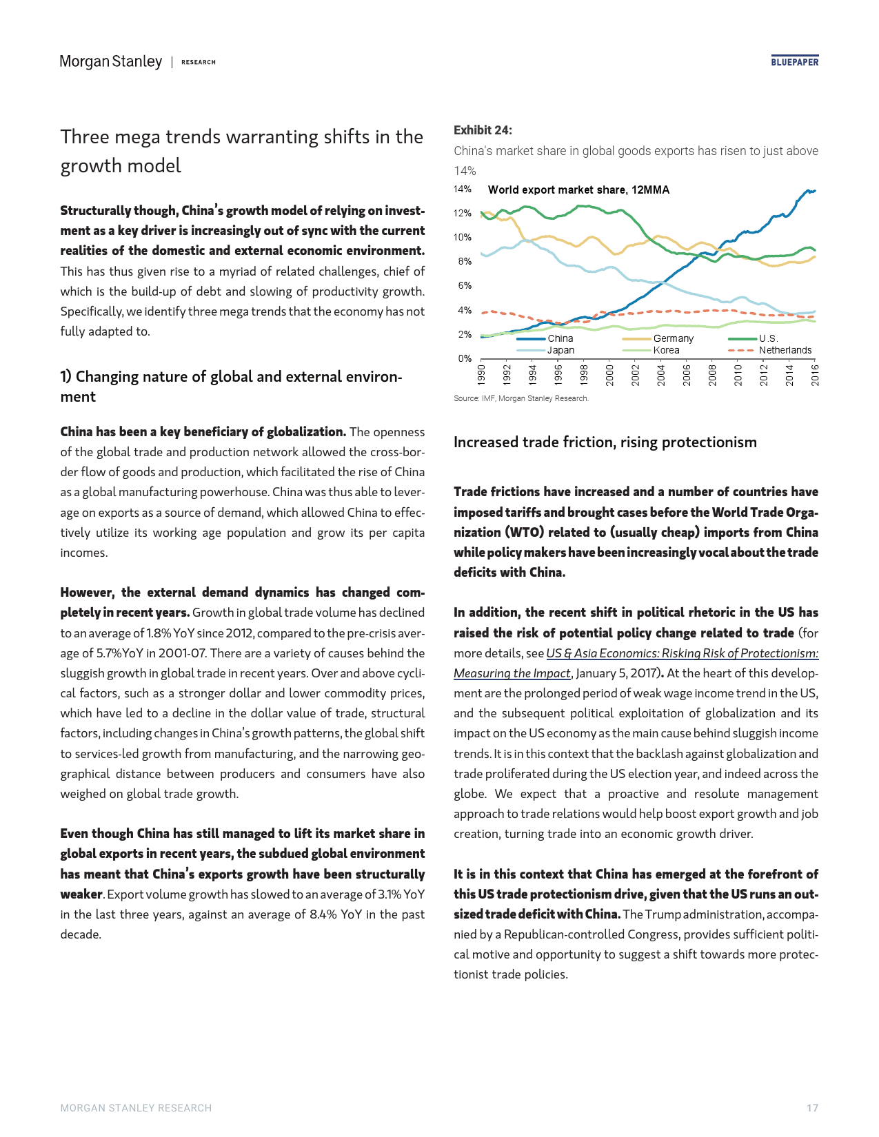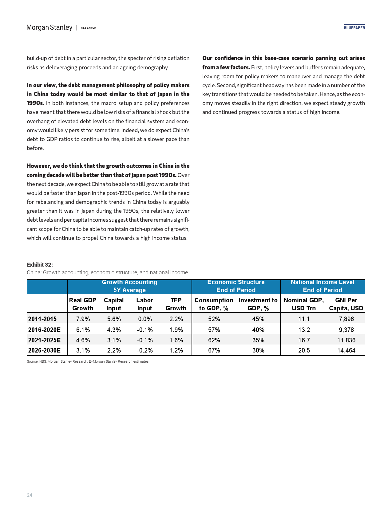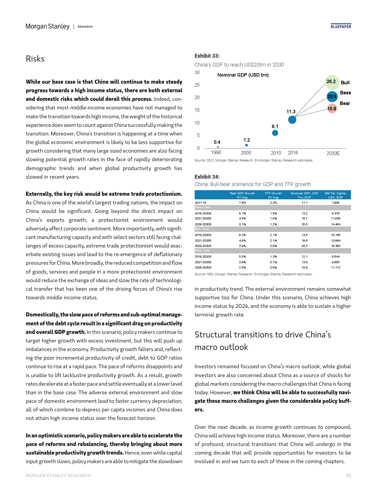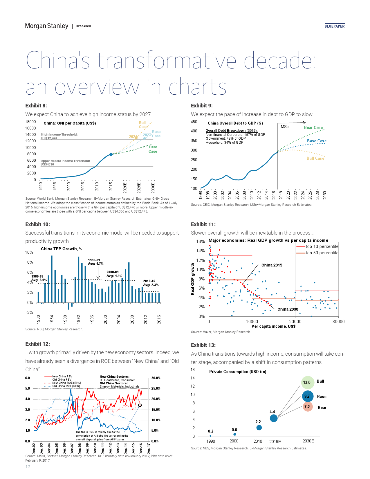 在这份报告中,摩根士丹利经济学家Chetan Ahya和Jonathan F Garner撇开中国短期的经济波动(12-18个月),而是注重分析长期经济走势。这份报告针对中国经济结构性转变中的焦点问题做出了解读,并分析其中的机遇和挑战。