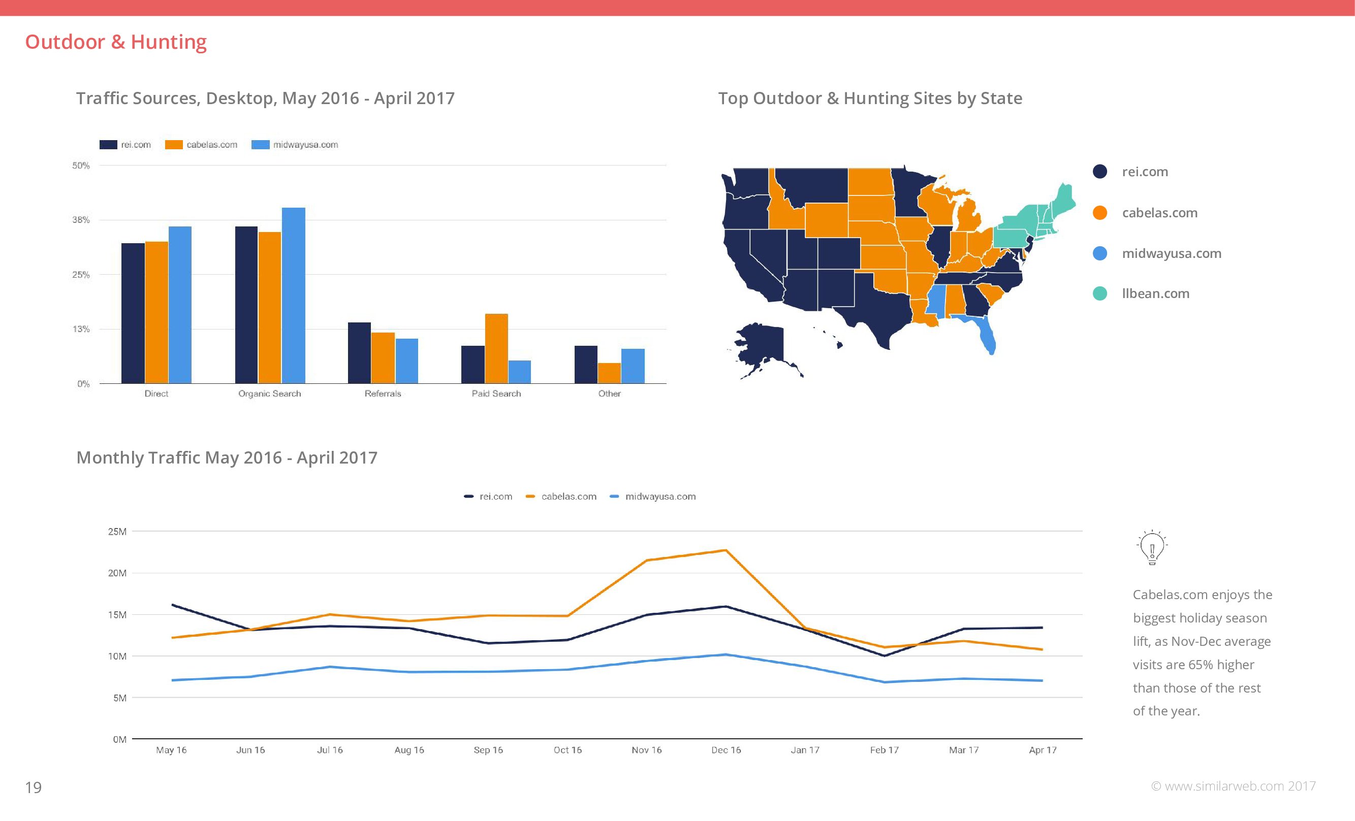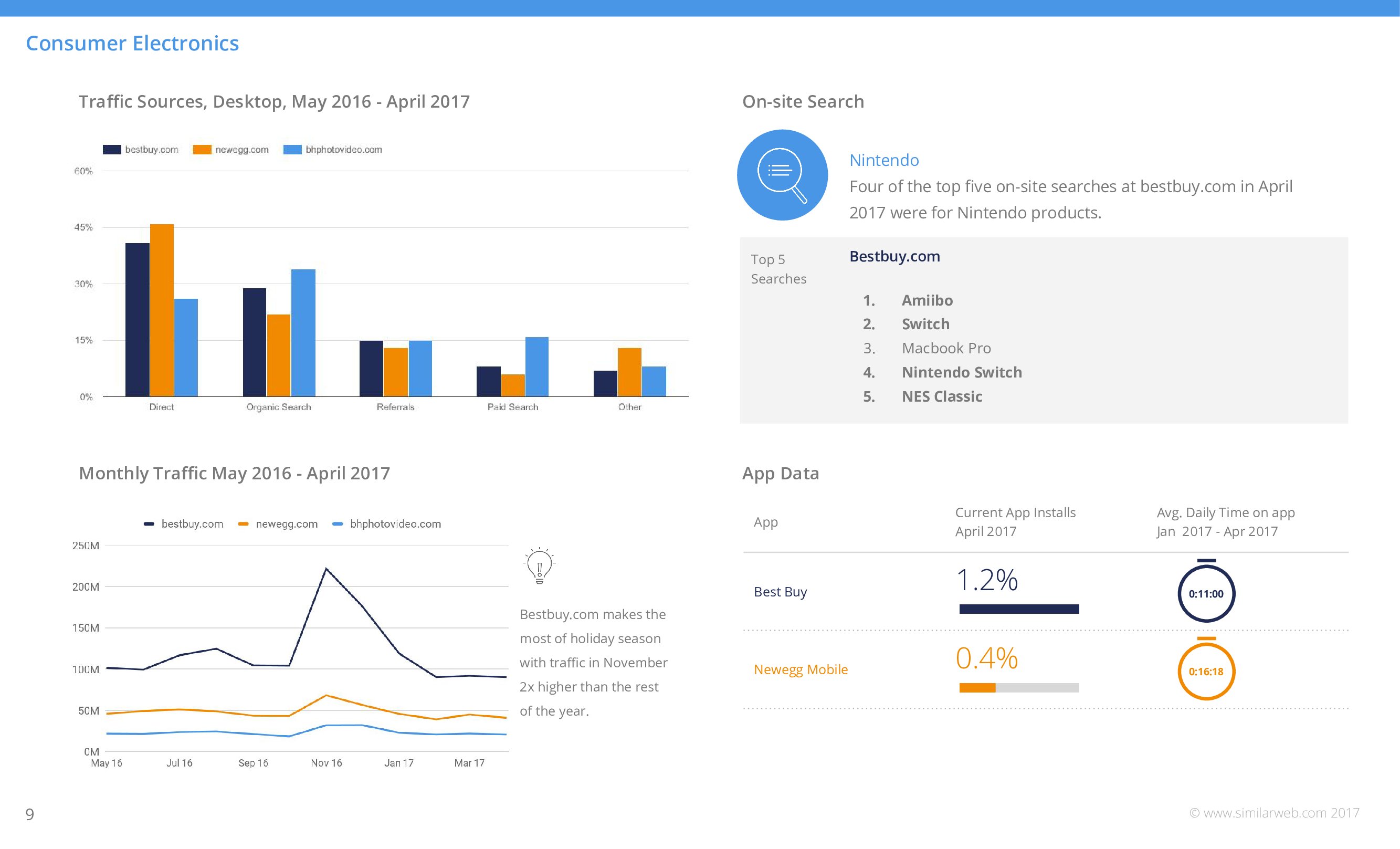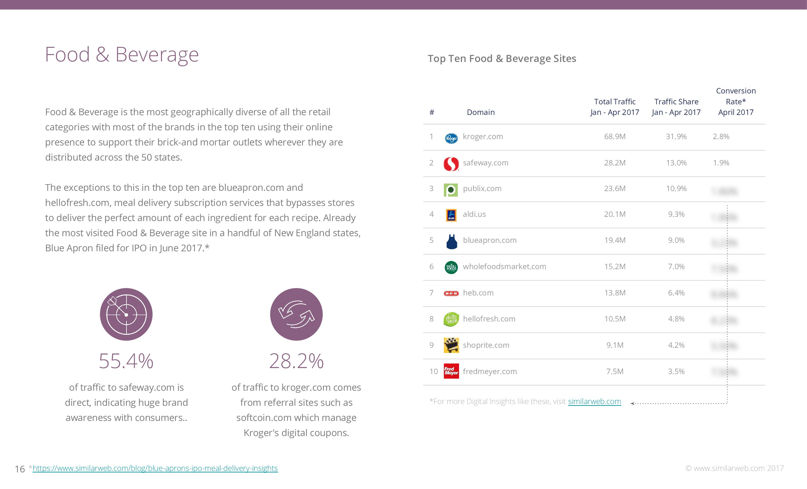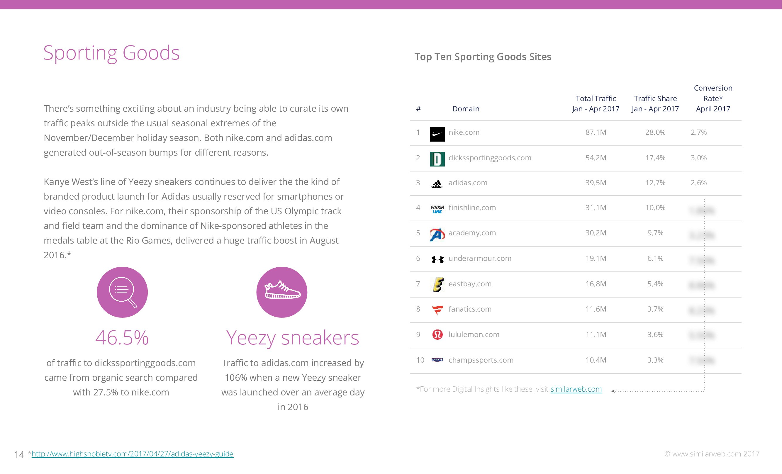 2017年,零售业正在发生巨大转变,一些大型零售商濒临破产,还有一些商店正在努力解决销售额大幅下滑的问题。SimilarWeb发布了最新的“零售市场情报”报告,覆盖了百货、家居与园艺、消费电子、服装、美容、体育用品、食品、饮料和户外八个分类。