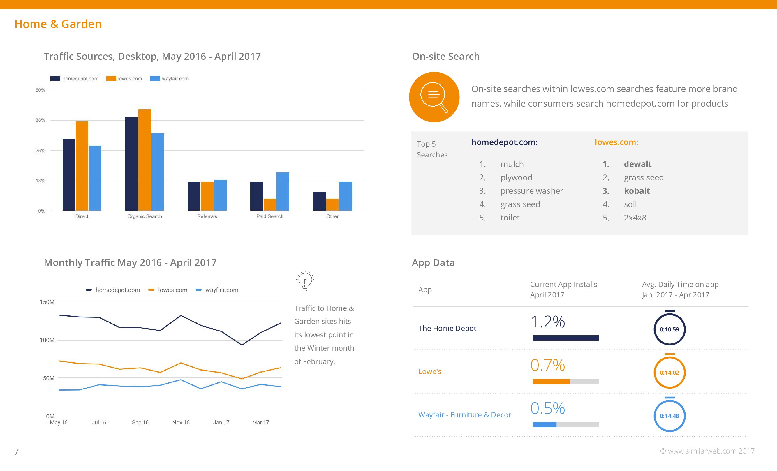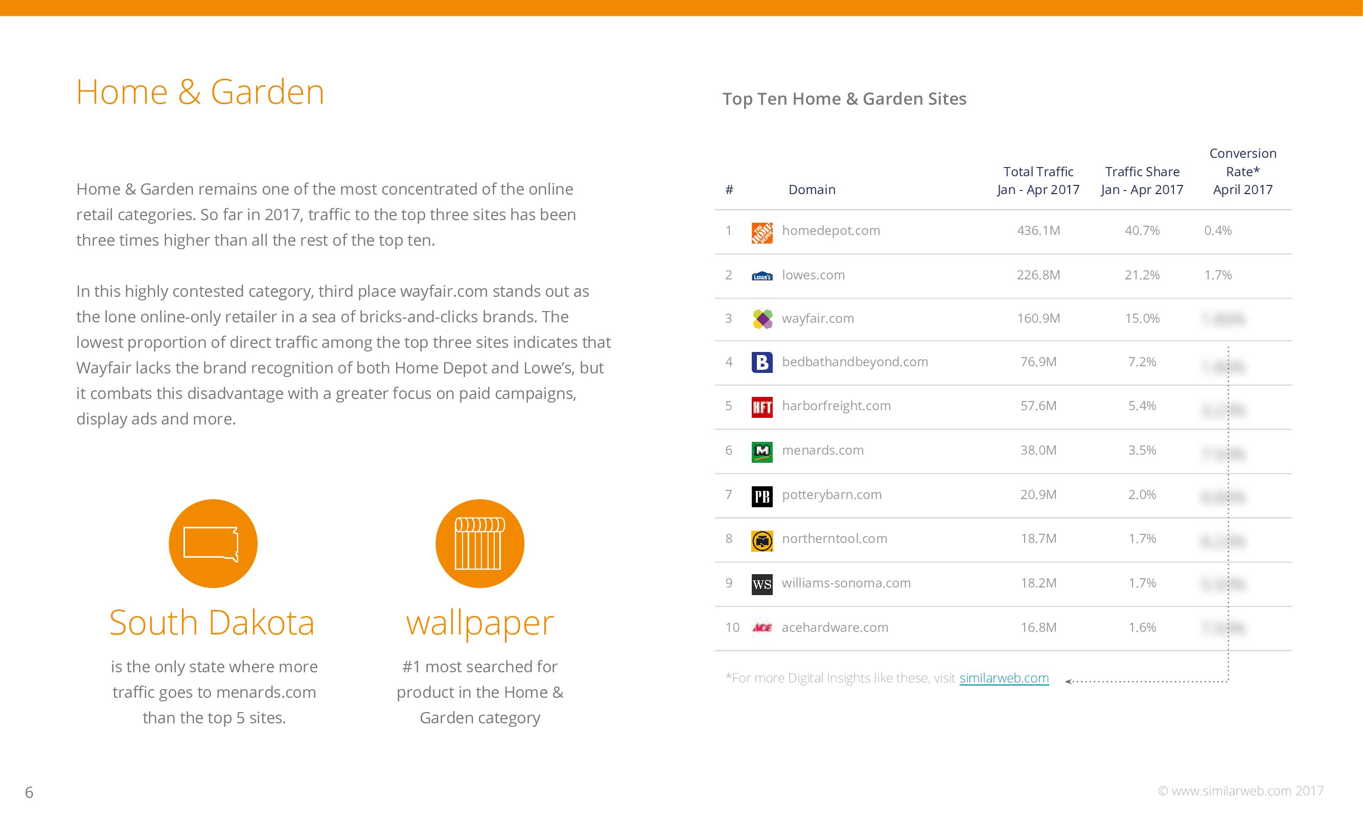 家居与园艺是一个集中于网络的分类,前三名网站的流量比其他高出三倍。
