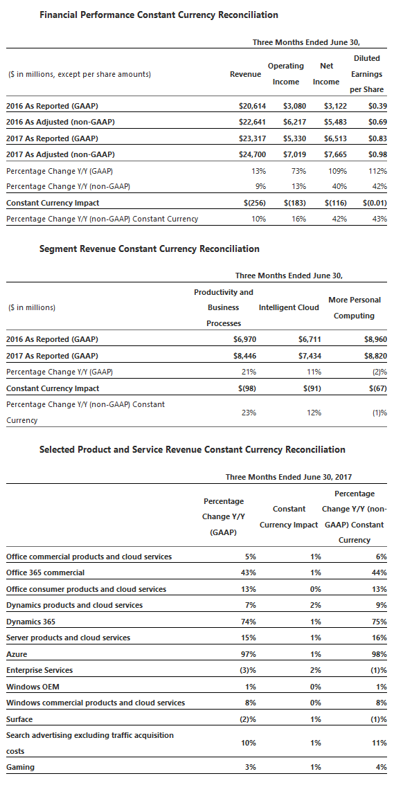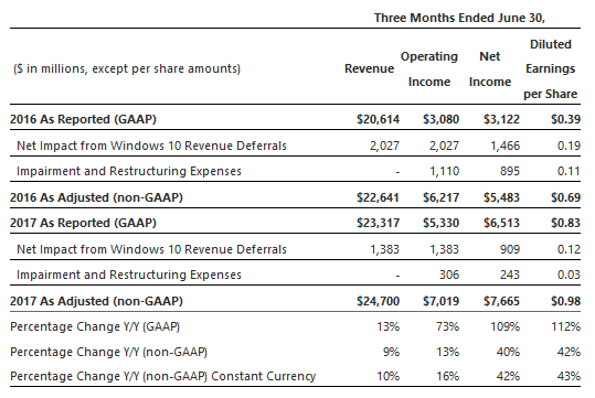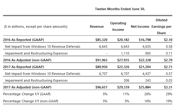 微软发布了2017年财年数据,公布第二季度收入为247亿美元(非GAAP),调整后的利润为77亿美元。Windows 10和Office 365继续表现良好。