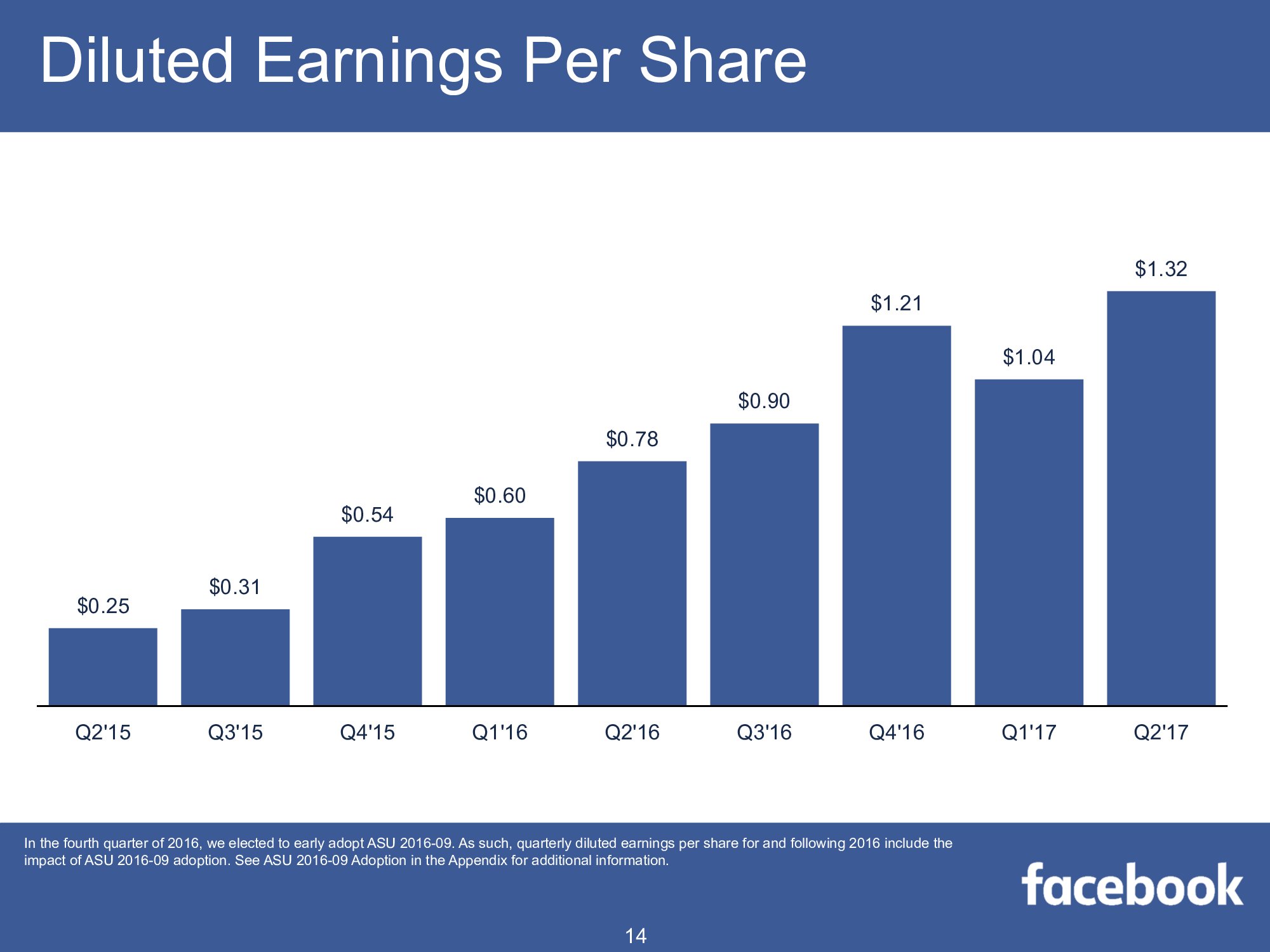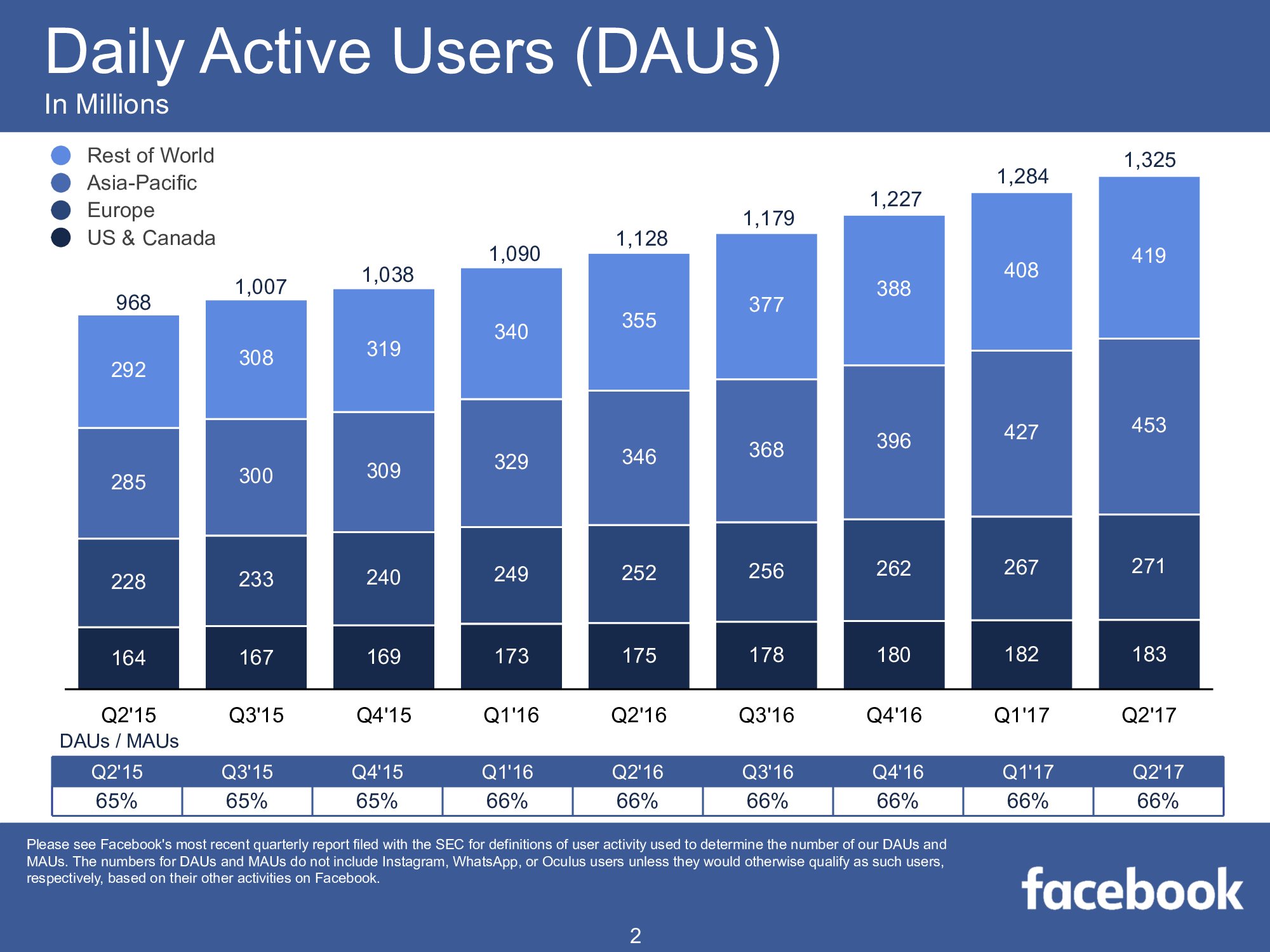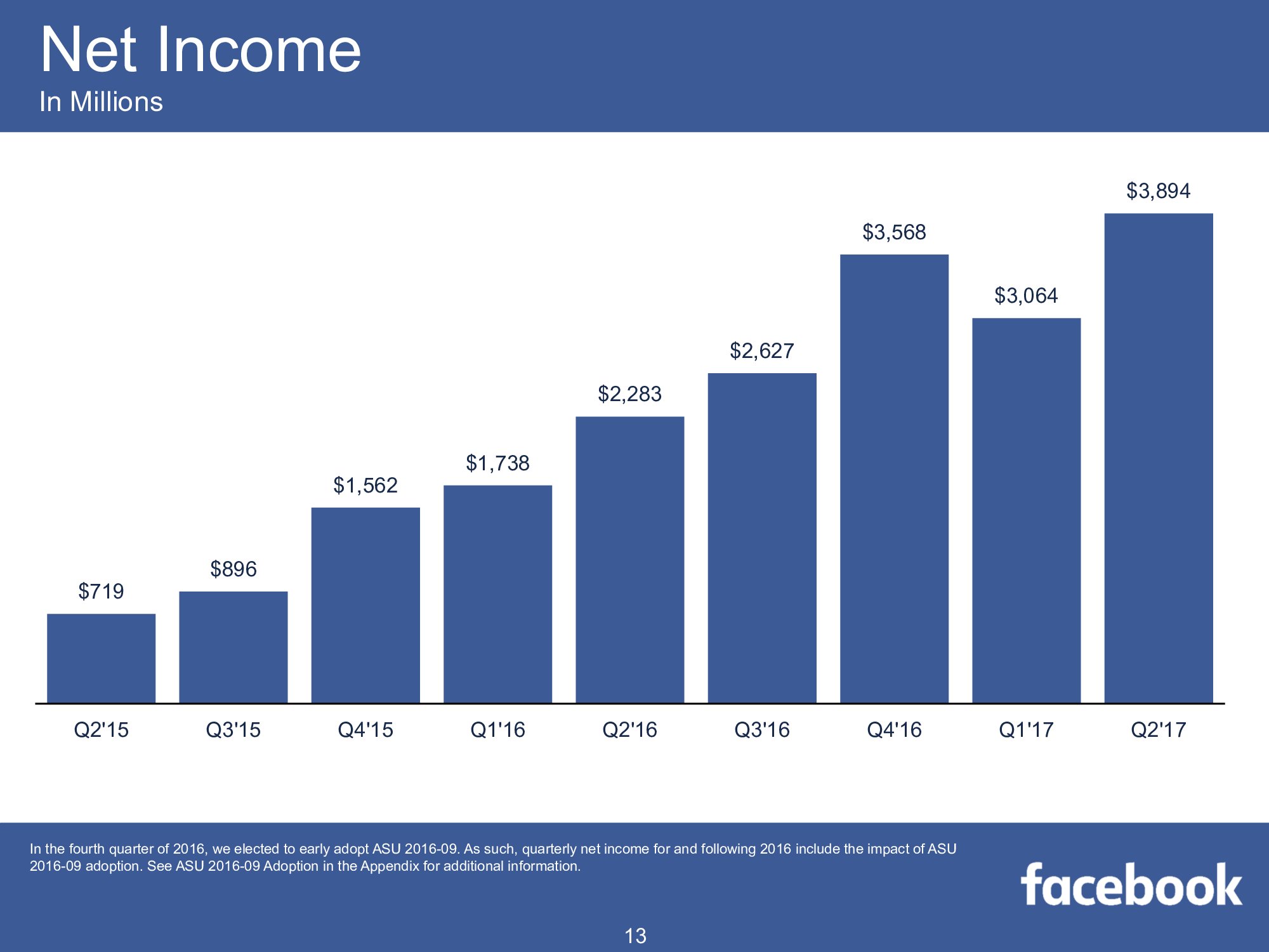 Facebook刚刚发布了2017年第二季度业务报告。第二季度,Facebook收入增长45%,达到93.2亿美元,利润增长71%,达到38.9亿美元。