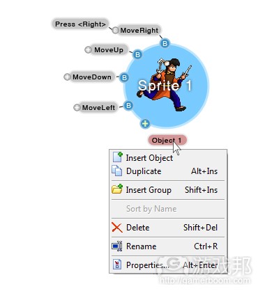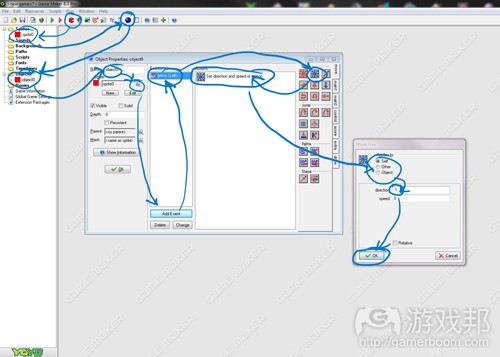 (例如,在Game Maker中创建一个对象,添加行为(如果有向左的箭头出现,就向左移),你必须遵守这些“简单”的步骤。注意,我跳过了创建分镜,即其他3个窗口/步骤。)