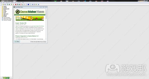Game Maker的启动界面,没有已载入的项目(from gamasutra)