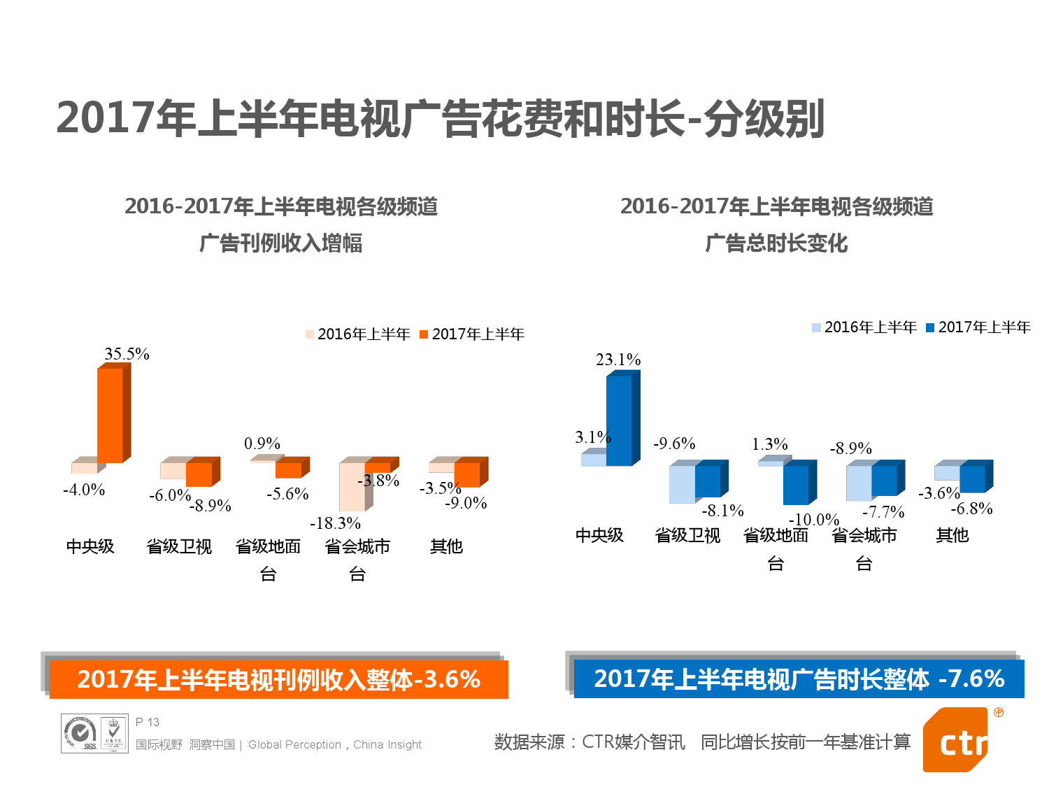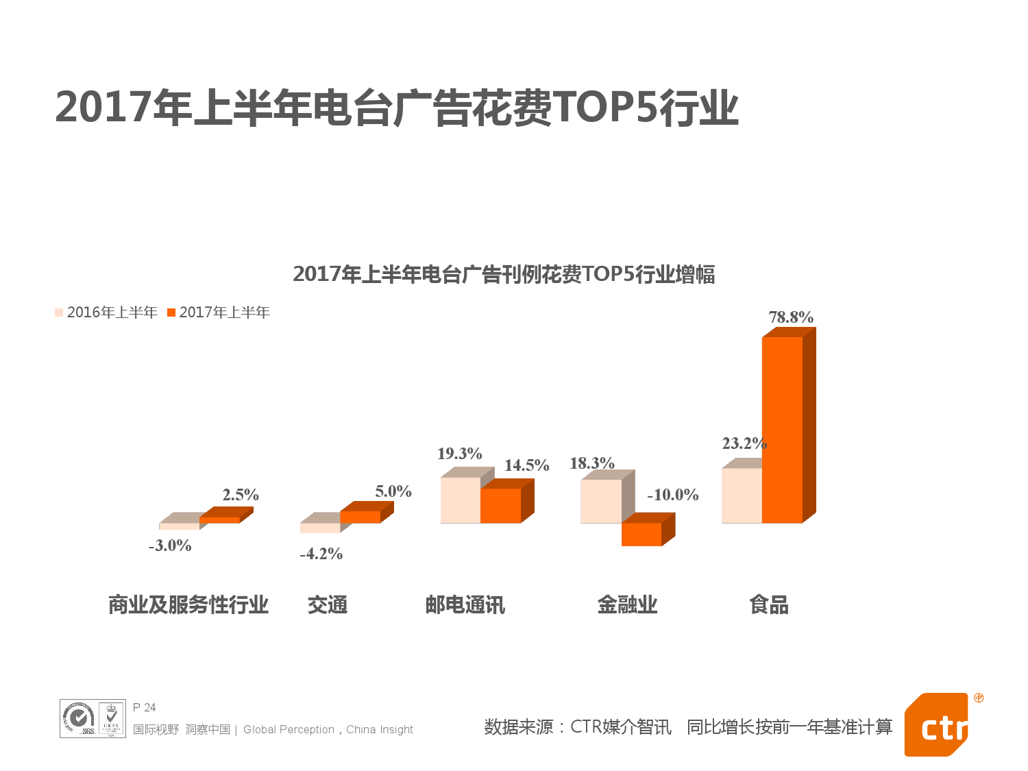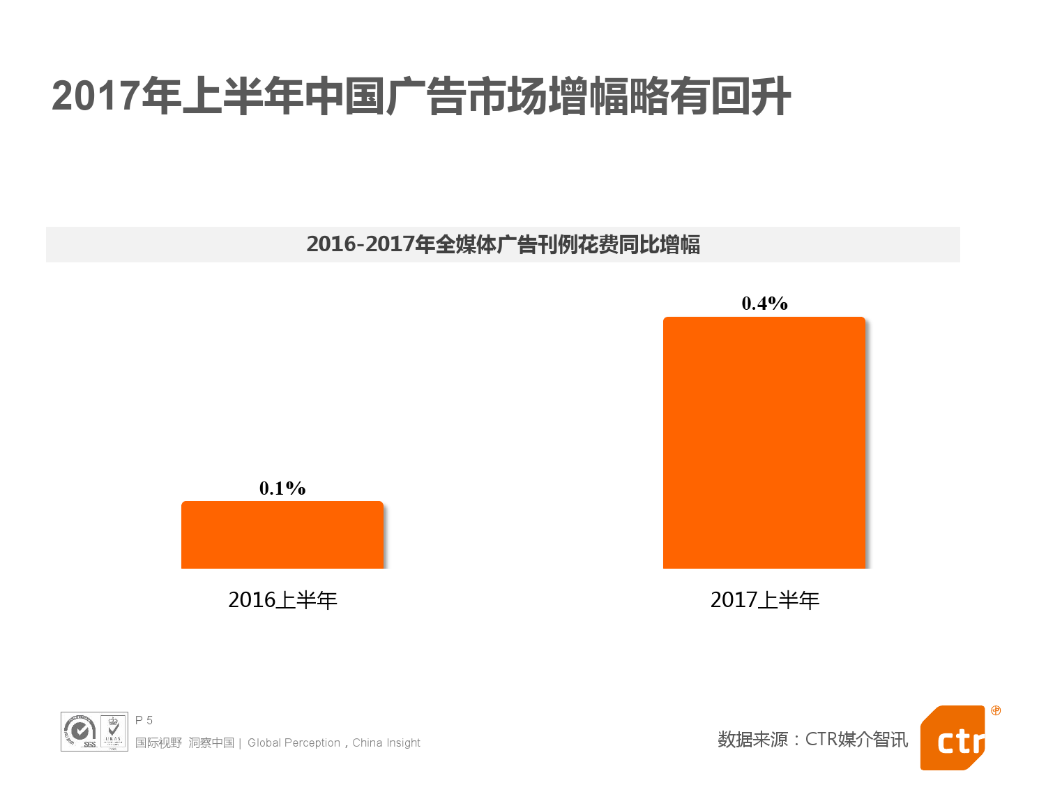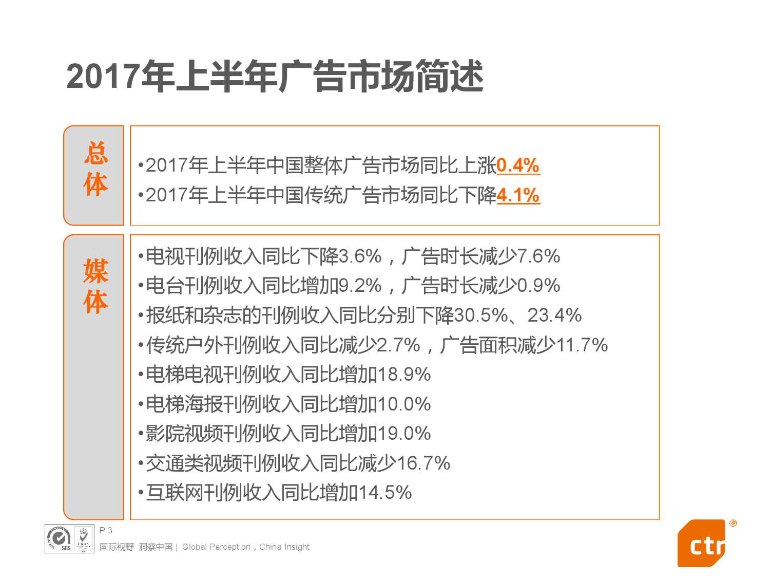 - 2017年上半年中国整体广告市场同比上涨0.4%