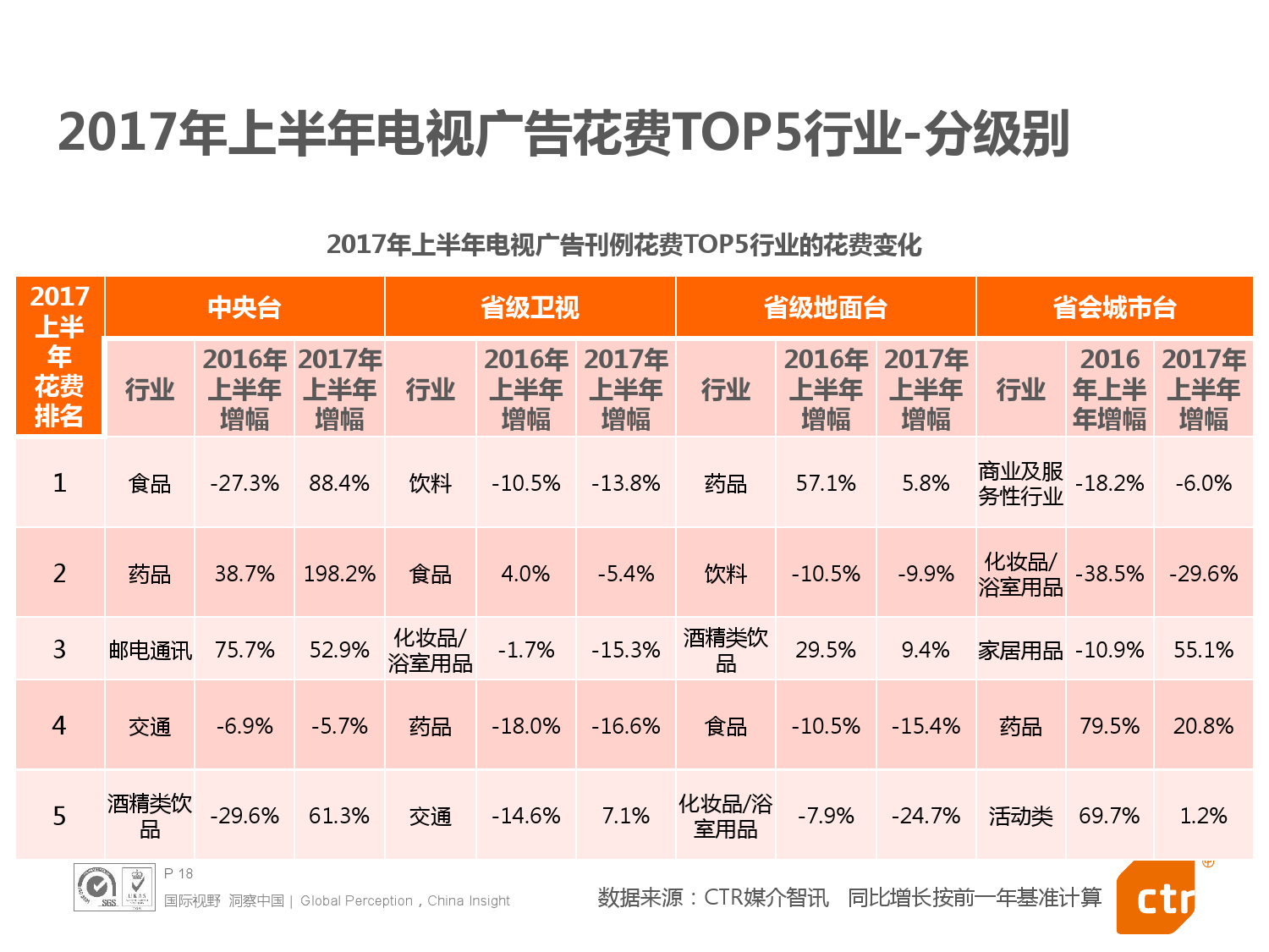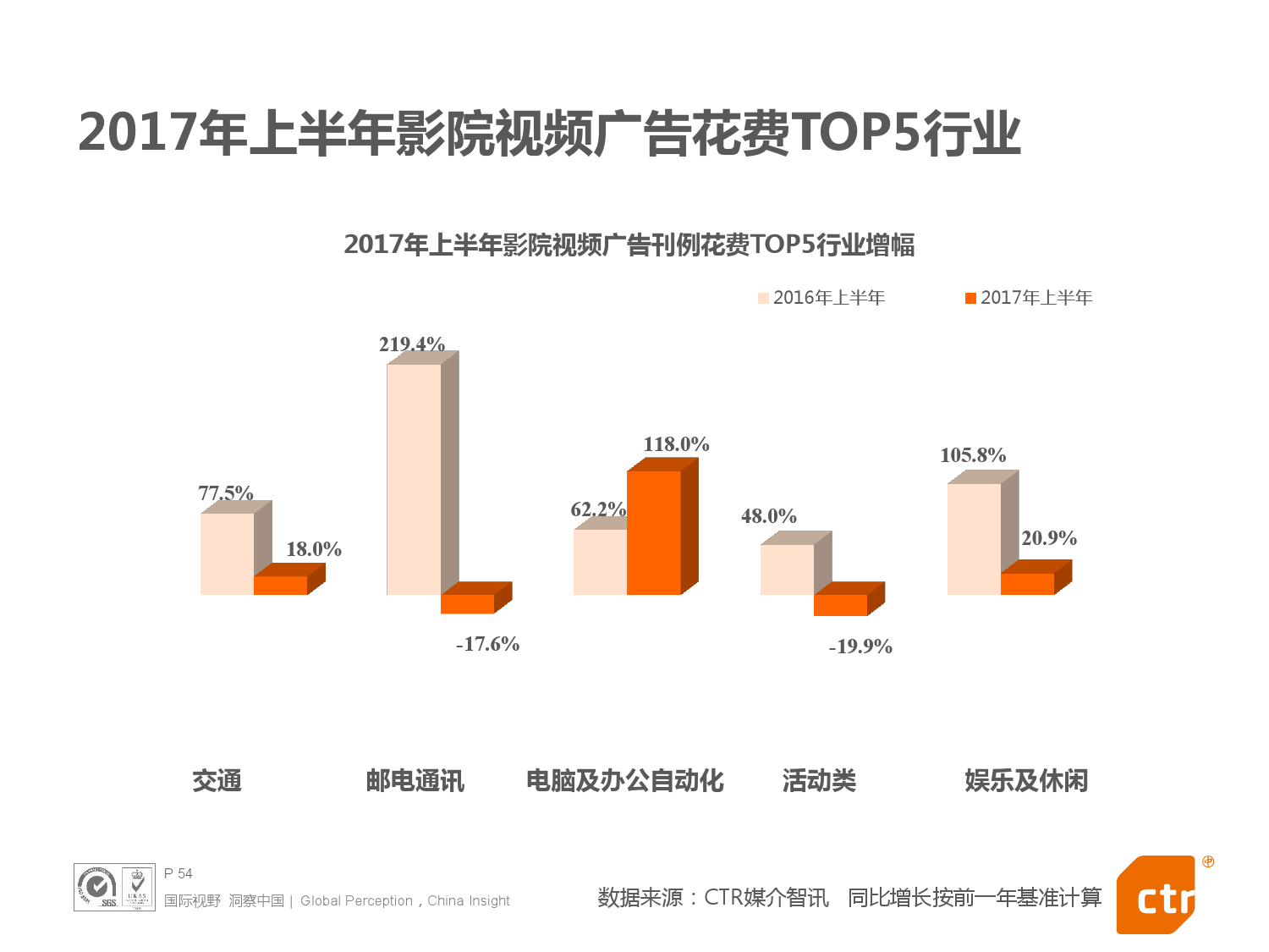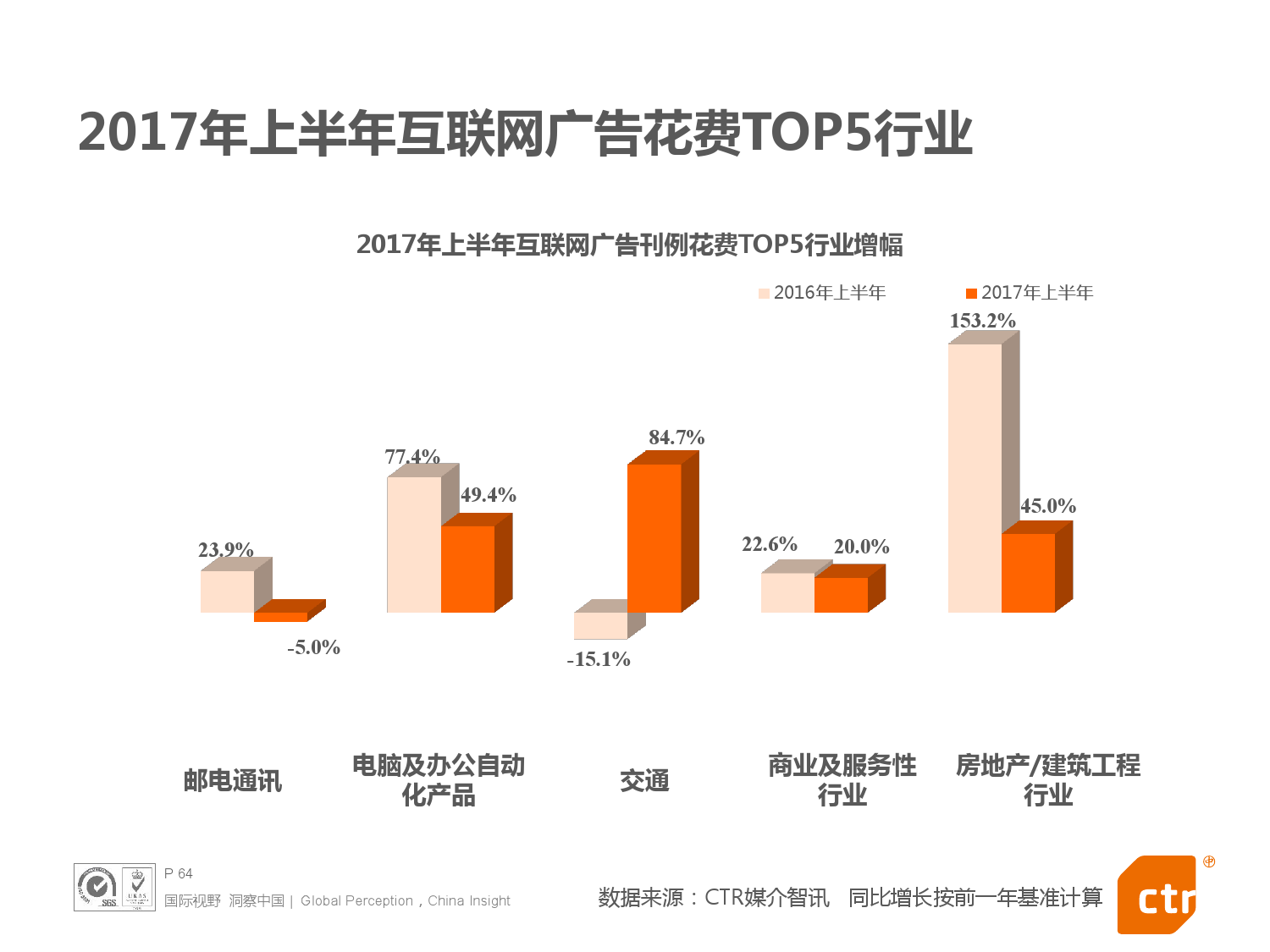- 2017年上半年中国整体广告市场同比上涨0.4%