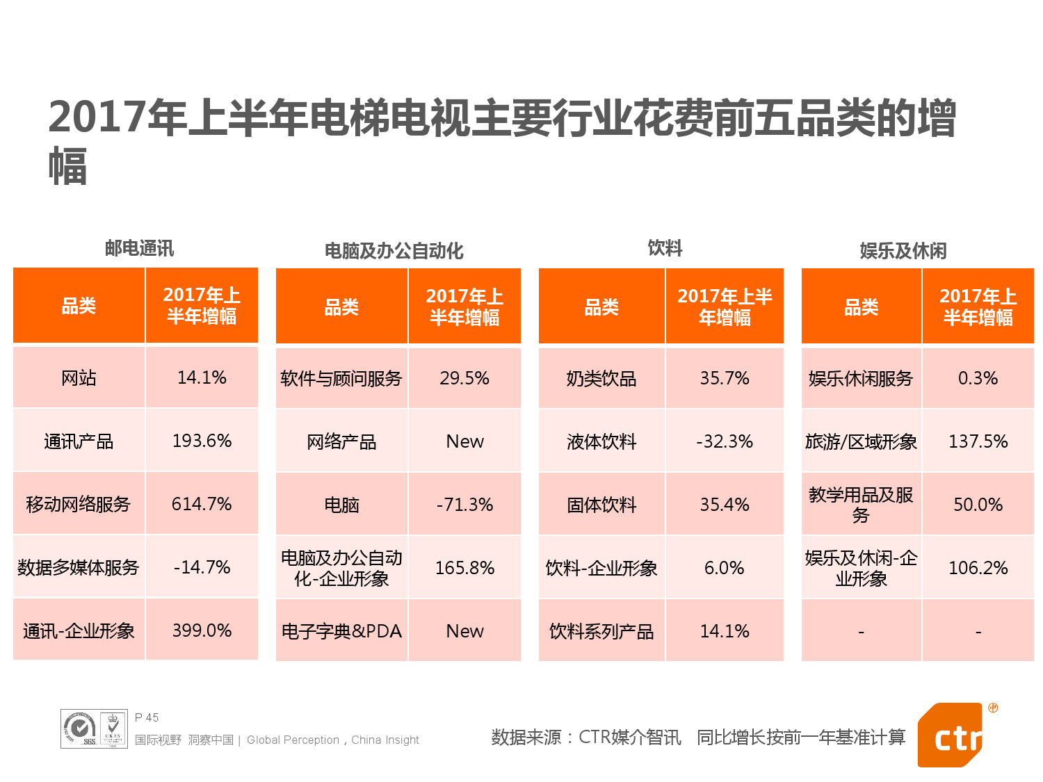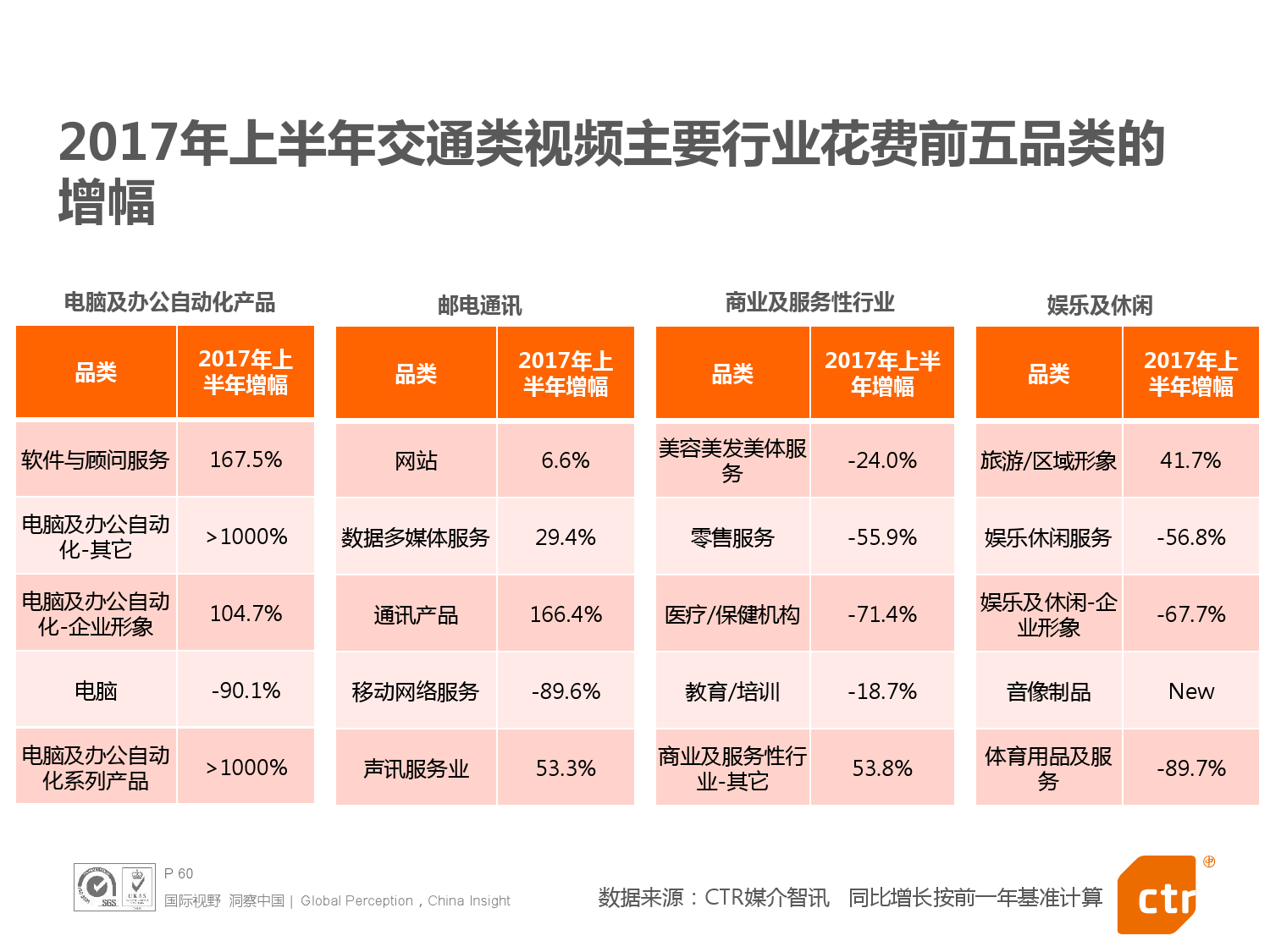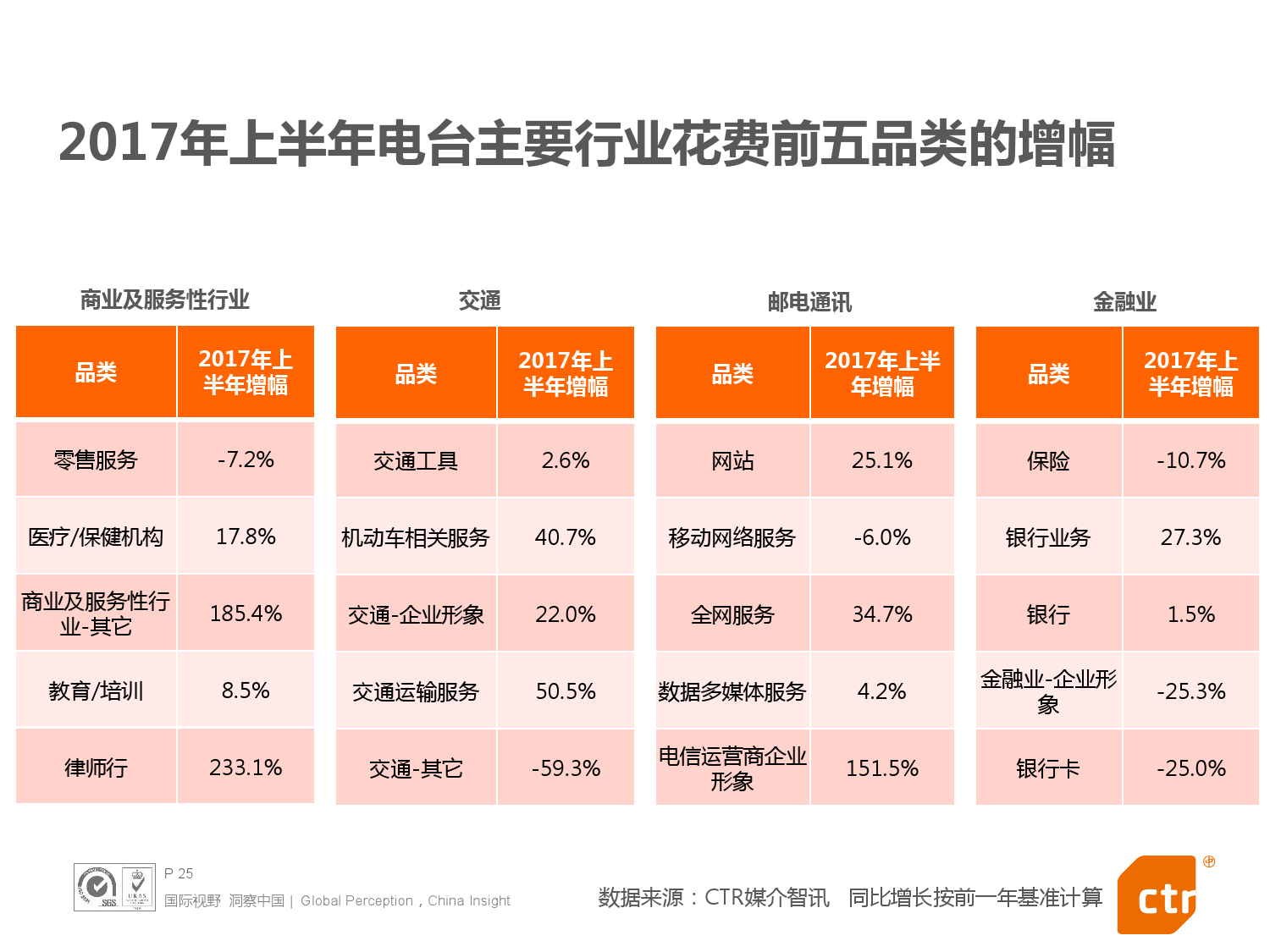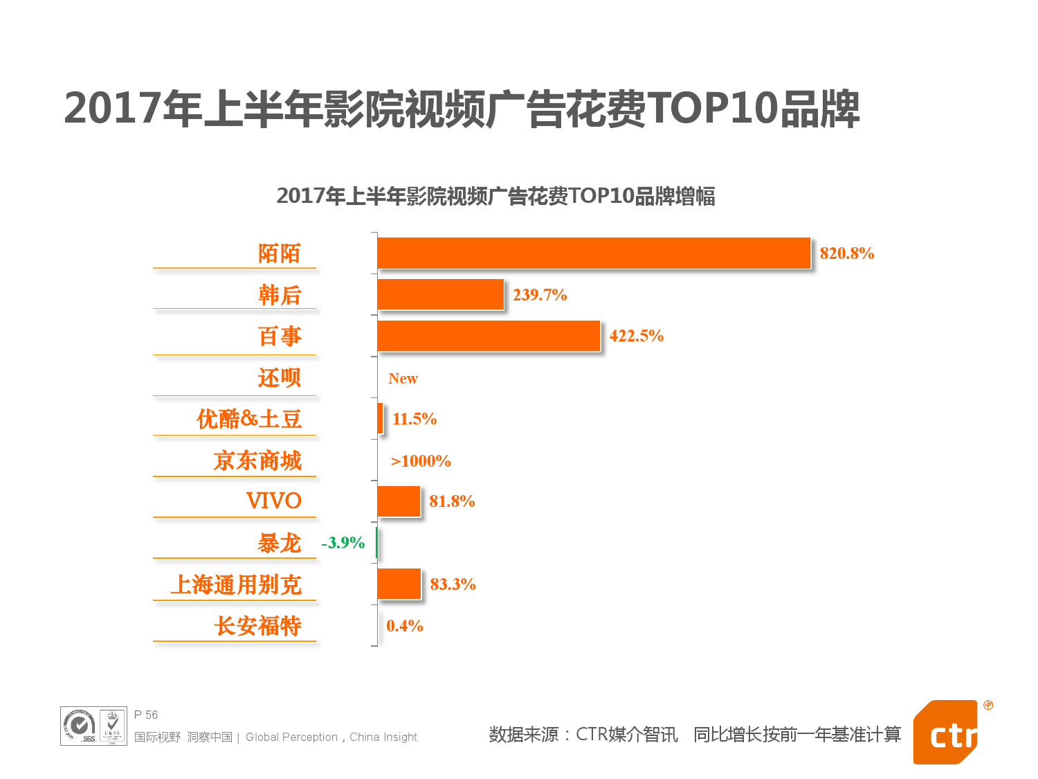 - 2017年上半年中国整体广告市场同比上涨0.4%