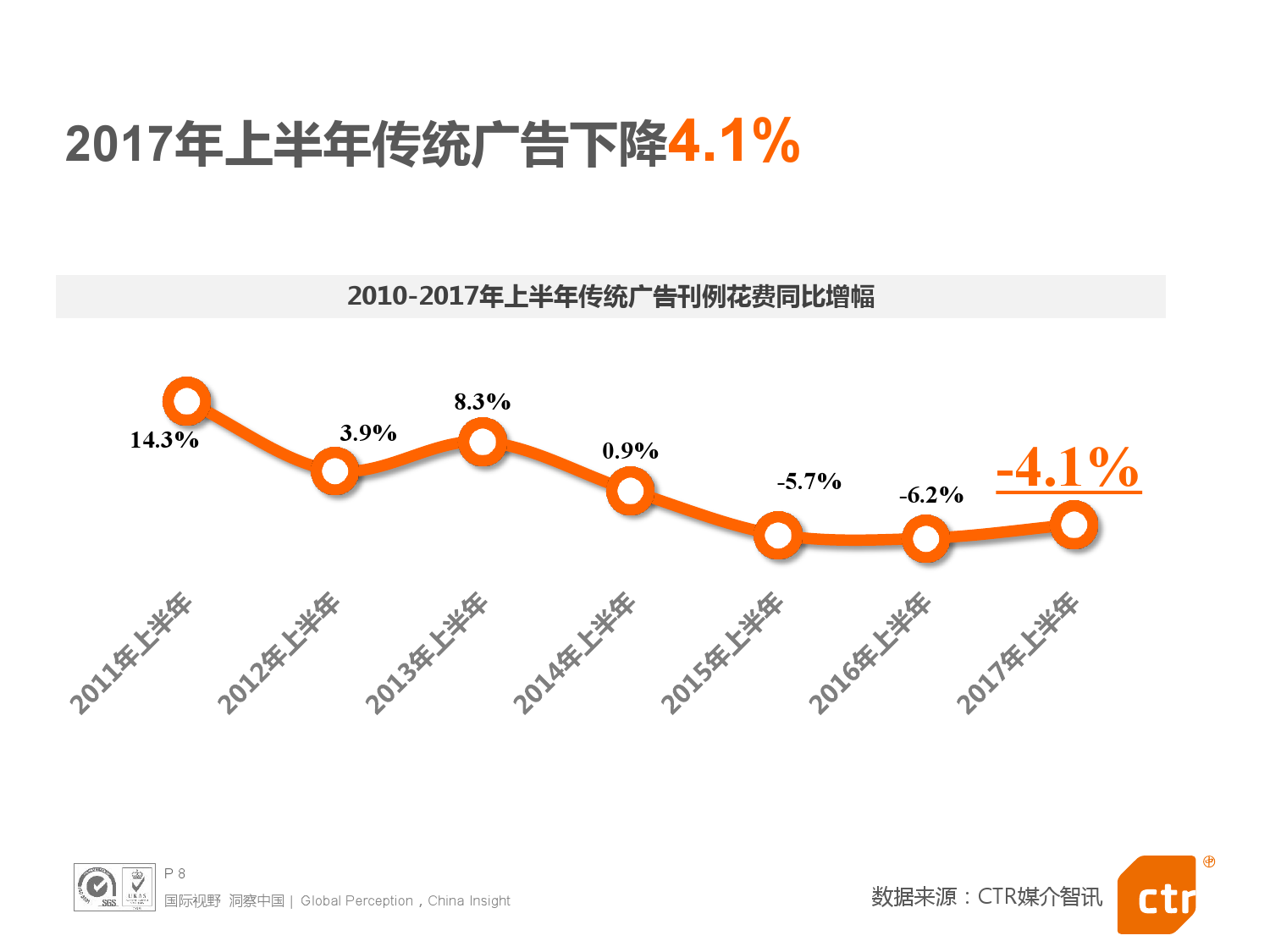 - 2017年上半年中国传统广告市场同比下降4.1%