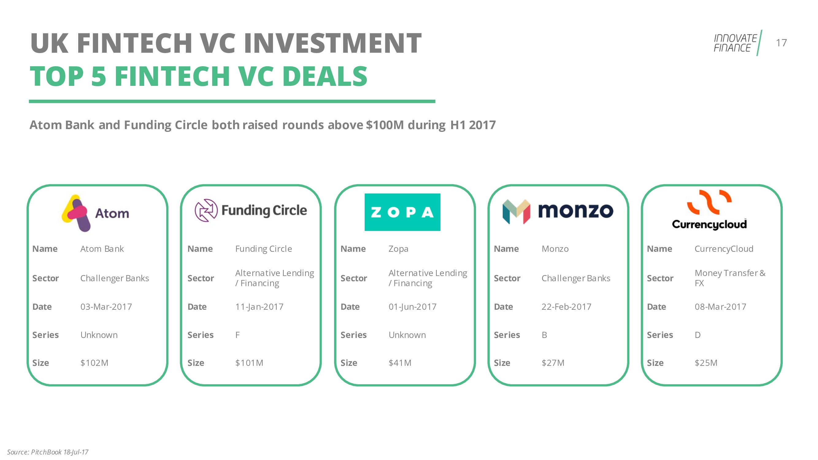 Innovate Finance发布了“2017年上半年金融科技风险投资”报告,发布了上半年金融科技领域风险投资数据。