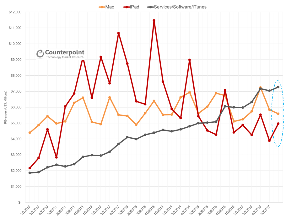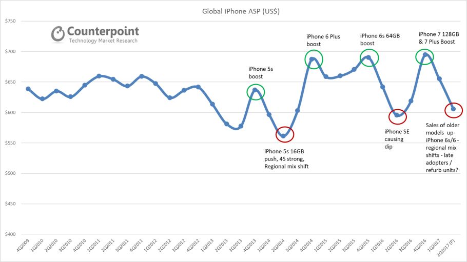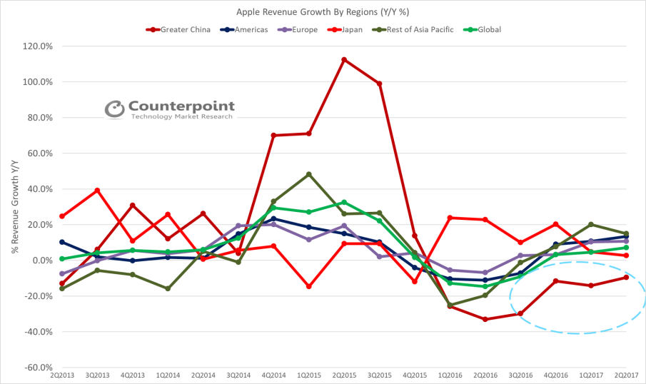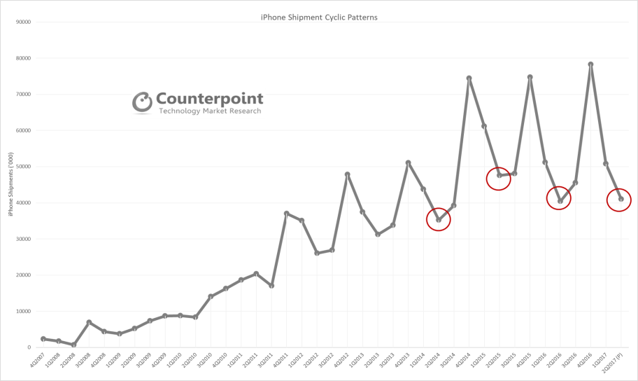 iPhone销售存在季度性循环,在没有发布新机的季度里给竞争对手提供了机遇。
