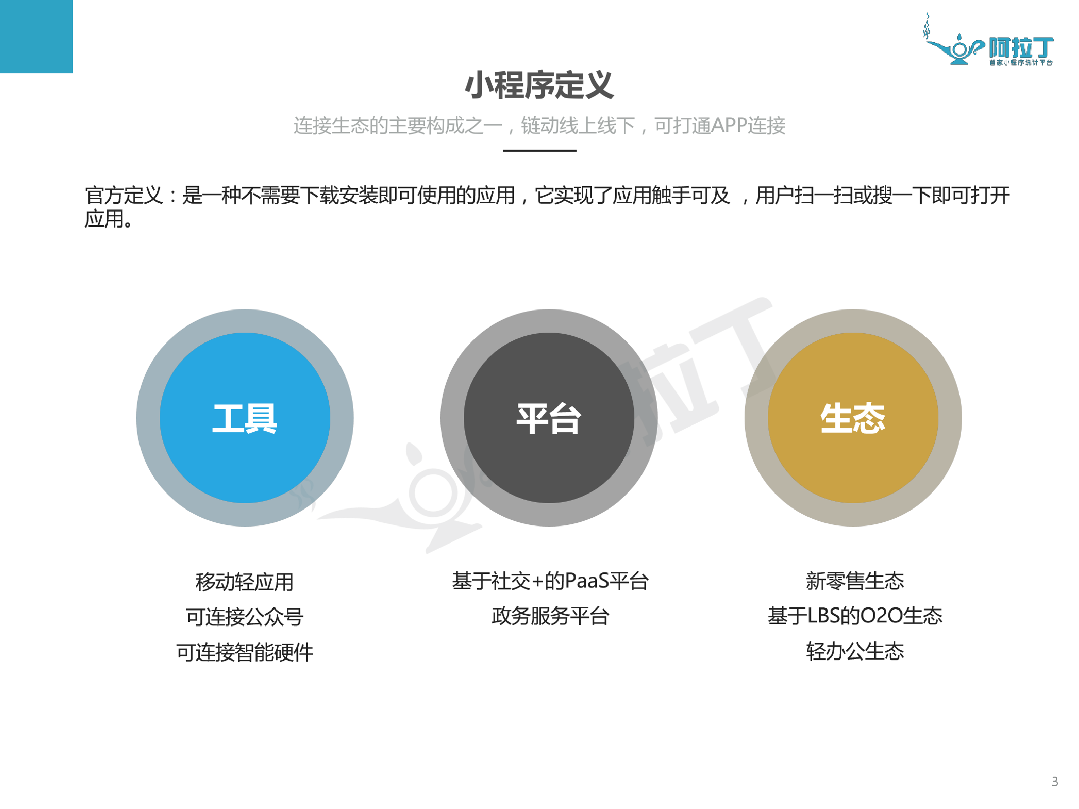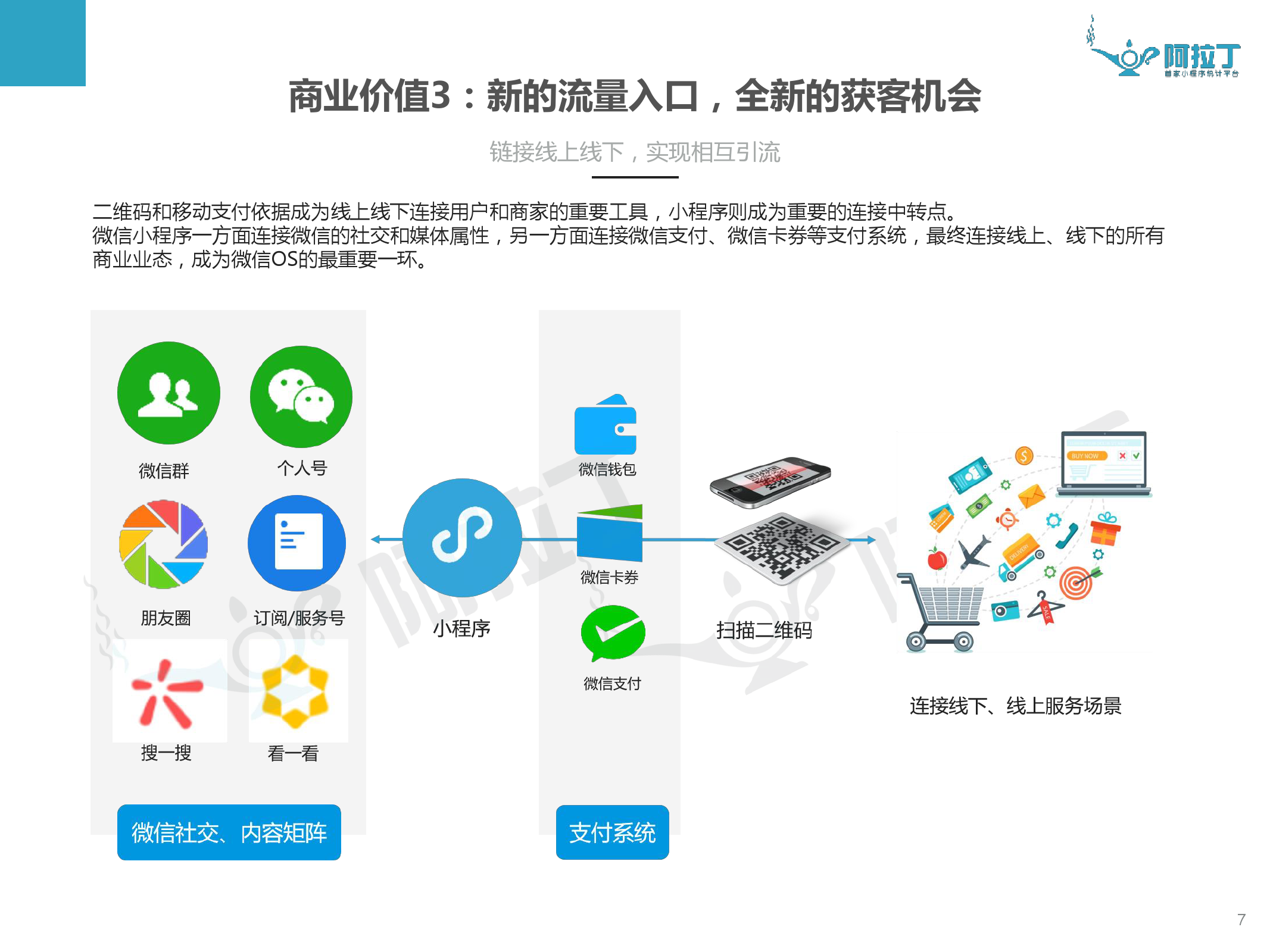“传统零售行业最核心的,是知道人、货、场。目前传统的线上流量获取成本越来越高,传统零售从业者做小程序最直接的收益,就是以相对低的成本,获取新客户增量,以及存量客户的高频消费。”阿拉丁创始人史文禄说,基于地理位置,麦当劳可以通过小程序,把单点的服务能力扩大到3-5公里,刺激老客户消费。