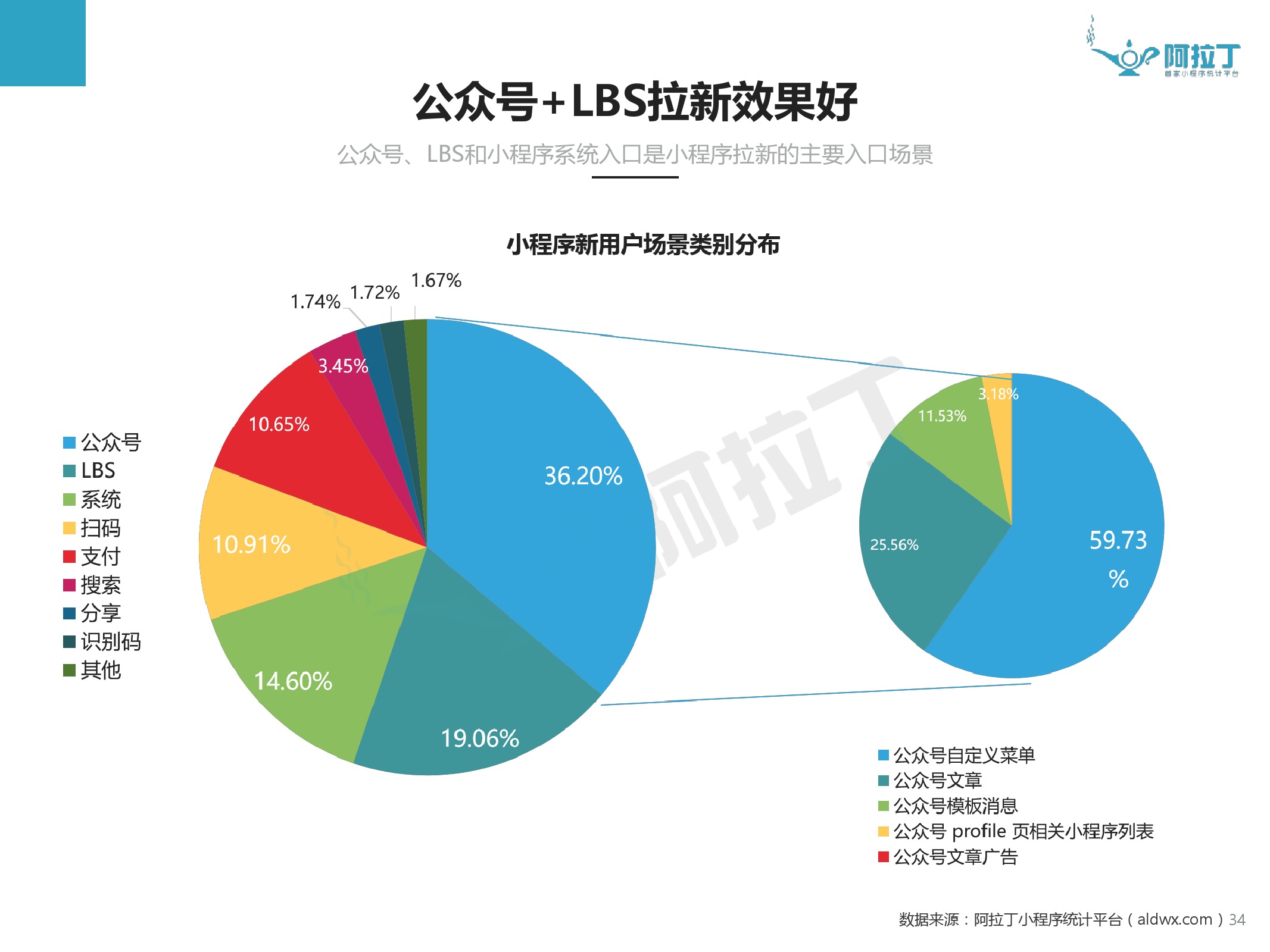根据报告,目前基于LBS(地理位置)获客,占到小程序拉新场景中的19.06%,