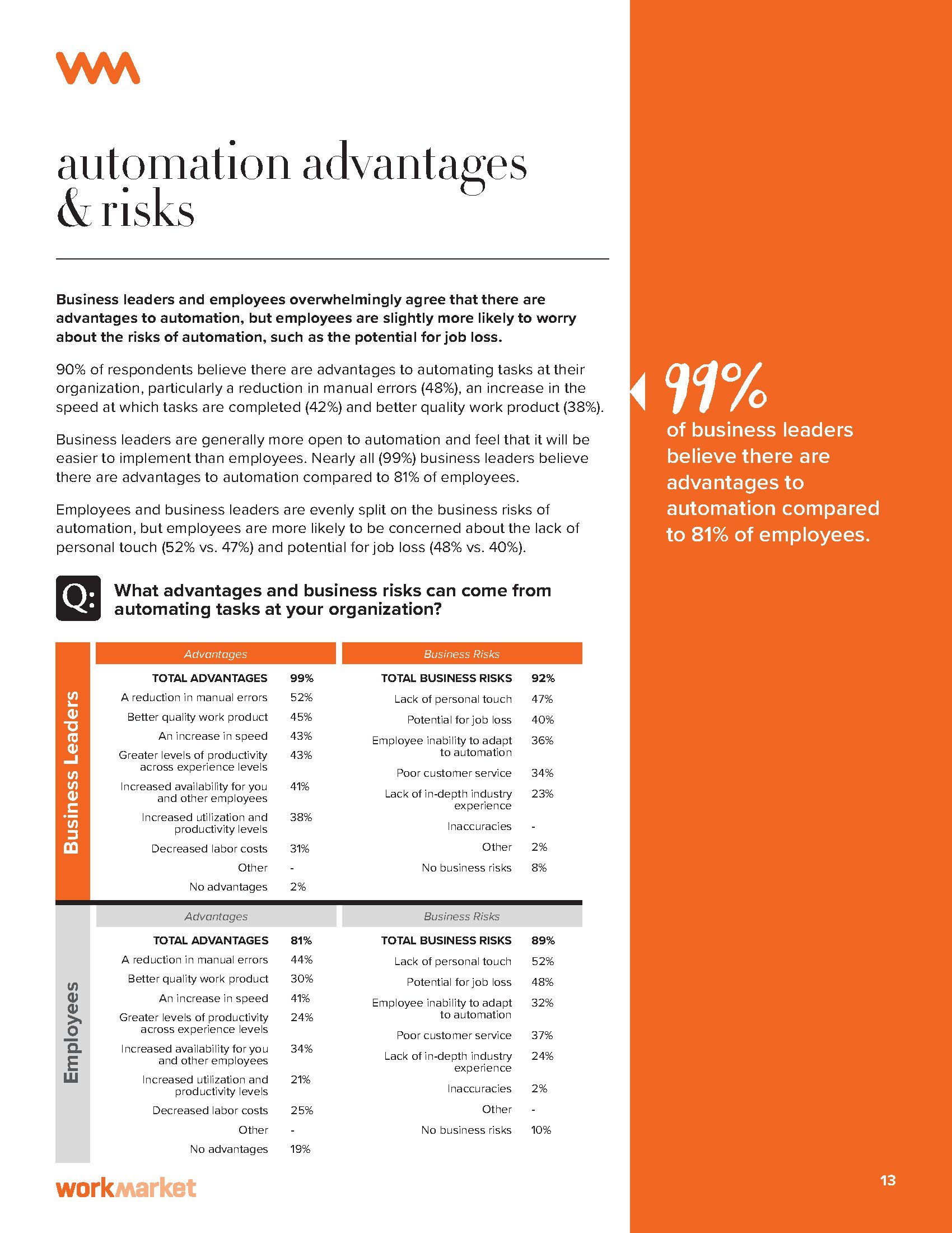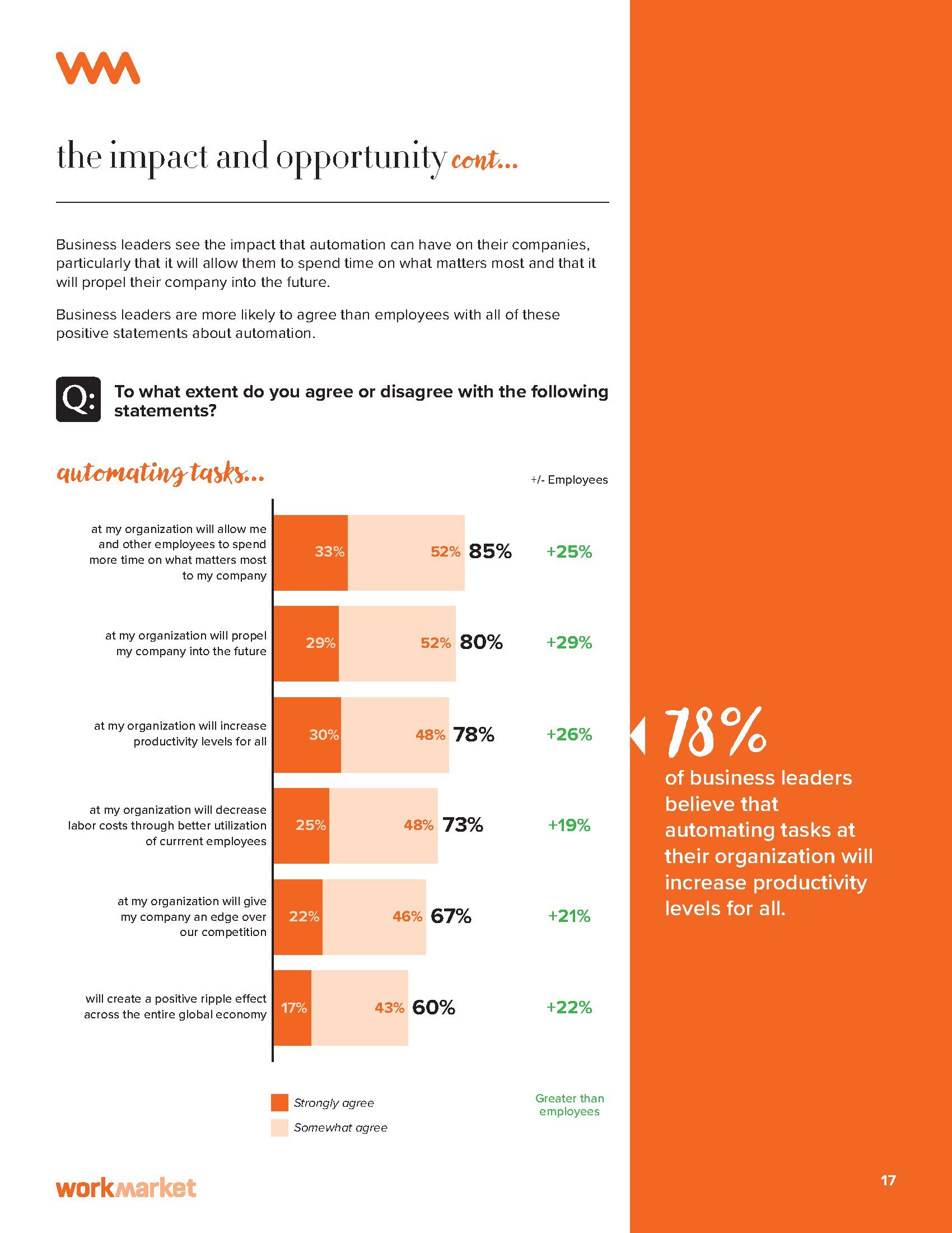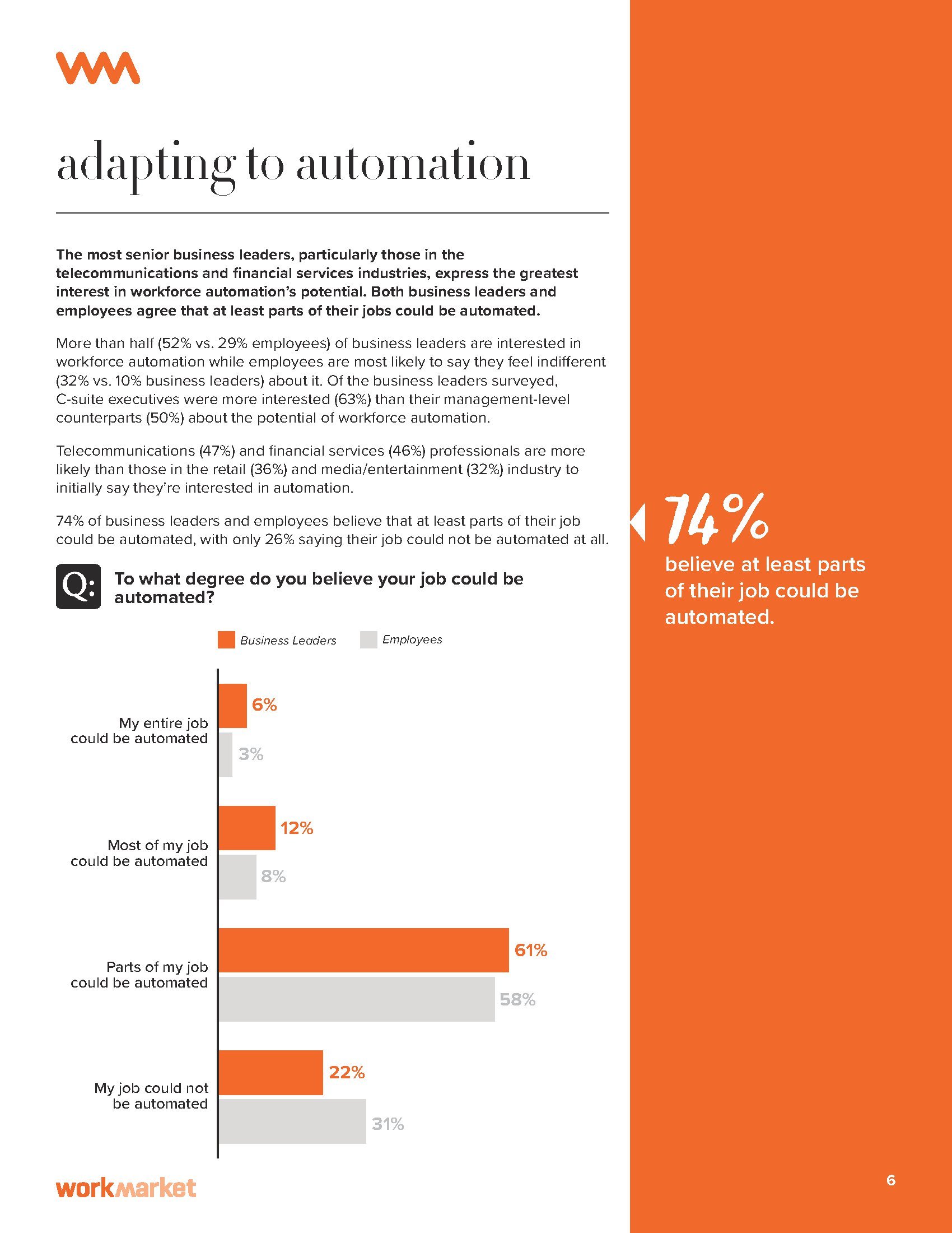 74%的企业领导和员工认为至少部分工作可以自动化。