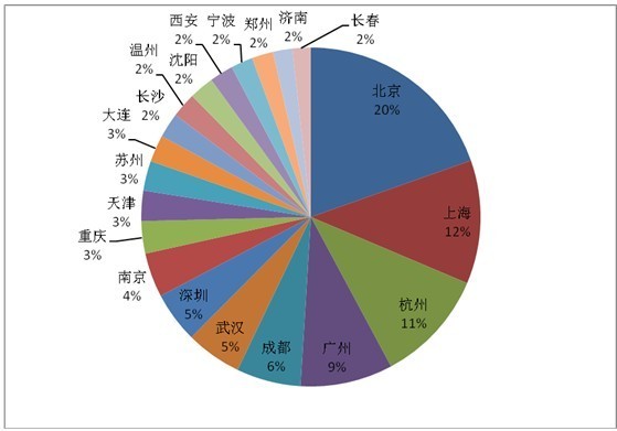 数据显示,北京、上海、广州、杭州、成都、武汉六地的淘女郎从业者占据六成。这主要和上述城市网店数量相对较多以及淘女郎本身绝对值数量较多有关。作为一线城市的北上广三地,更是占据40%的市场份额。