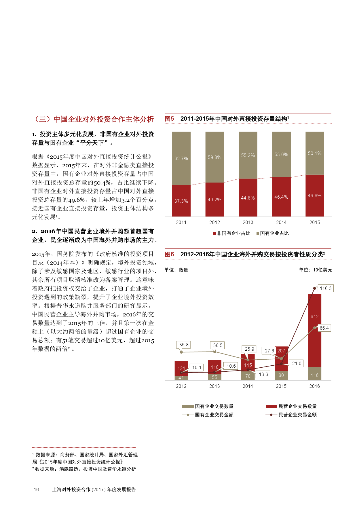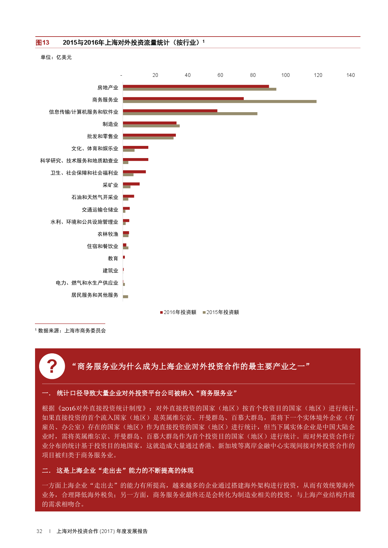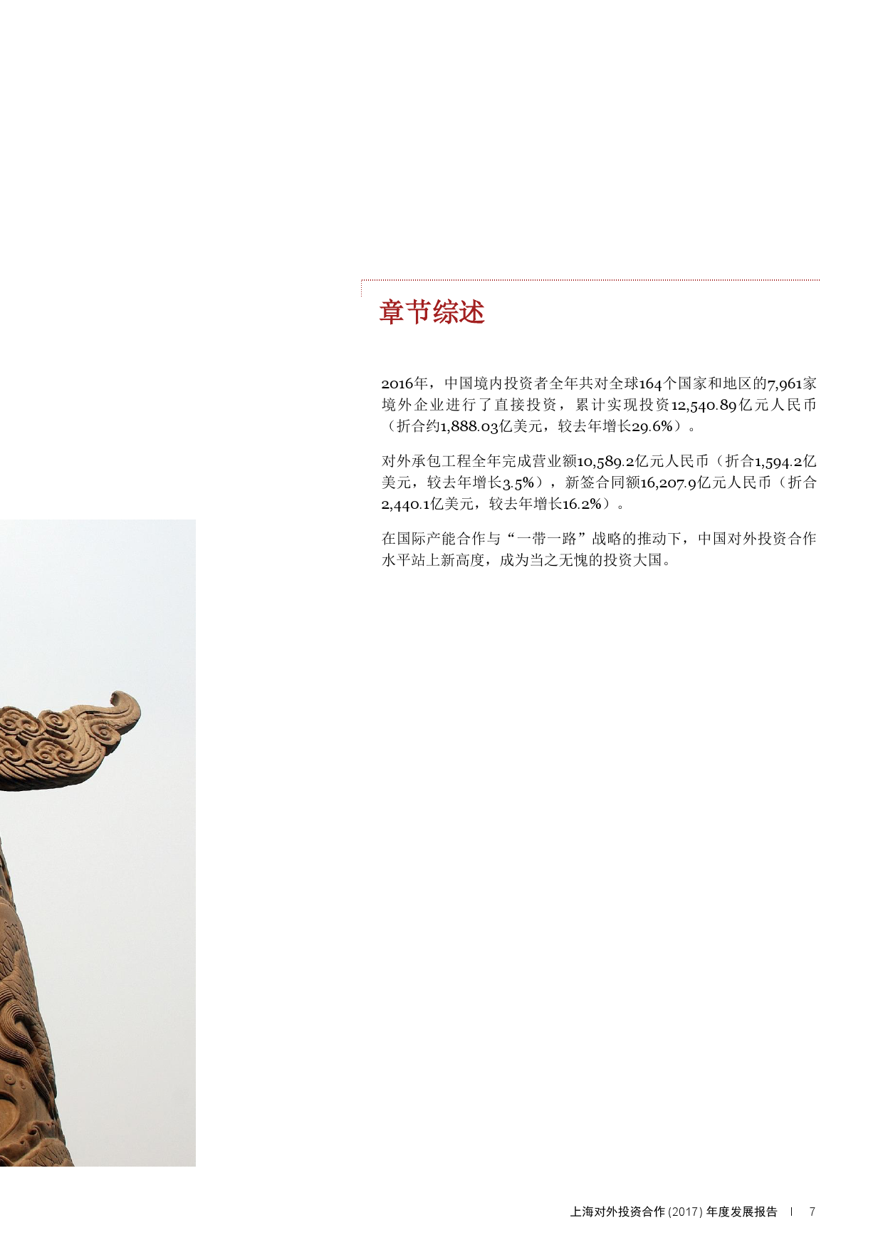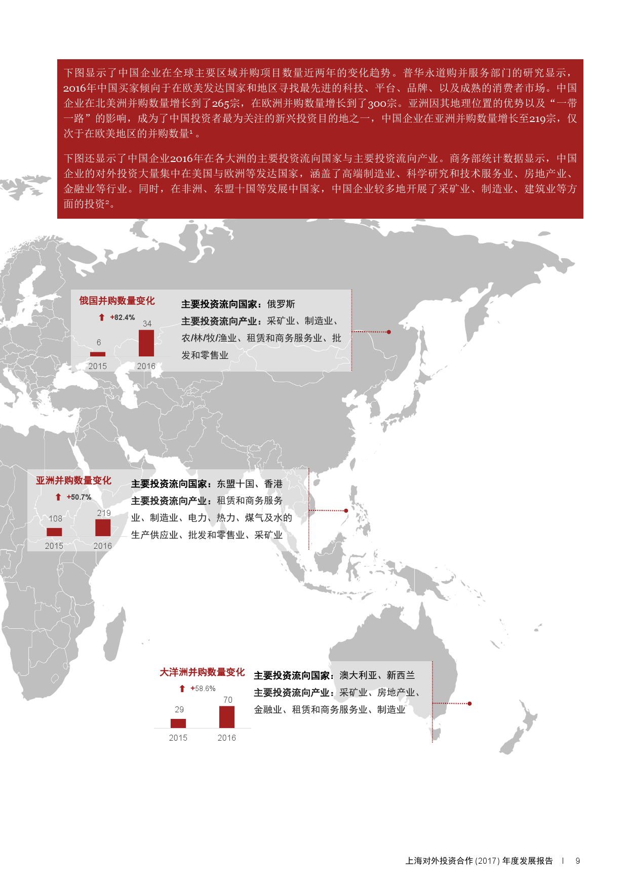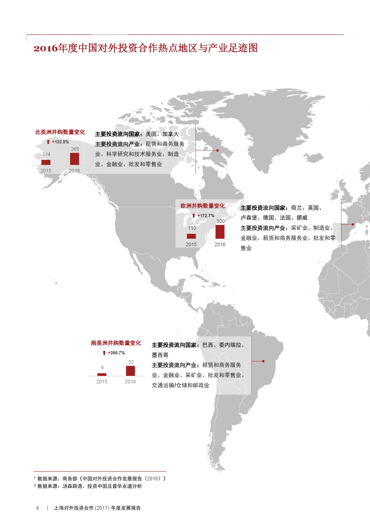 上海在2016年的对外投资合作中取得了丰硕的成果,而2017年以来的中国对外投资合作新形势也对上海提出了新的要求。上海政府如何在机遇与挑战并存的国内外环境中更好地协助上海企业在对外投资合作中明晰形势动态、把握发展机遇、应对潜在风险并全面提升企业对外投资合作的可持续发展水平,就成为了上海市商务委员会与上海市其他政府部门未来将重点研究的课题。
