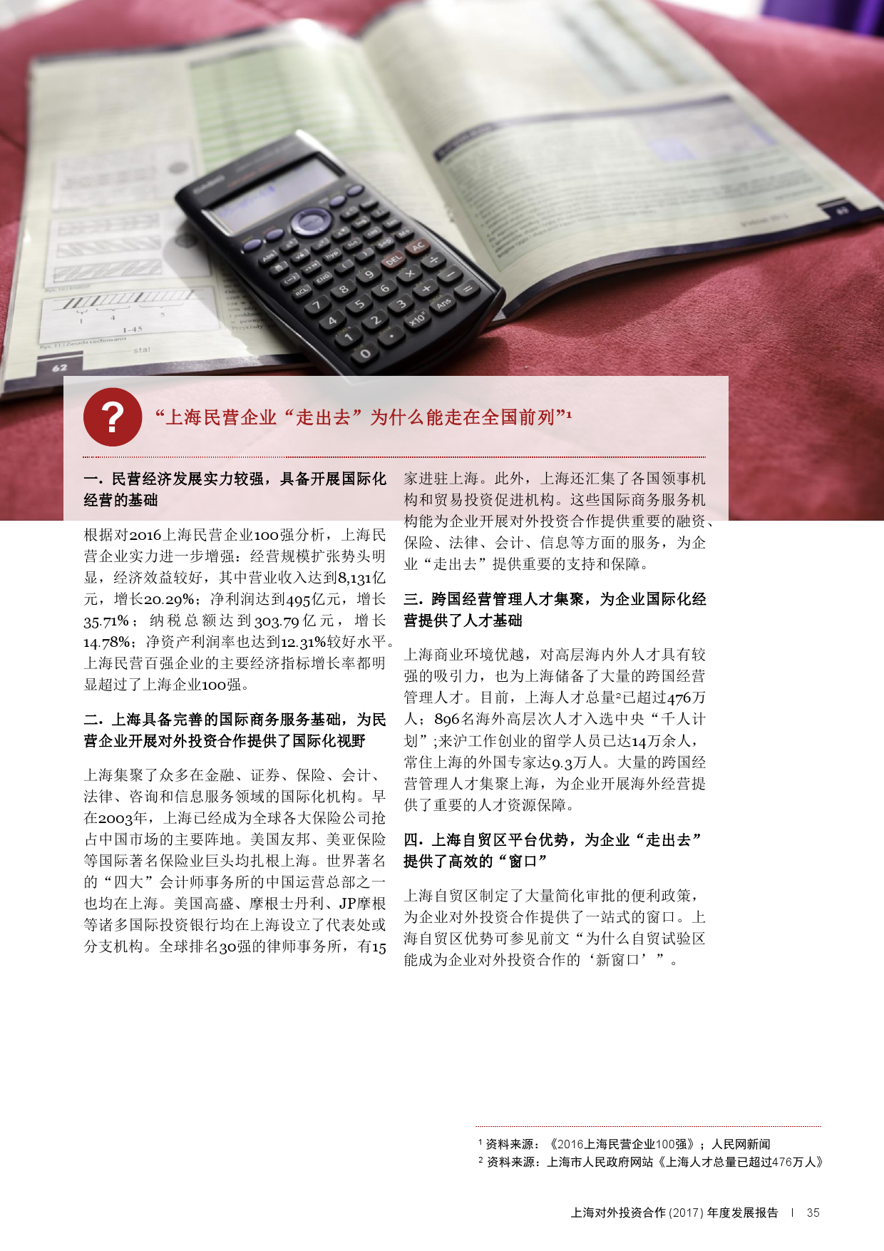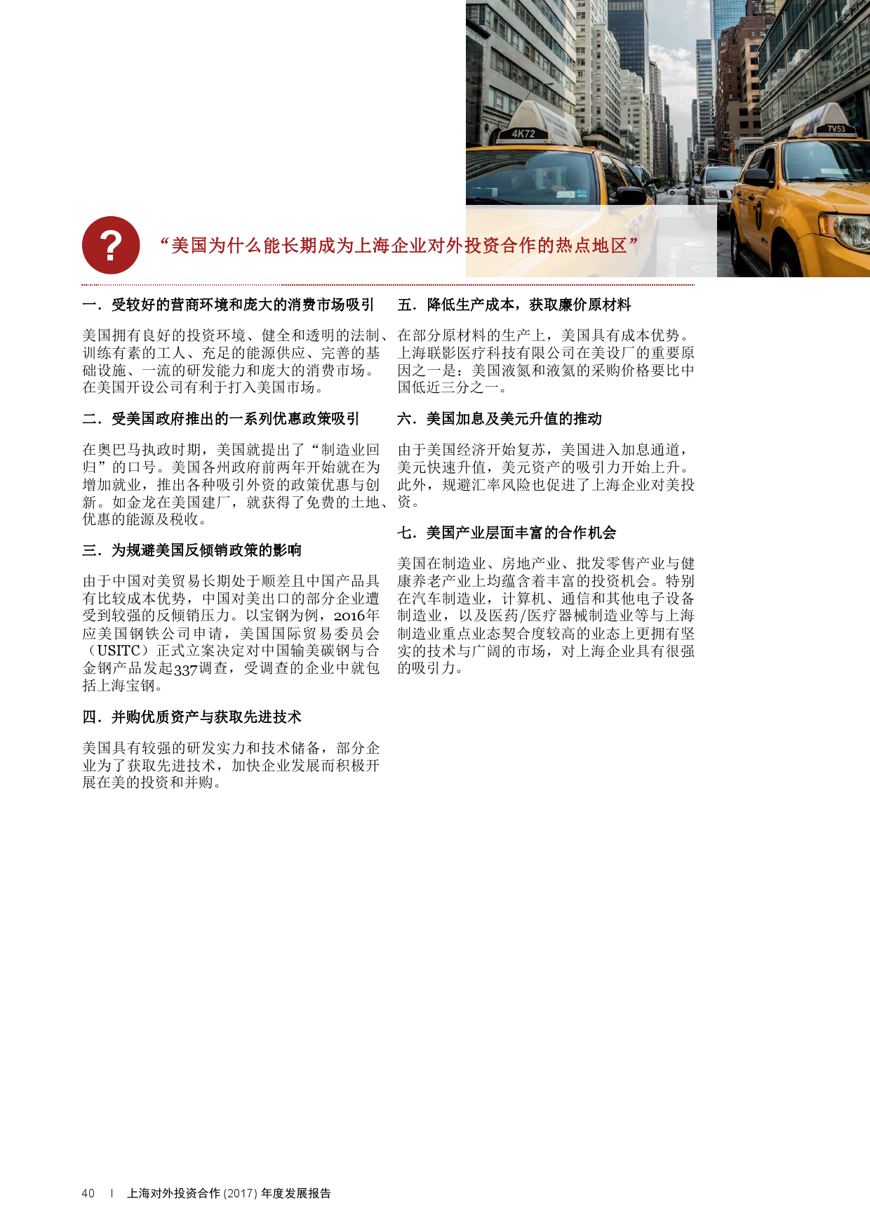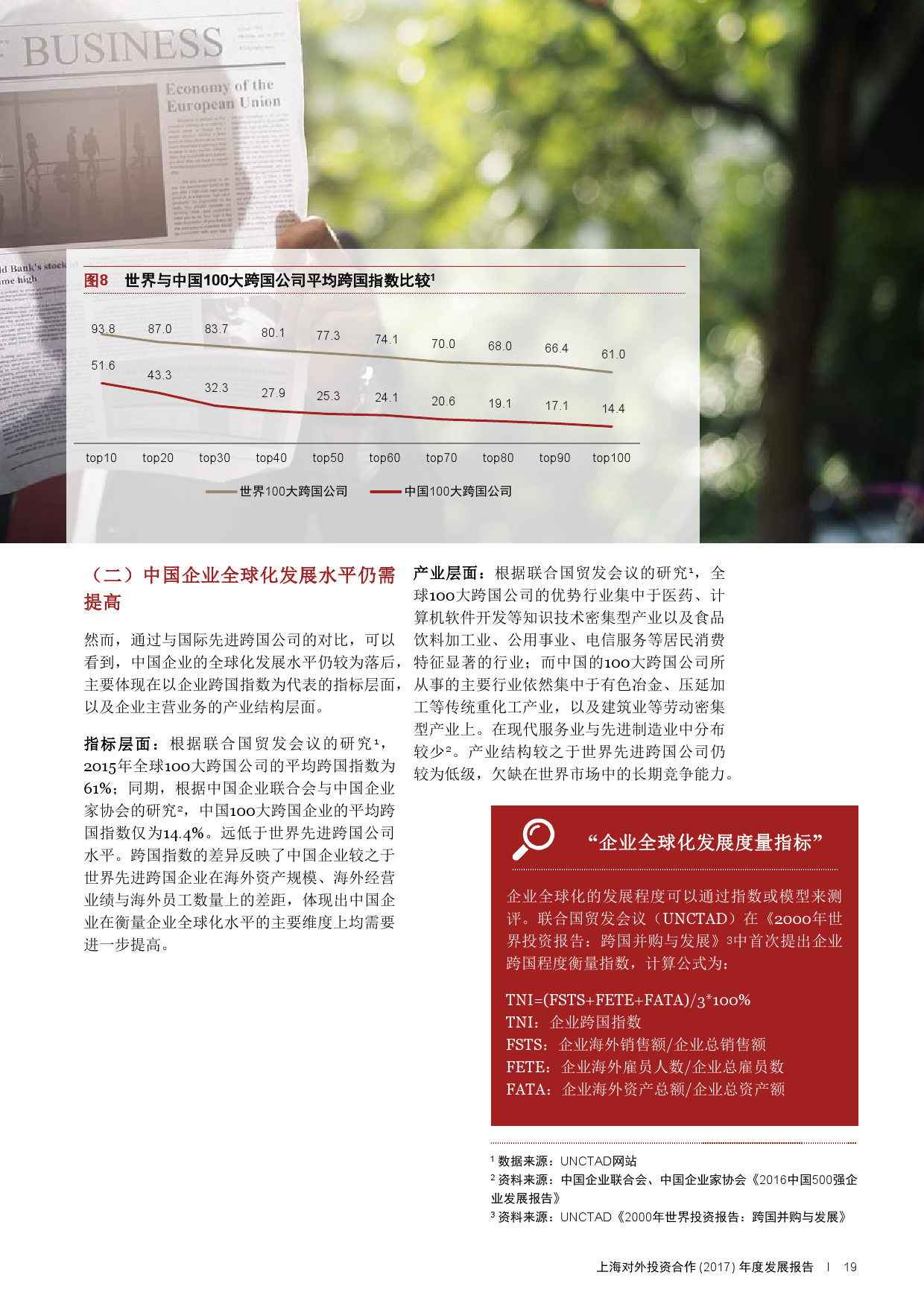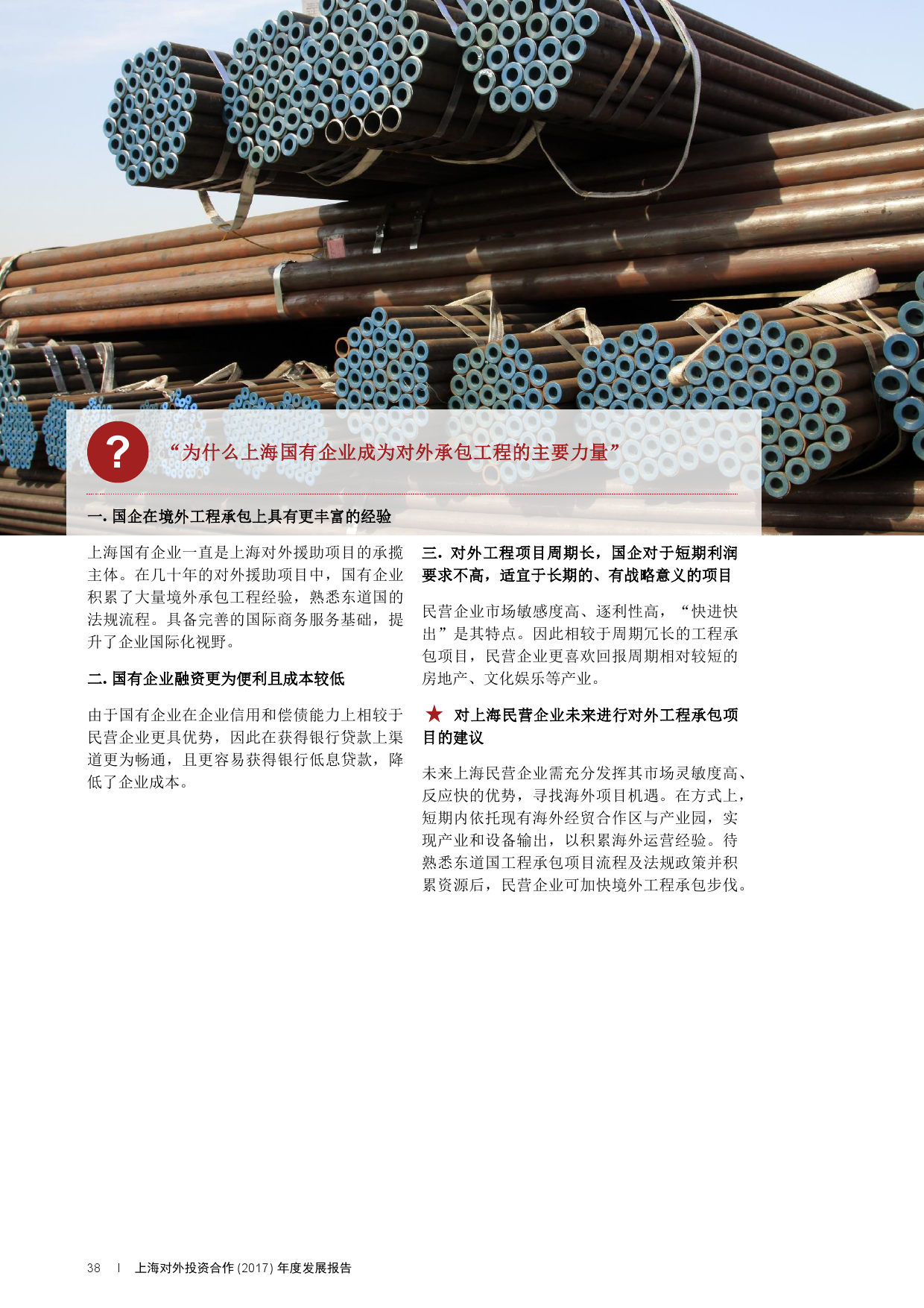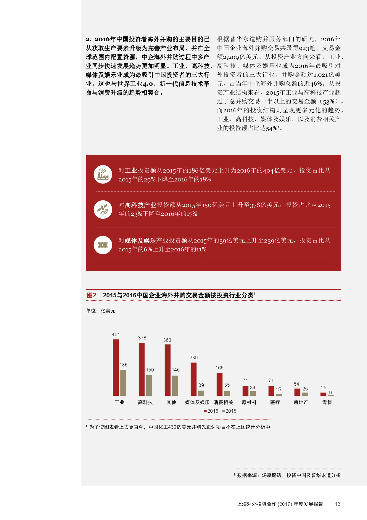 上海在2016年的对外投资合作中取得了丰硕的成果,而2017年以来的中国对外投资合作新形势也对上海提出了新的要求。上海政府如何在机遇与挑战并存的国内外环境中更好地协助上海企业在对外投资合作中明晰形势动态、把握发展机遇、应对潜在风险并全面提升企业对外投资合作的可持续发展水平,就成为了上海市商务委员会与上海市其他政府部门未来将重点研究的课题。