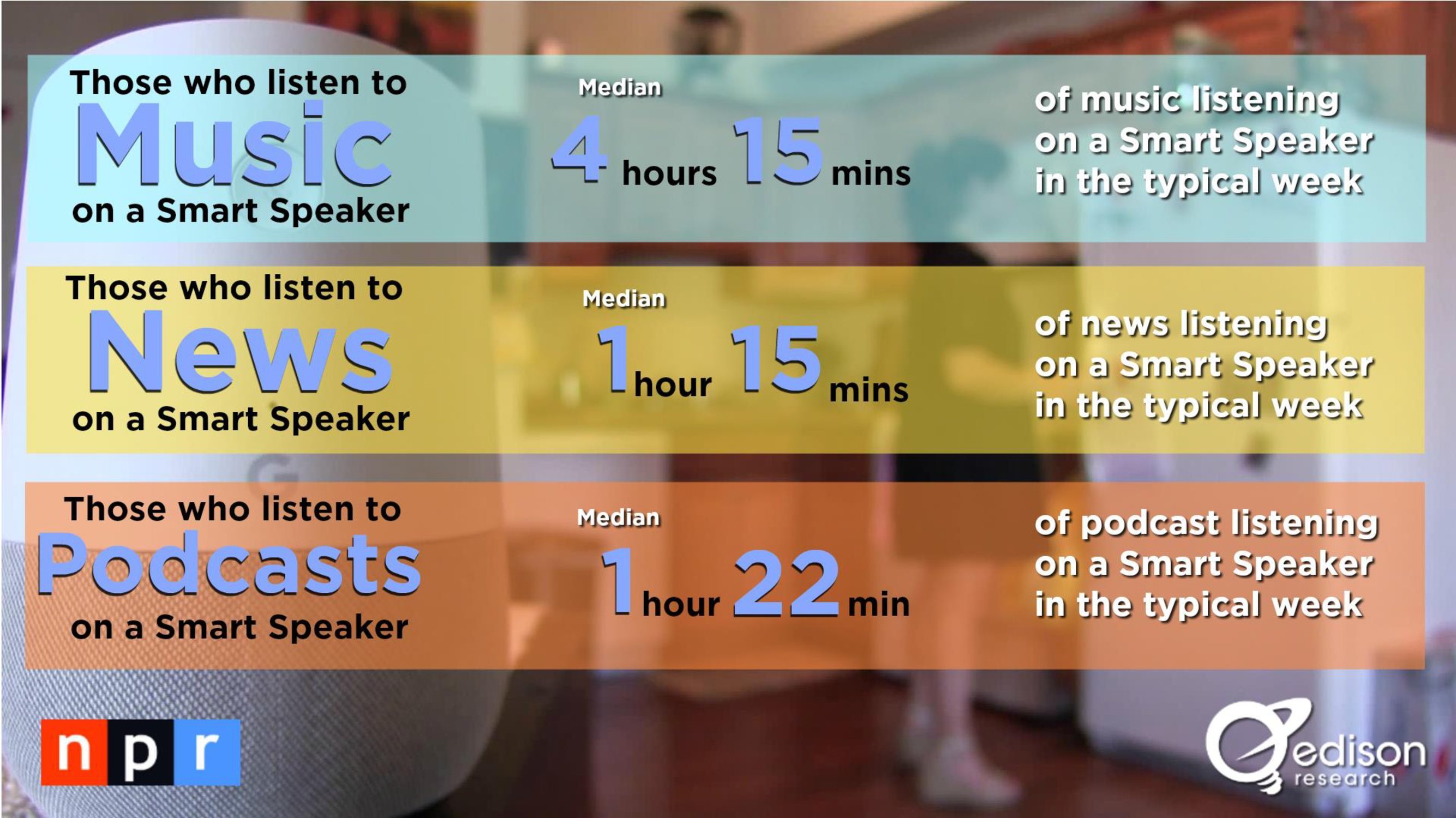 智能扬声器改变了人们收听音频内容的行为,消除音频内容消费摩擦,这将推动音频内容的整体收听量。