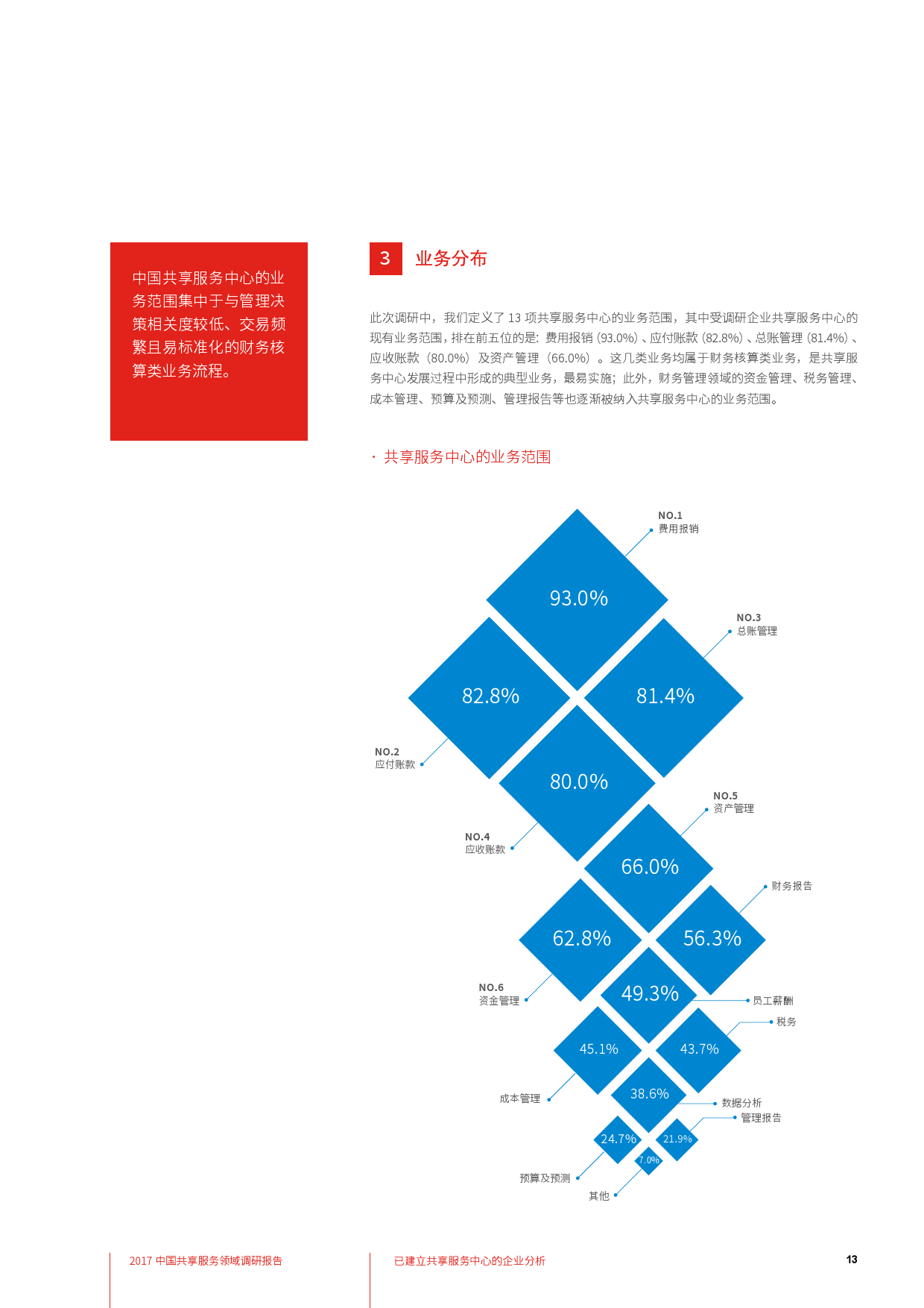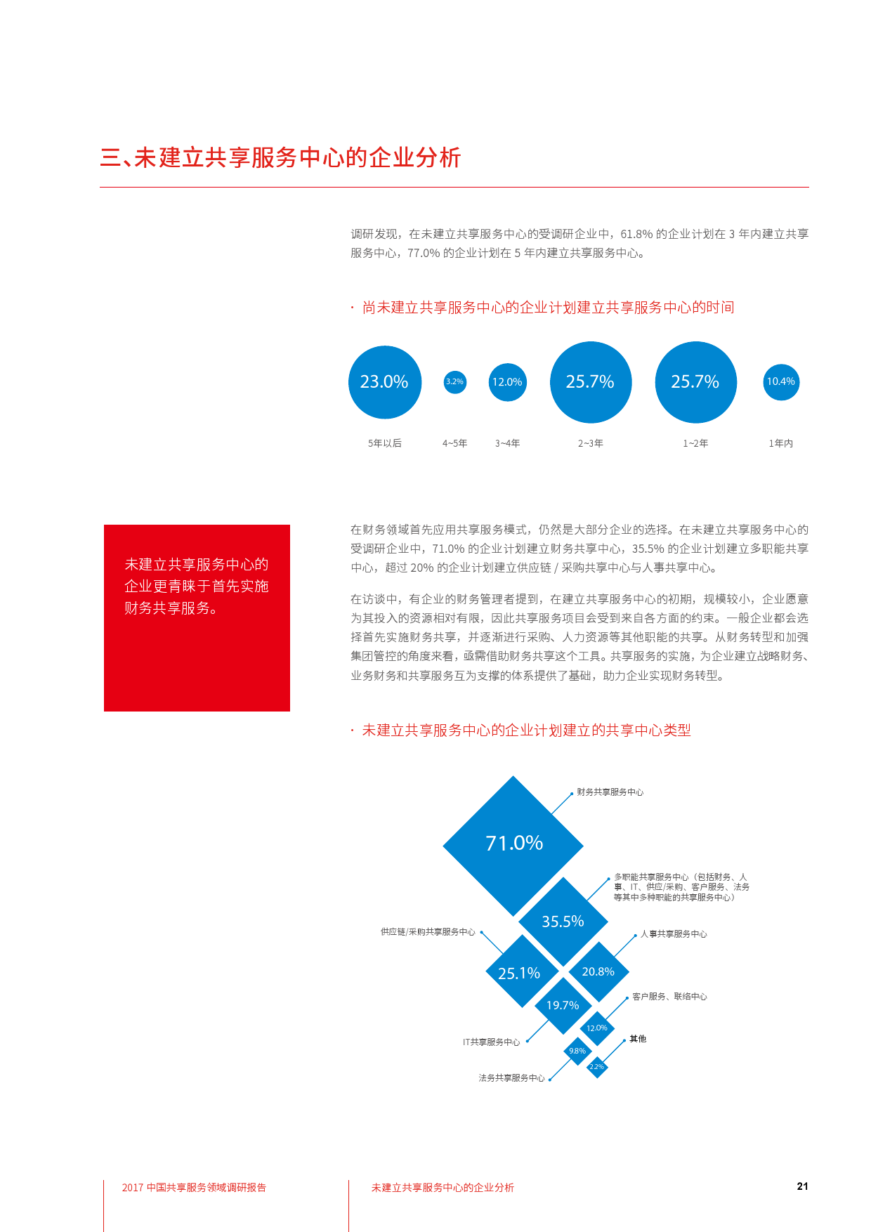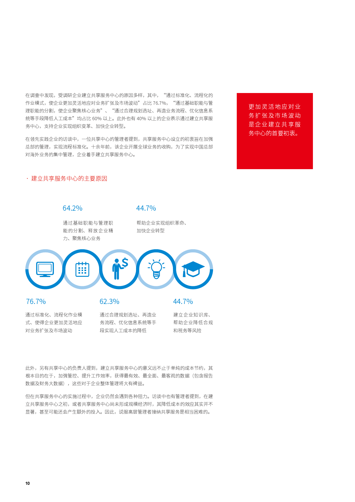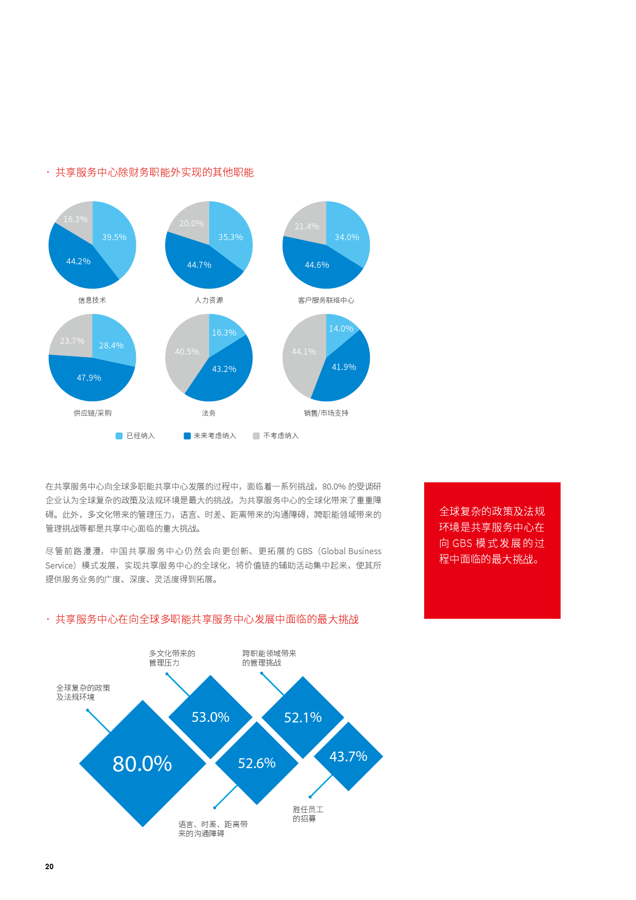 调查结果显示,在已建立共享服务中心的受调研企业中有55.8%的企业采用了单一中心模式,44.2%的企业采用了多中心模式,外资跨国企业普遍建立了多个共享服务中心,与服务对象时区、语言、文化的接近是其中的首要驱动因素。采用多中心模式,可以降低语言、时差等因素造成的地理障碍及文化差异。