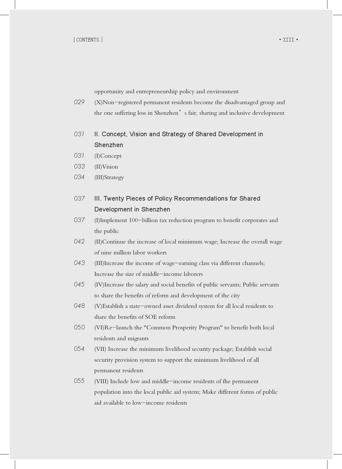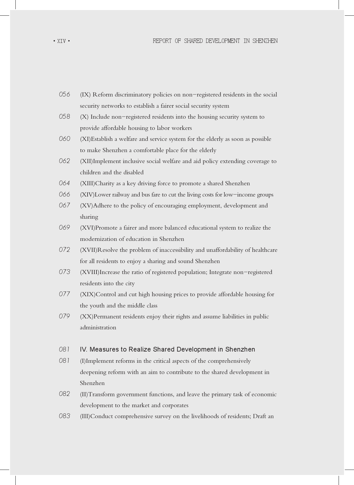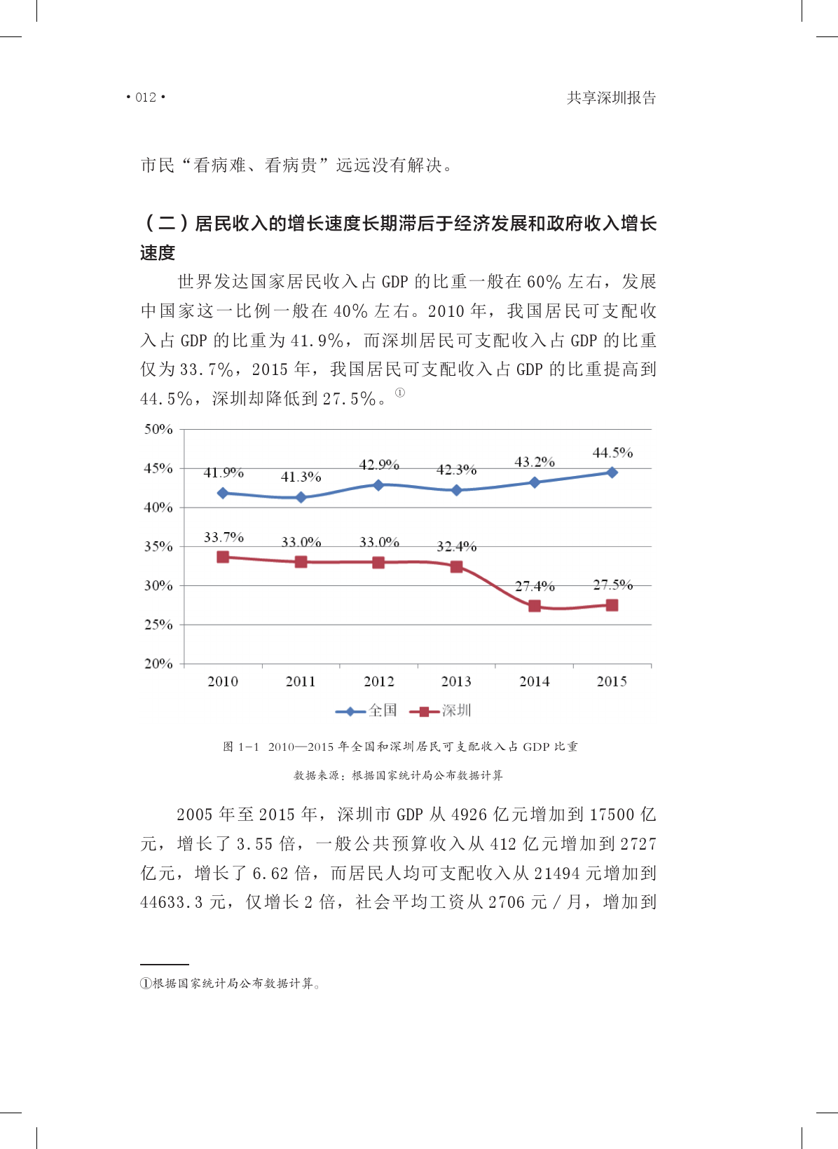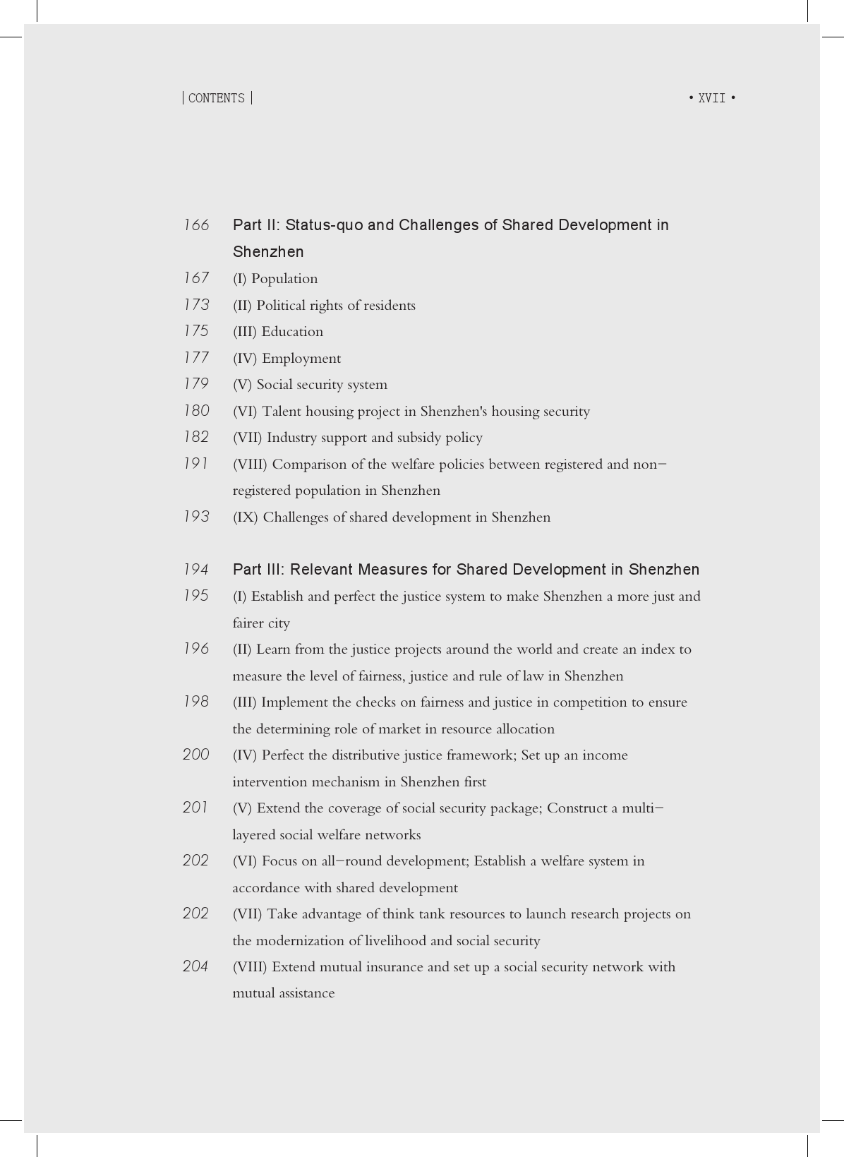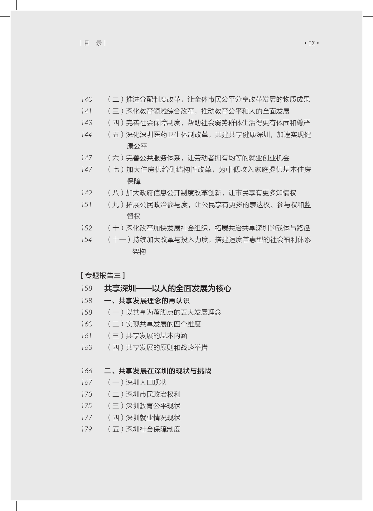 作为国内首本系统提出将“共享发展”作为城市战略目标的社会智库报告,《共享深圳报告》在大量数据和事实分析的基础上,提出具有可操作性的“共享深圳二十条”建议。主要包括四个层面:一是如何调整政府与企业、个人的一次分配的关系;二是如何建立公平普惠的社会福利和社会保障体系;三是如何完善提高政府的公共服务和公共产品体系;四是建议出台若干关键的制度性改革,如户籍制度改革、住房保障体制改革以及社会基层民主公开参与等。