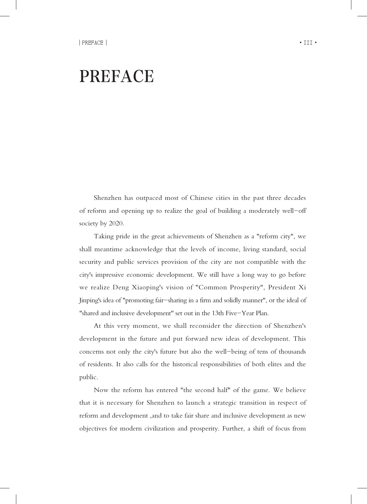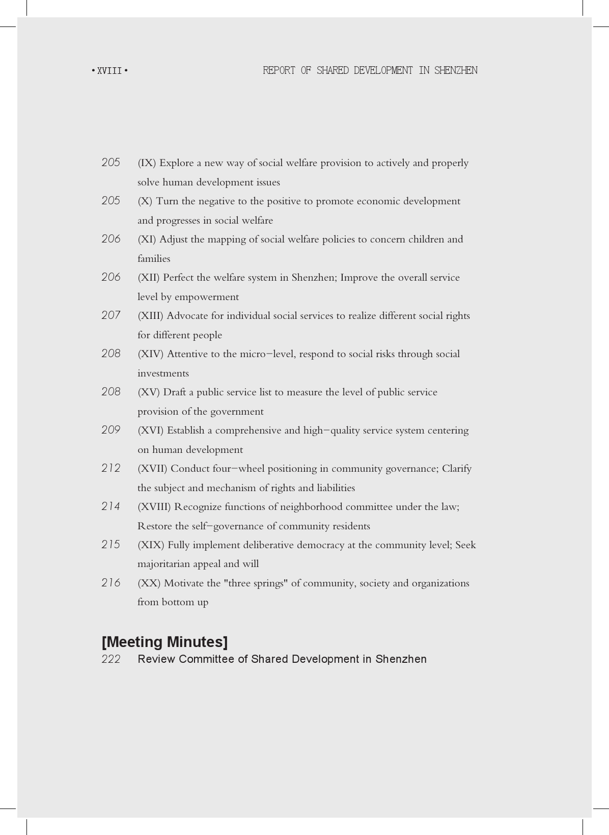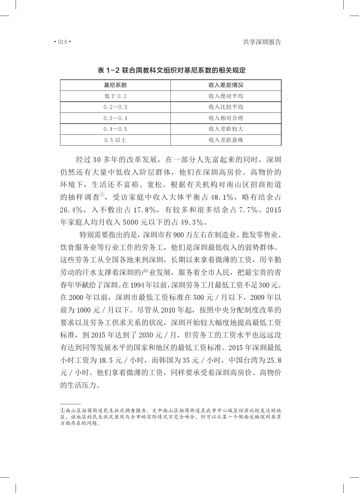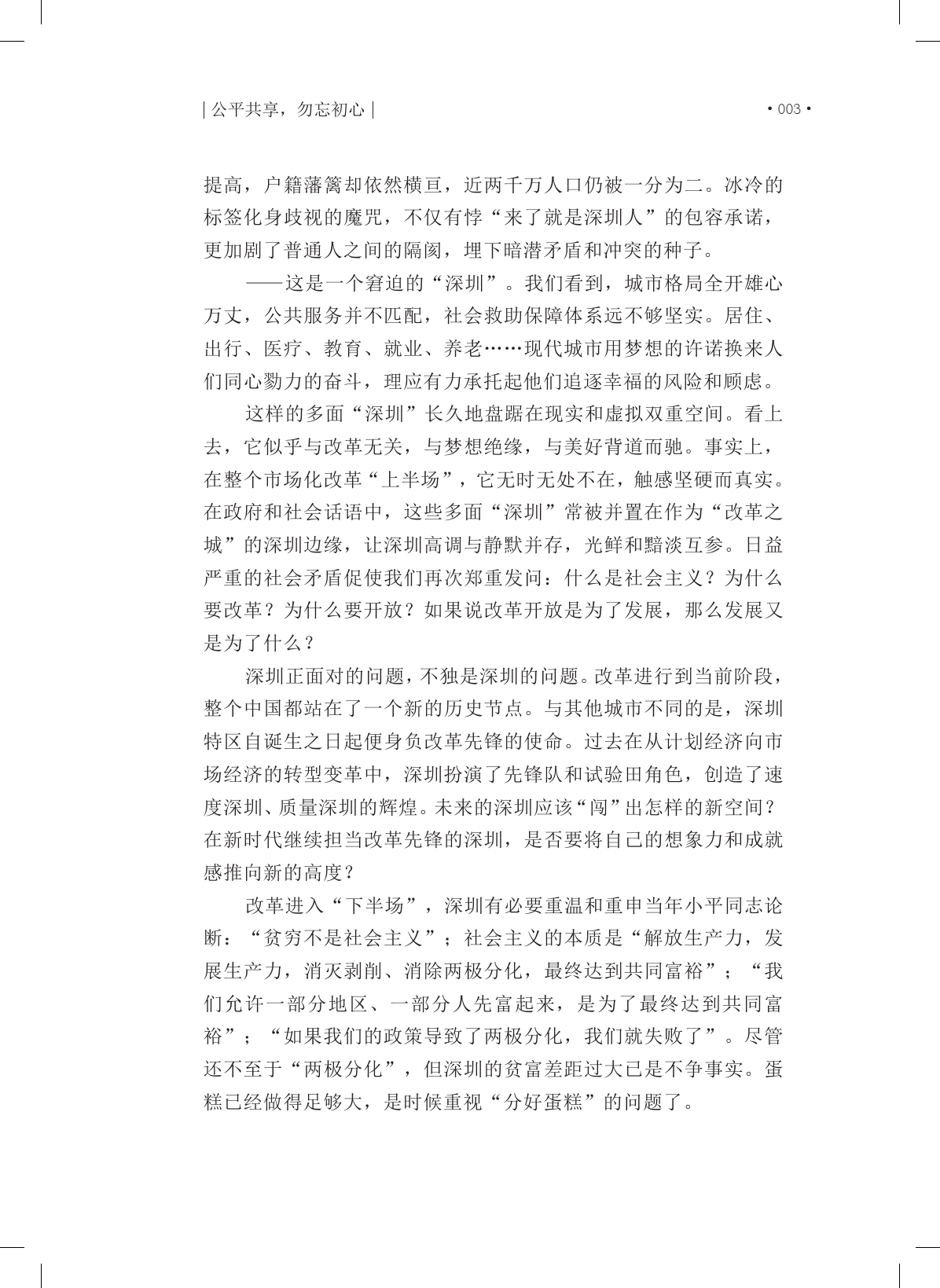 作为国内首本系统提出将“共享发展”作为城市战略目标的社会智库报告,《共享深圳报告》在大量数据和事实分析的基础上,提出具有可操作性的“共享深圳二十条”建议。主要包括四个层面:一是如何调整政府与企业、个人的一次分配的关系;二是如何建立公平普惠的社会福利和社会保障体系;三是如何完善提高政府的公共服务和公共产品体系;四是建议出台若干关键的制度性改革,如户籍制度改革、住房保障体制改革以及社会基层民主公开参与等。