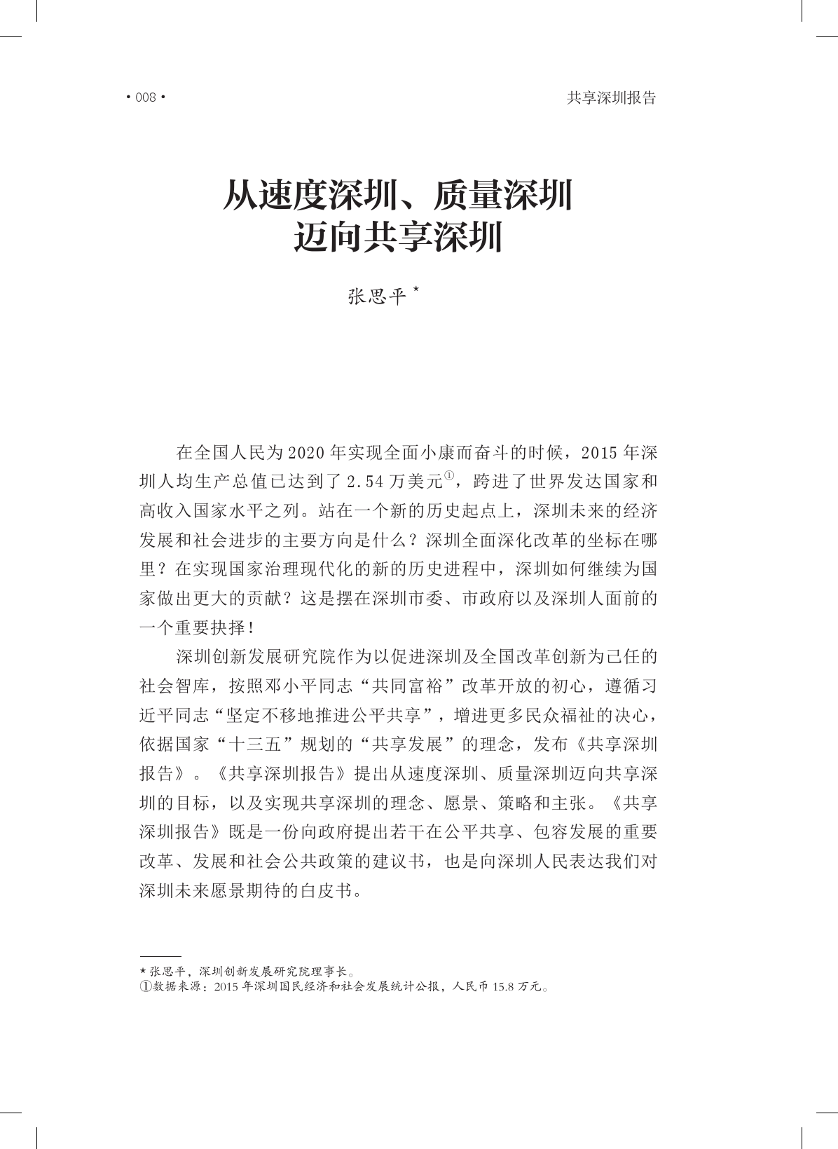《共享深圳报告》是深圳创新发展研究院组织发起的针对深圳发展长远性、战略性、方向性、理念性重大问题的年度研究课题。