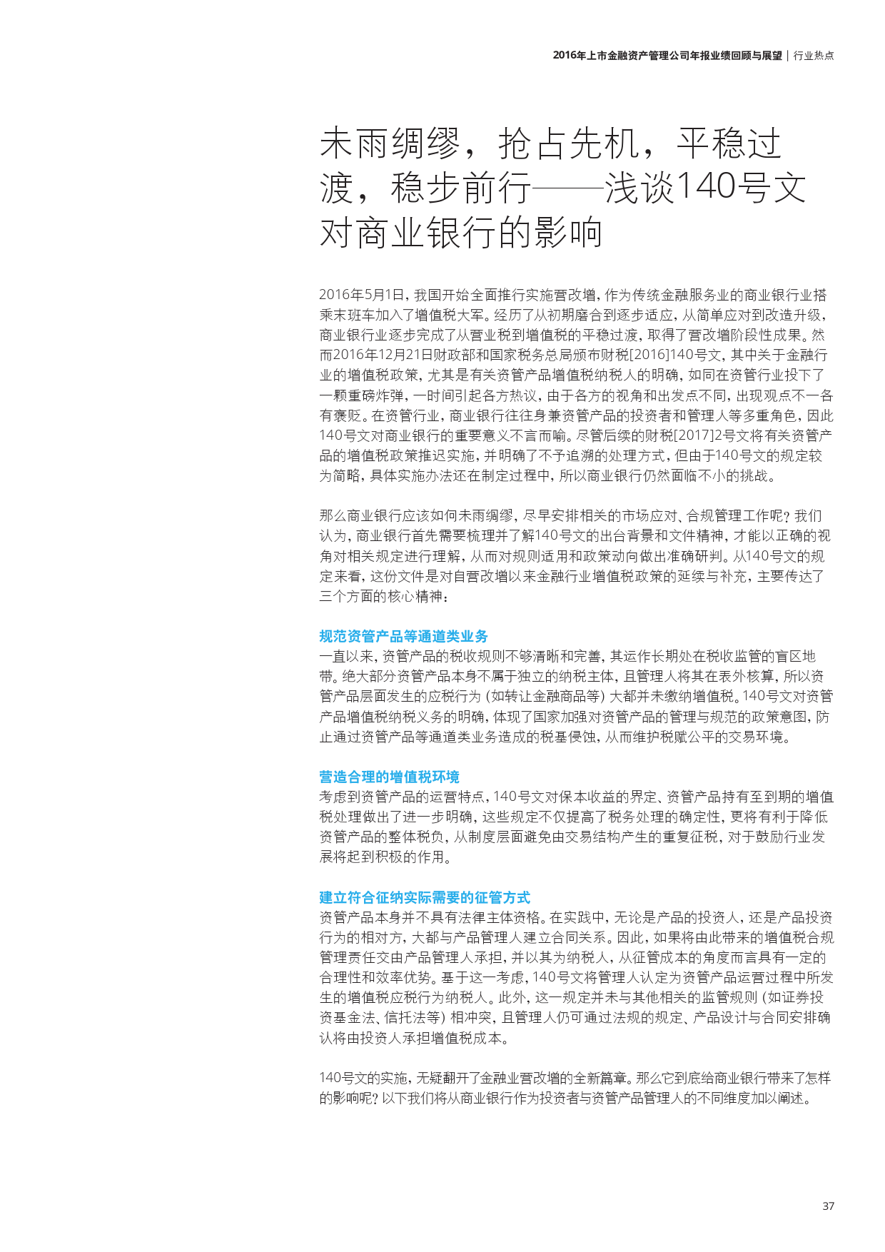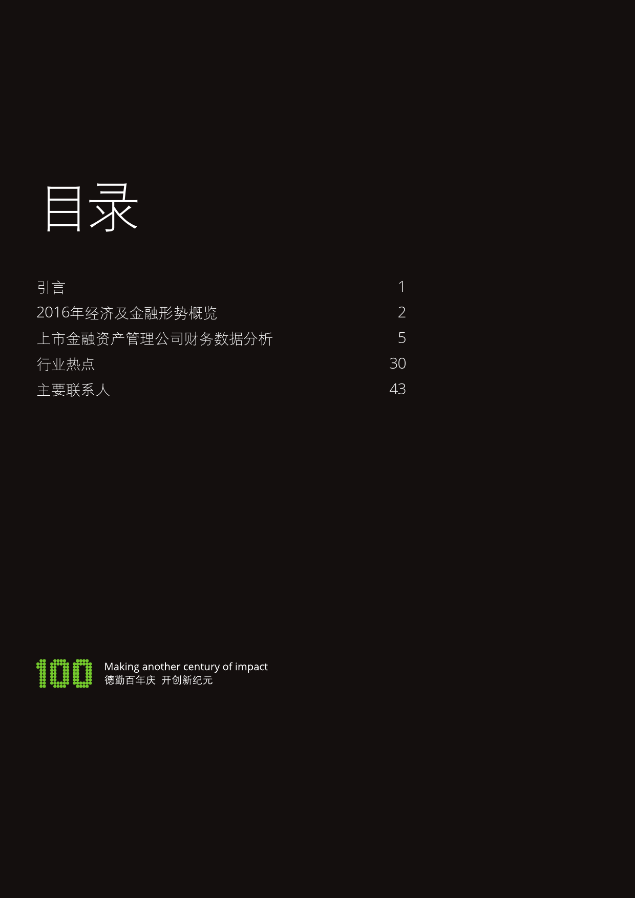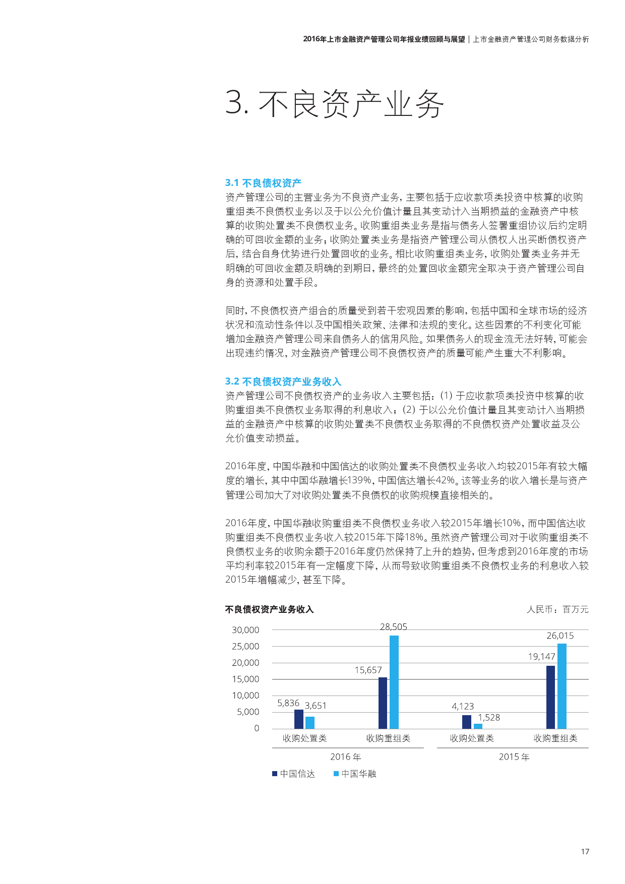 本报告涵盖了中国经济及金融形势概览和H股的金融资产管理公司2016年财务业绩分析,还探讨了行业热点话题,并展望中国资产管理行业来年的发展趋势。