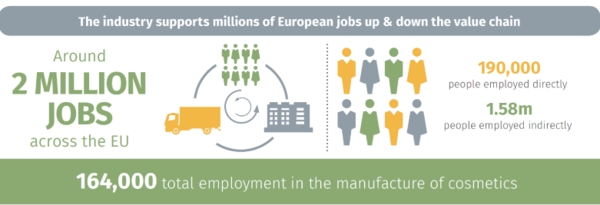 美妆和个护行业每年为欧洲经济带来至少 290亿欧元的附加值,其中 80亿来自美妆产品、210亿来自供应链的间接贡献。
