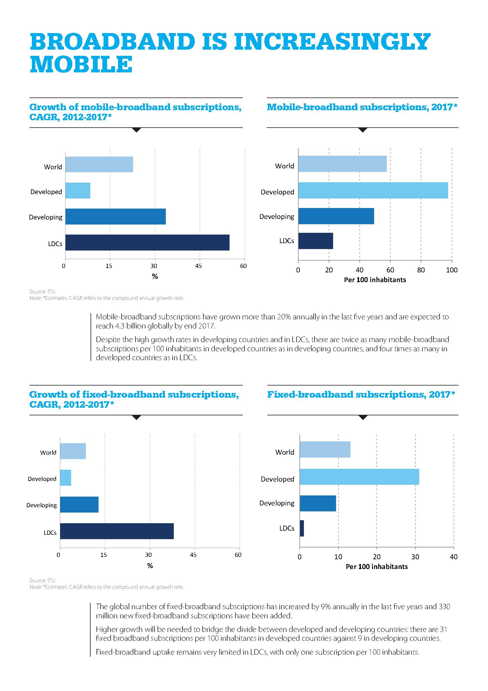 今年,全球固定宽带普及率达到13.1%,而发达国家固定宽带普及率则达到31%。