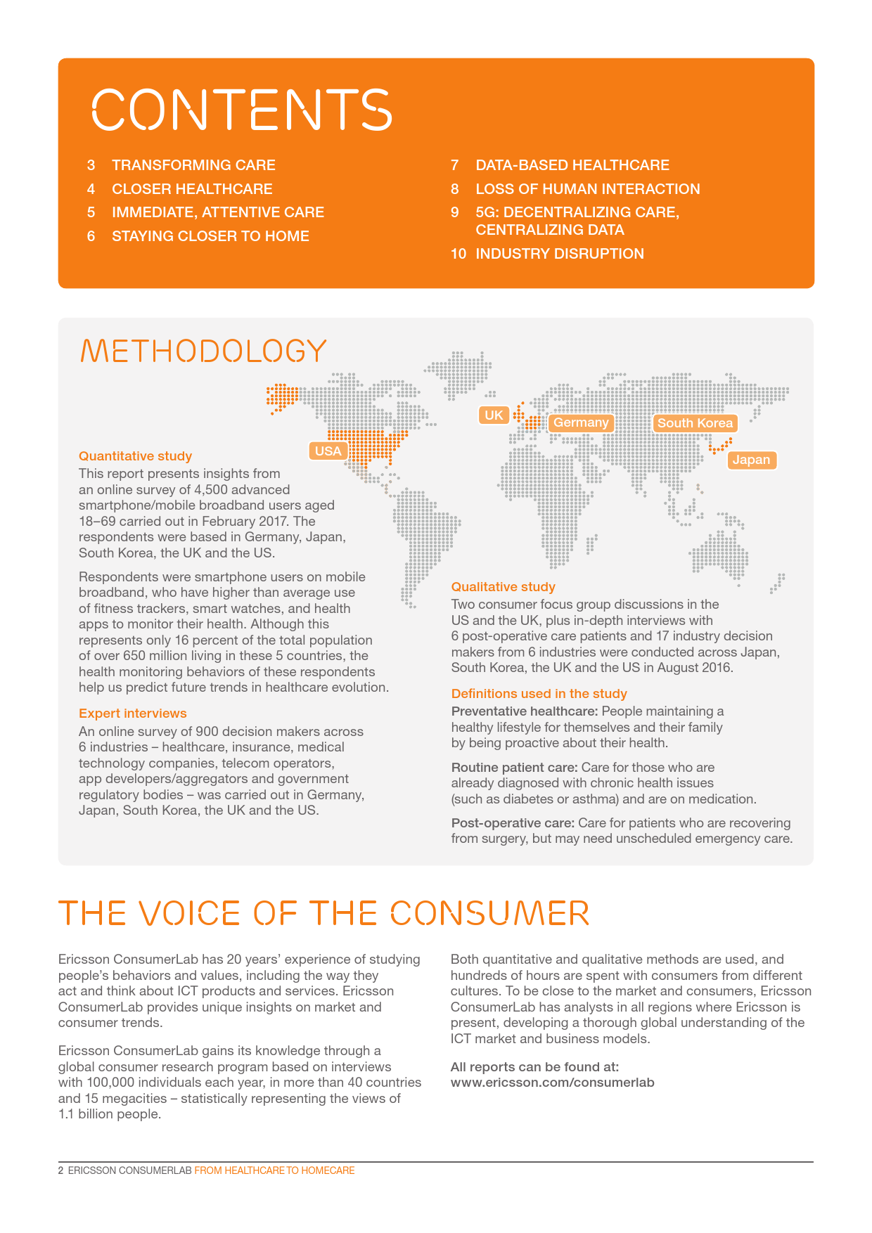 爱立信在线调查了德国、日本、韩国、英国和美国的4500个智能手机和移动宽带用户,以及这些国家来自六大行业的900名决策者,包括医疗卫生、保险、医疗科技公司、电信运营商、应用开发商/集成商和政府监管机构。