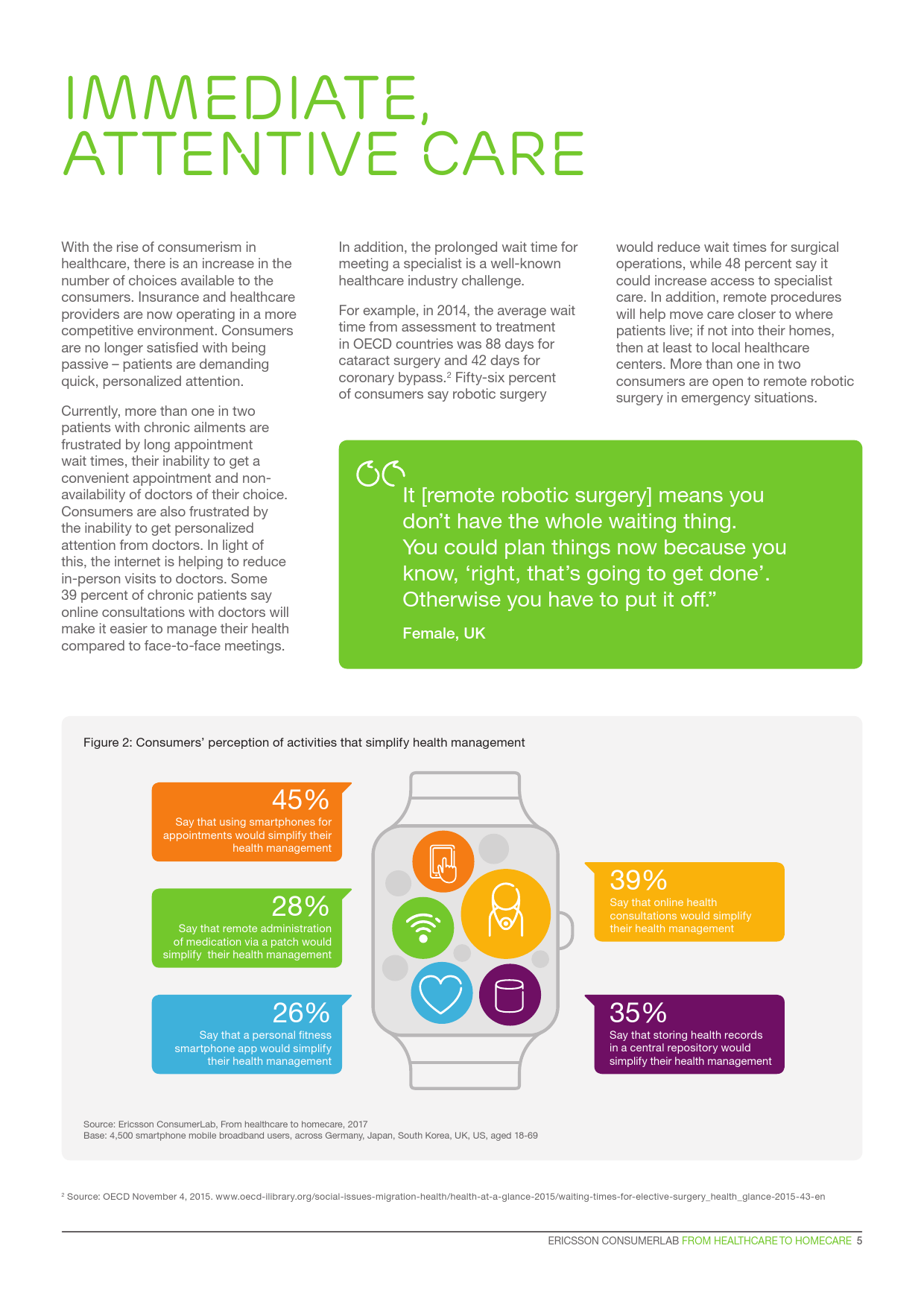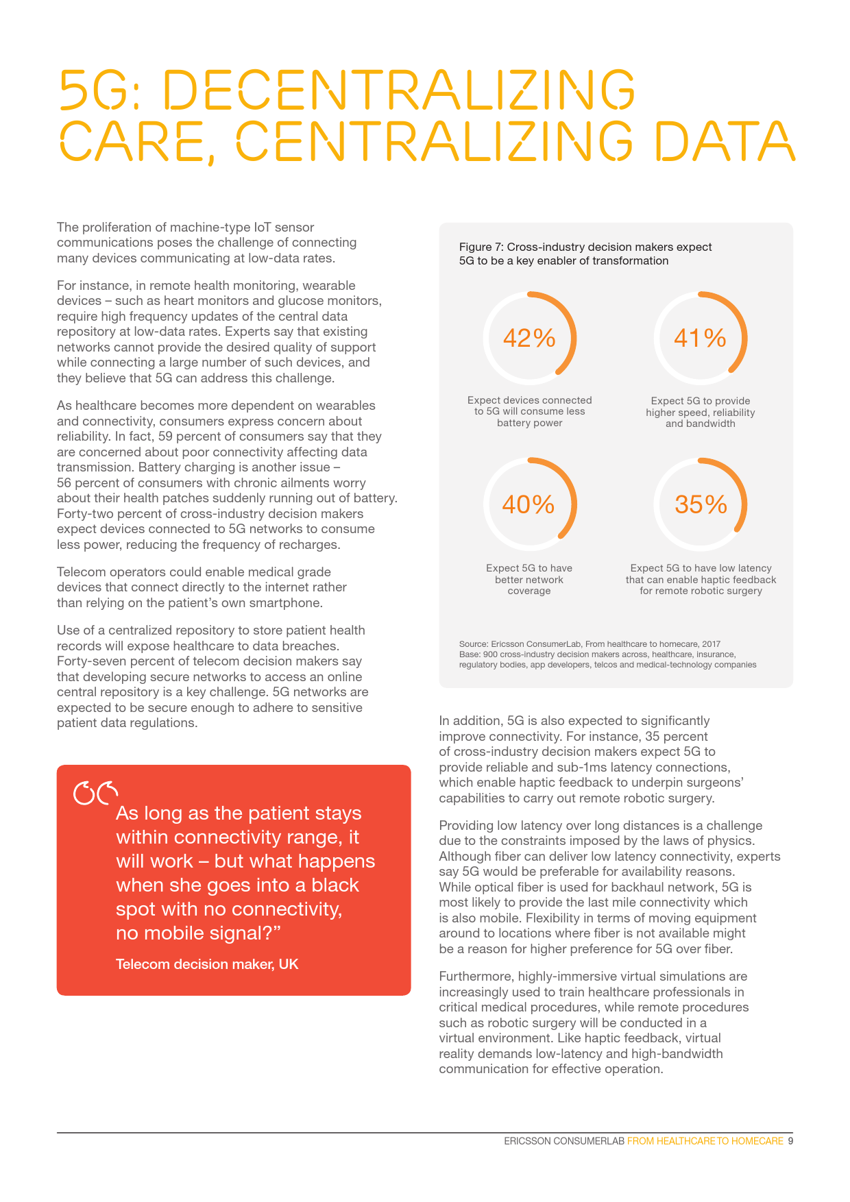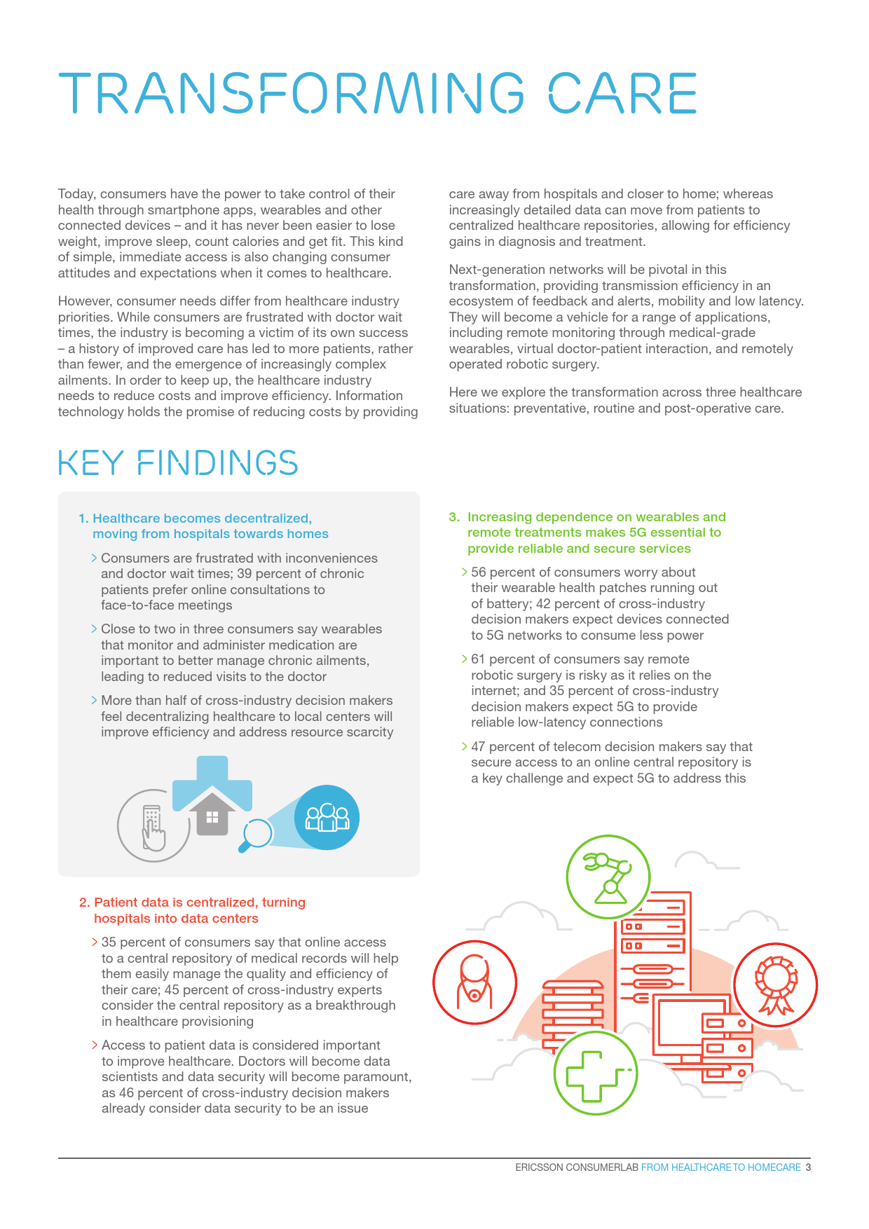 爱立信在最新发布的消费者研究报告《医疗卫生向家庭护理模式转型》中阐述了在消费者眼中,5G对未来医疗保健的影响以及医疗保健在预防、常规医疗和术后护理方面的转变。