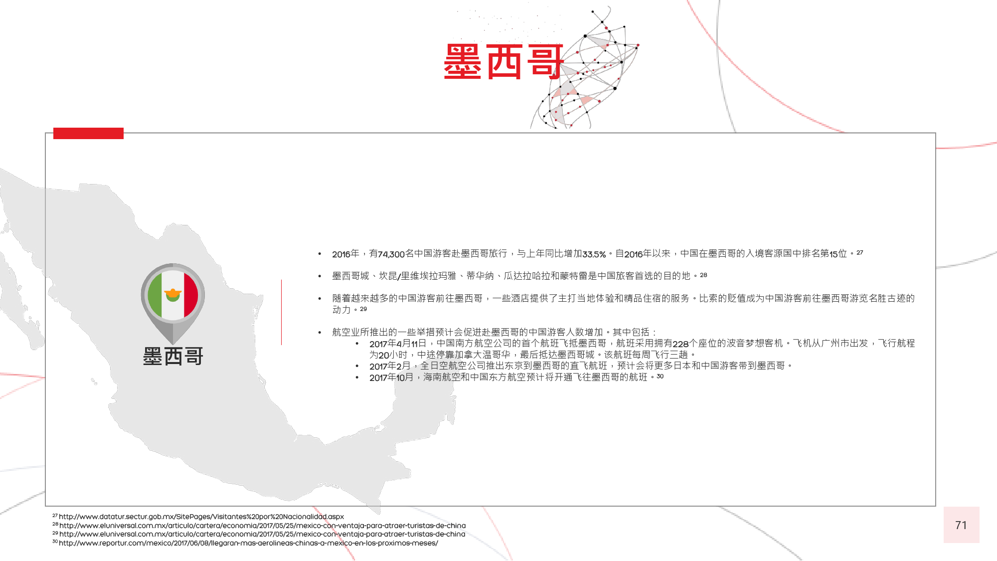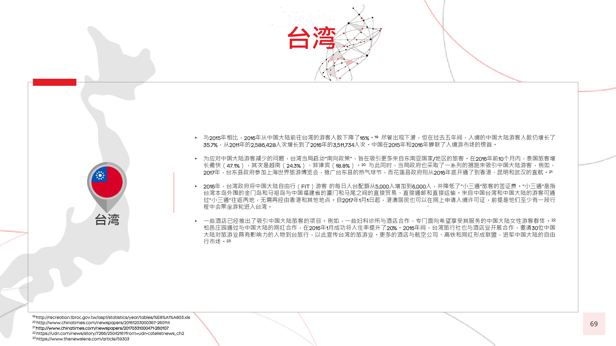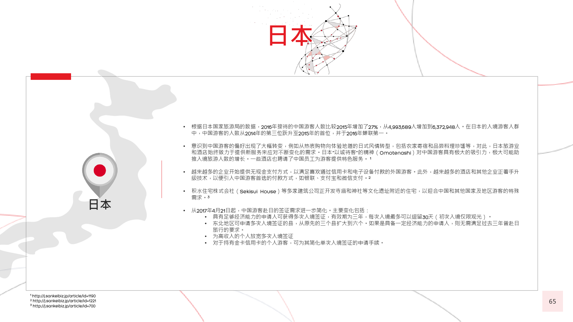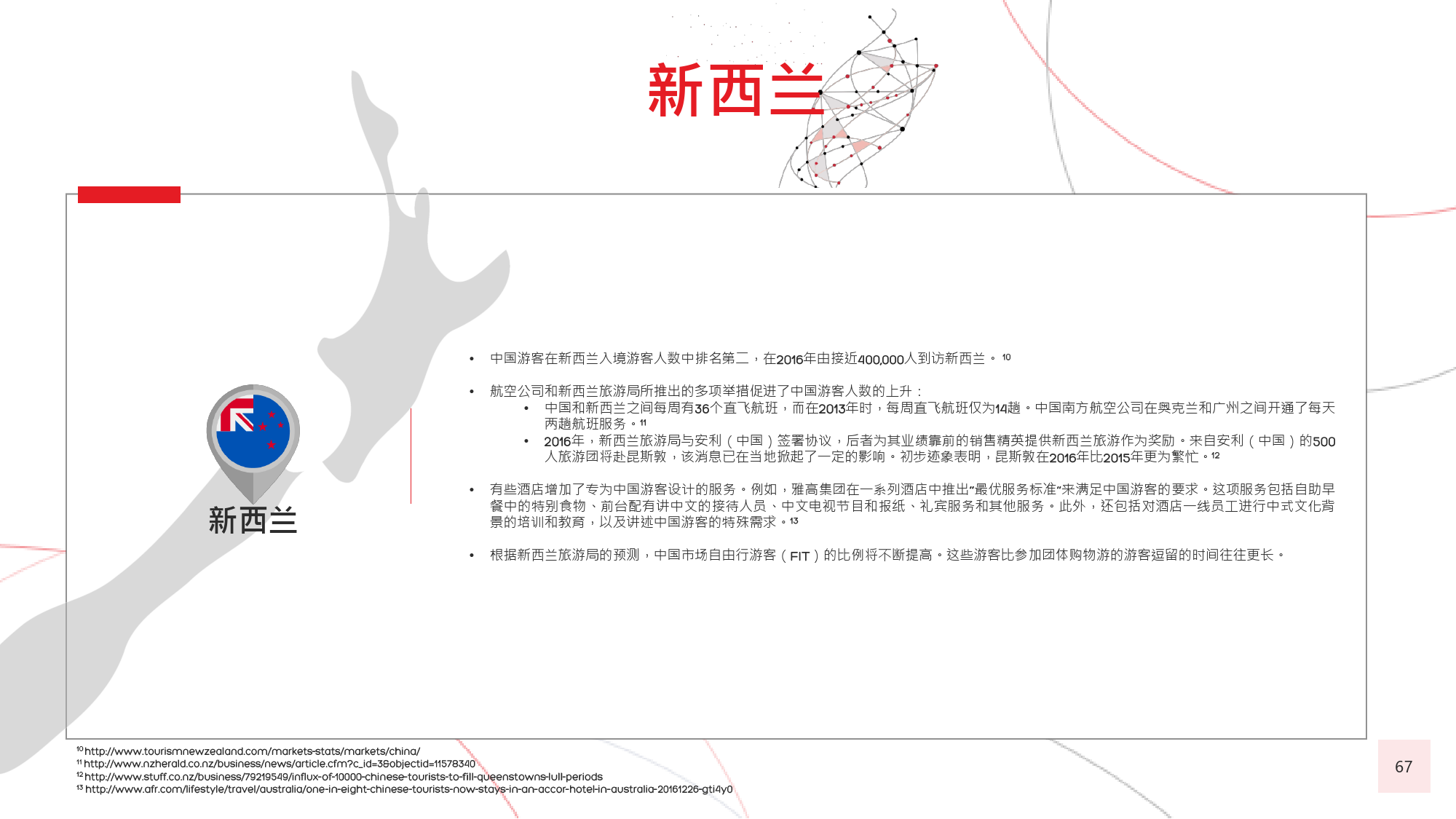 由于中国居民的消费水平日渐提高,全球很多国家放开 了对中国的签证政策,助推了中国出境游客人数的迅猛 增长。截至 年 月,与中国签署免签和落地签协议的 国家及地区已达 个,较上一年新增 个。包括美国、 加拿大、新加坡、韩国、日本、以色列和澳大利亚等在 内的国家及地区亦面向中国游客推出 年期多次入境签证。