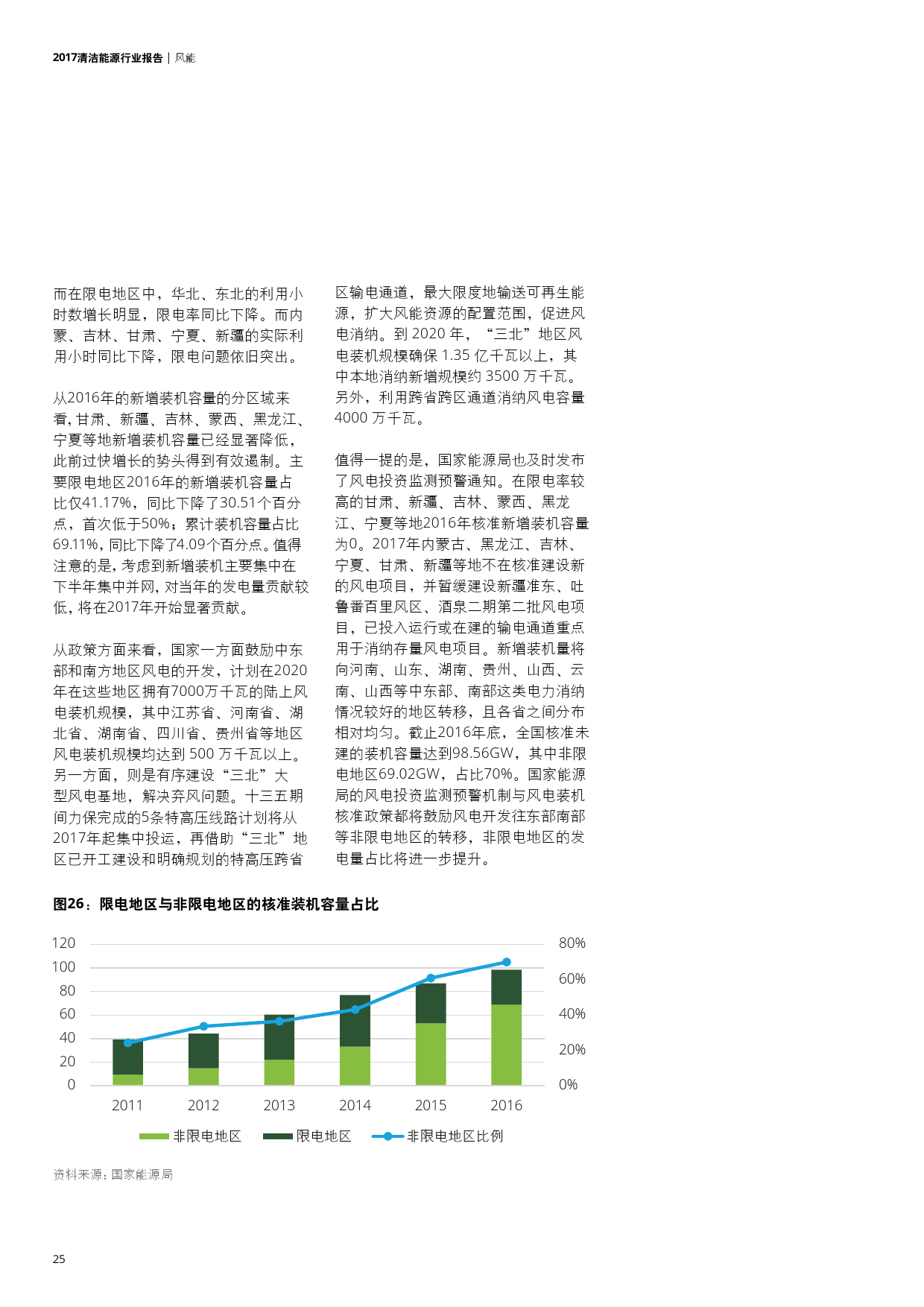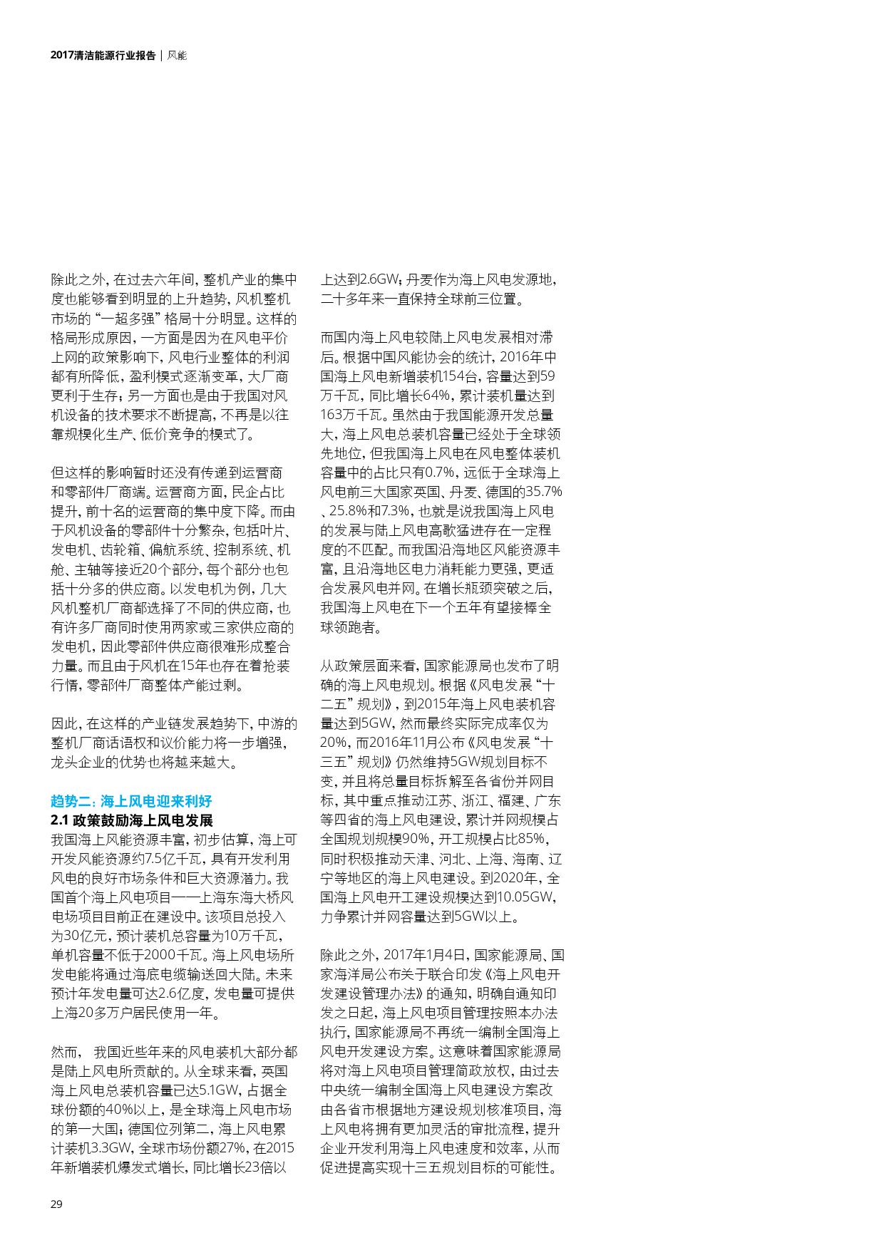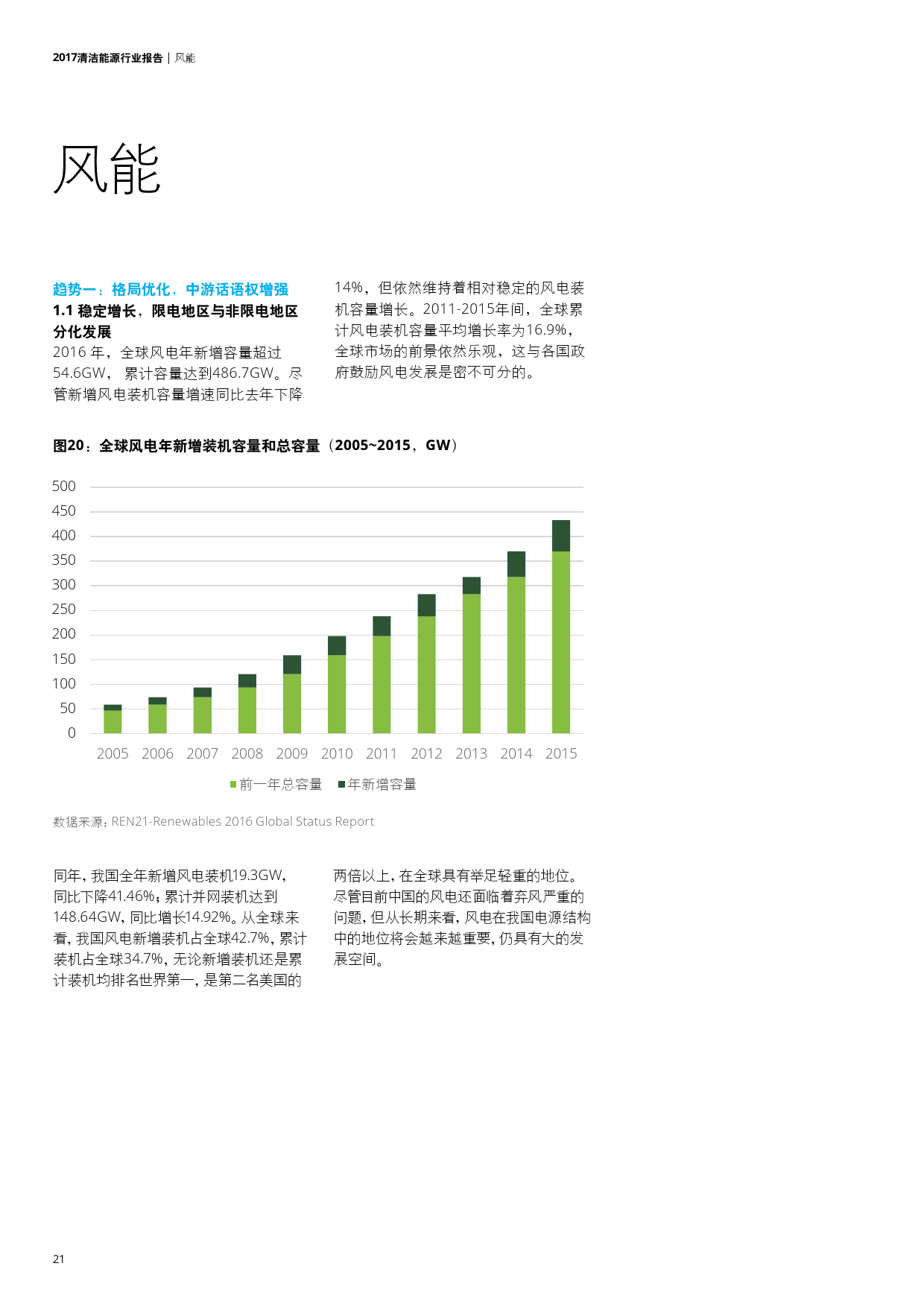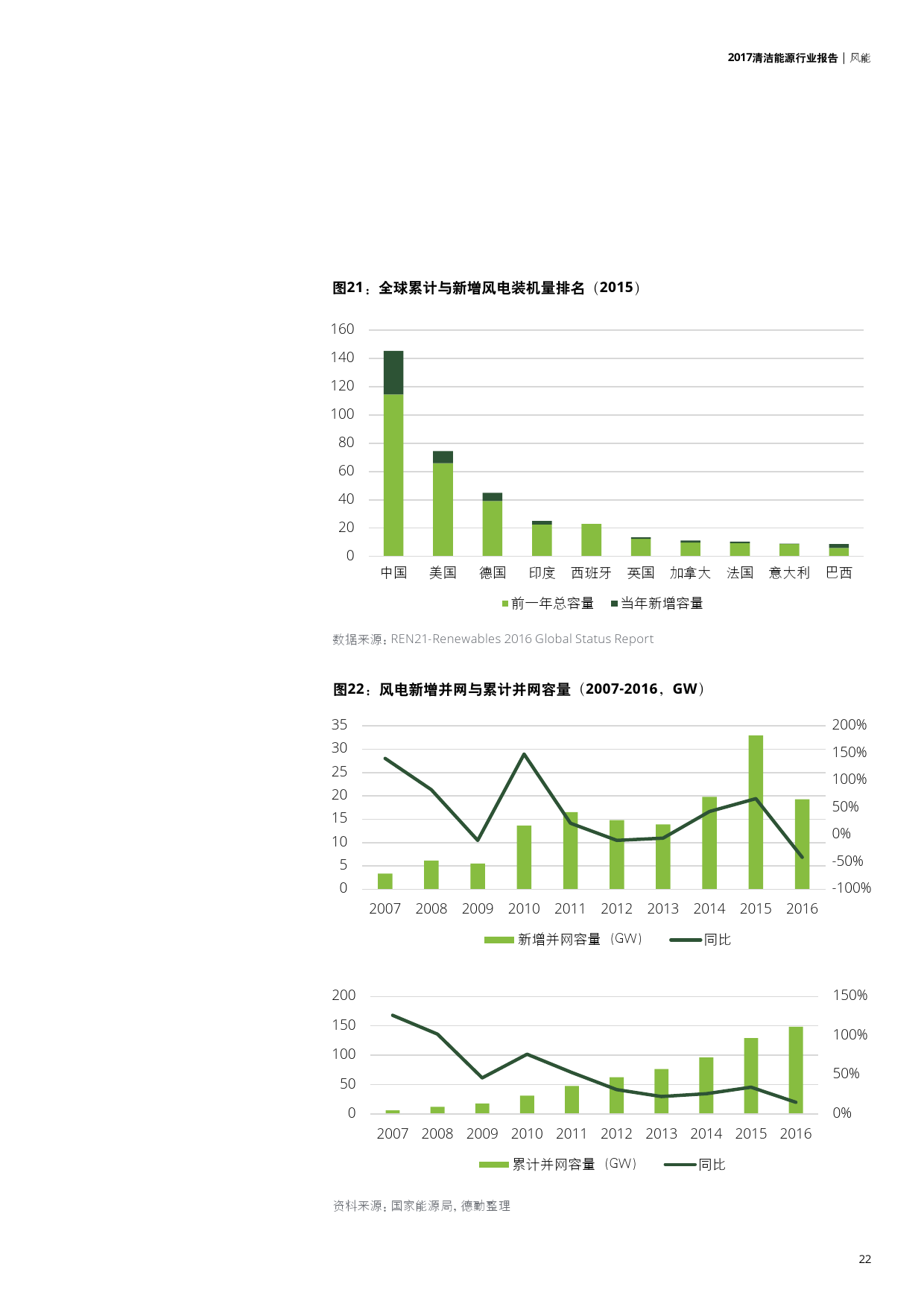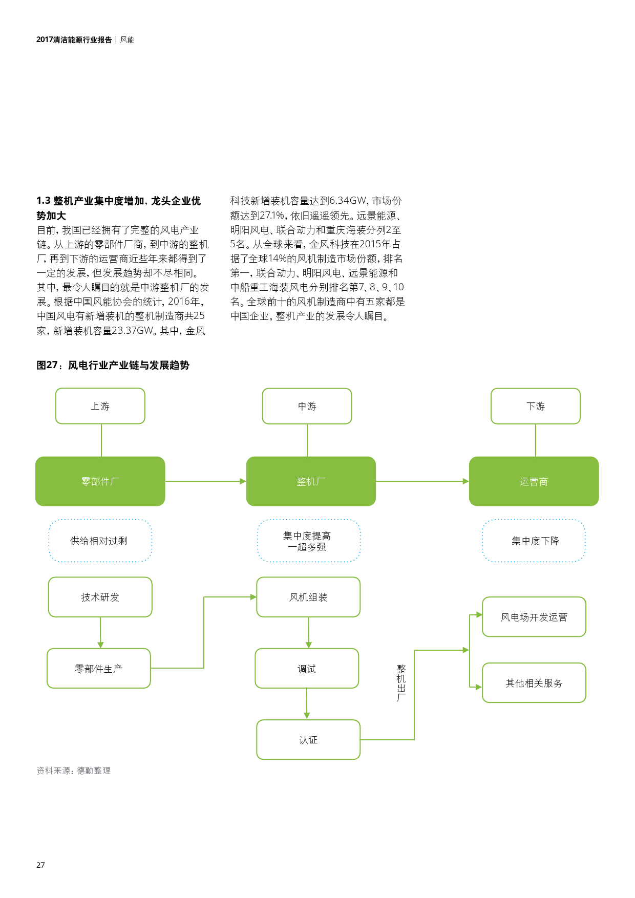 全球风电装机容量稳定增长,2016年累计容量达486.7GW;限电地区与非限电地区分化发展,格局得到优化;风电产业链不断发展,中游整机厂商话语权和议价能力进一步增强。