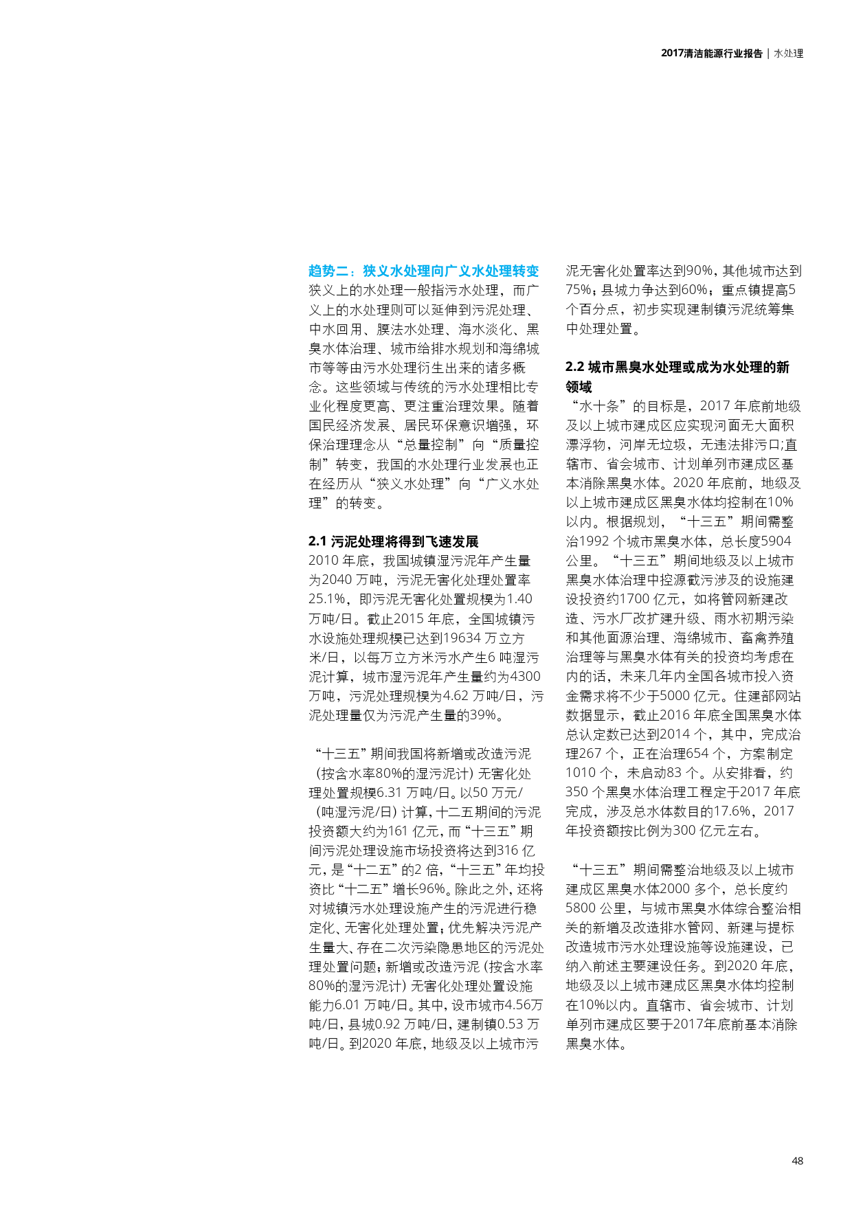 狭义水处理向广义水处理转变,污泥处理、城市黑臭水处理将得到发展。