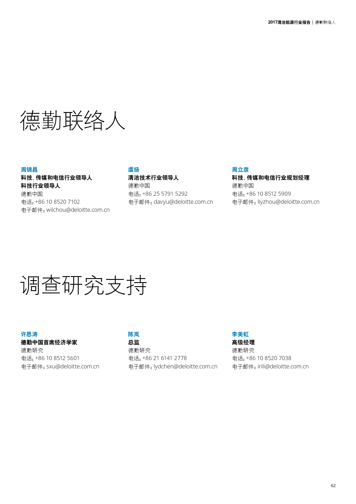 《2017清洁能源行业报告》由德勤科技、传媒和电信行业及德勤研究团队联合编纂。该报告着重研究了清洁能源领域的发展前景,囊括了太阳能、风能、新能源汽车、固废处理、水处理和节能环保新科技等六个清洁能源行业,并就其产业现状、发展机遇与挑战以及产业趋势进行了解读。