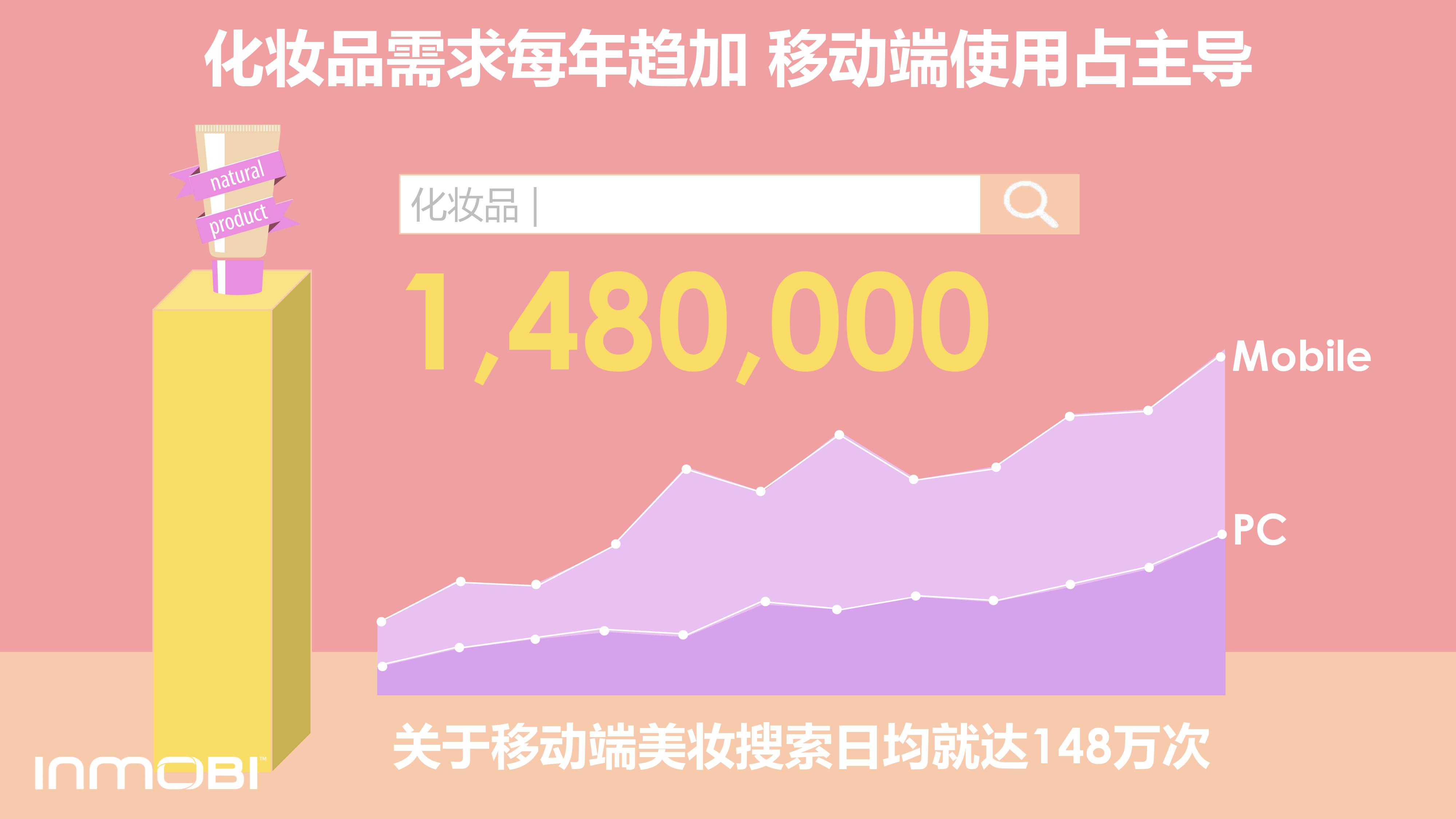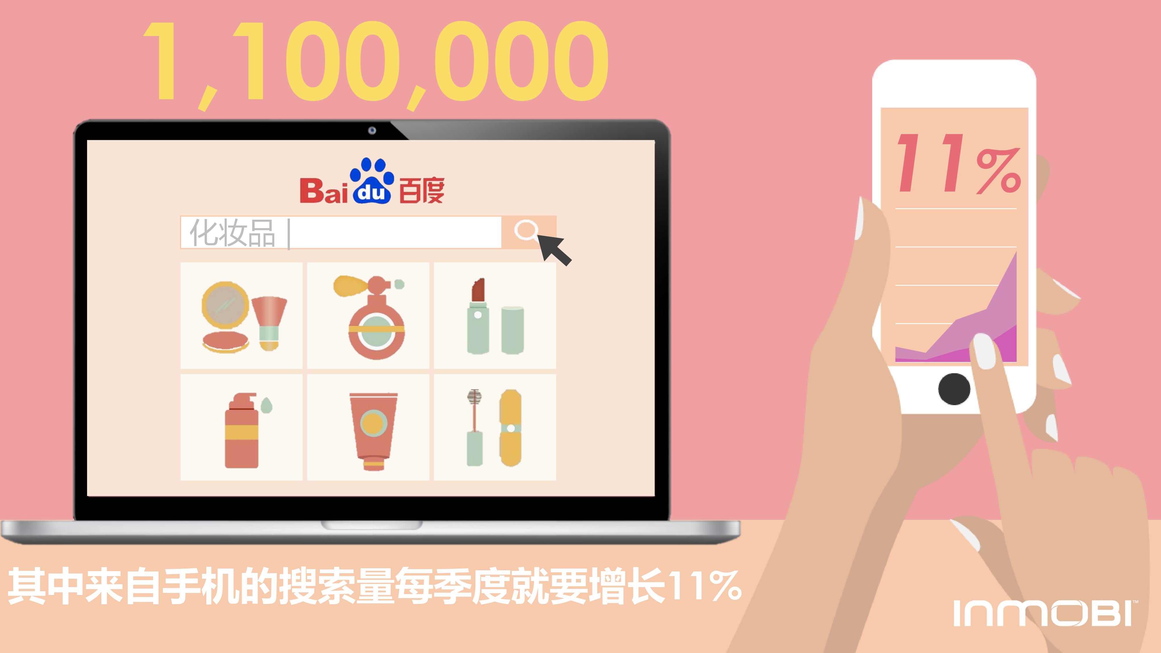 化妆品需求也因此得到了极大的带动,目前用户在移动端搜索化妆品日均就已达到了148万次,其中来自手机的搜索量每季度就要增长11%,在搜索渠道中占据了主导。