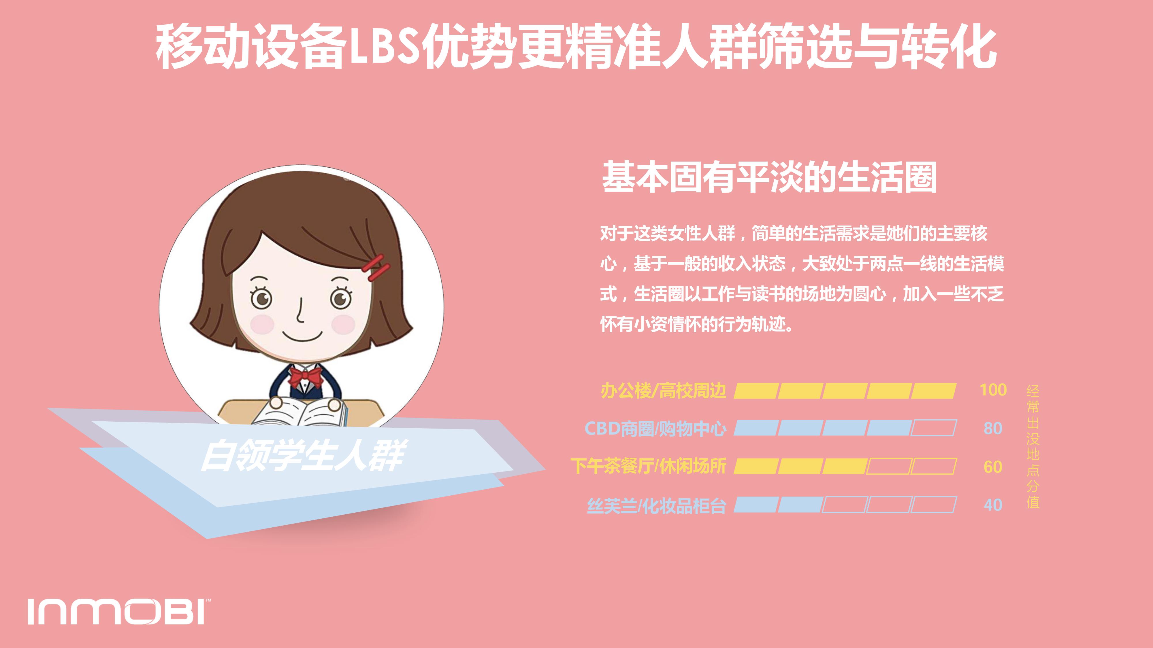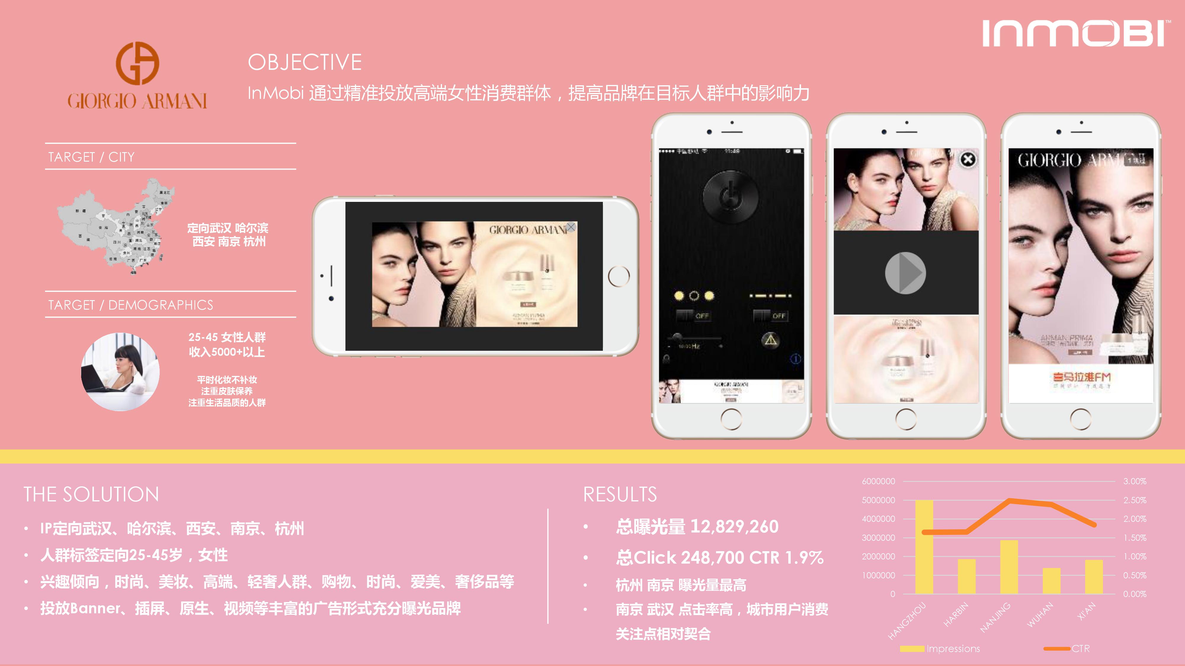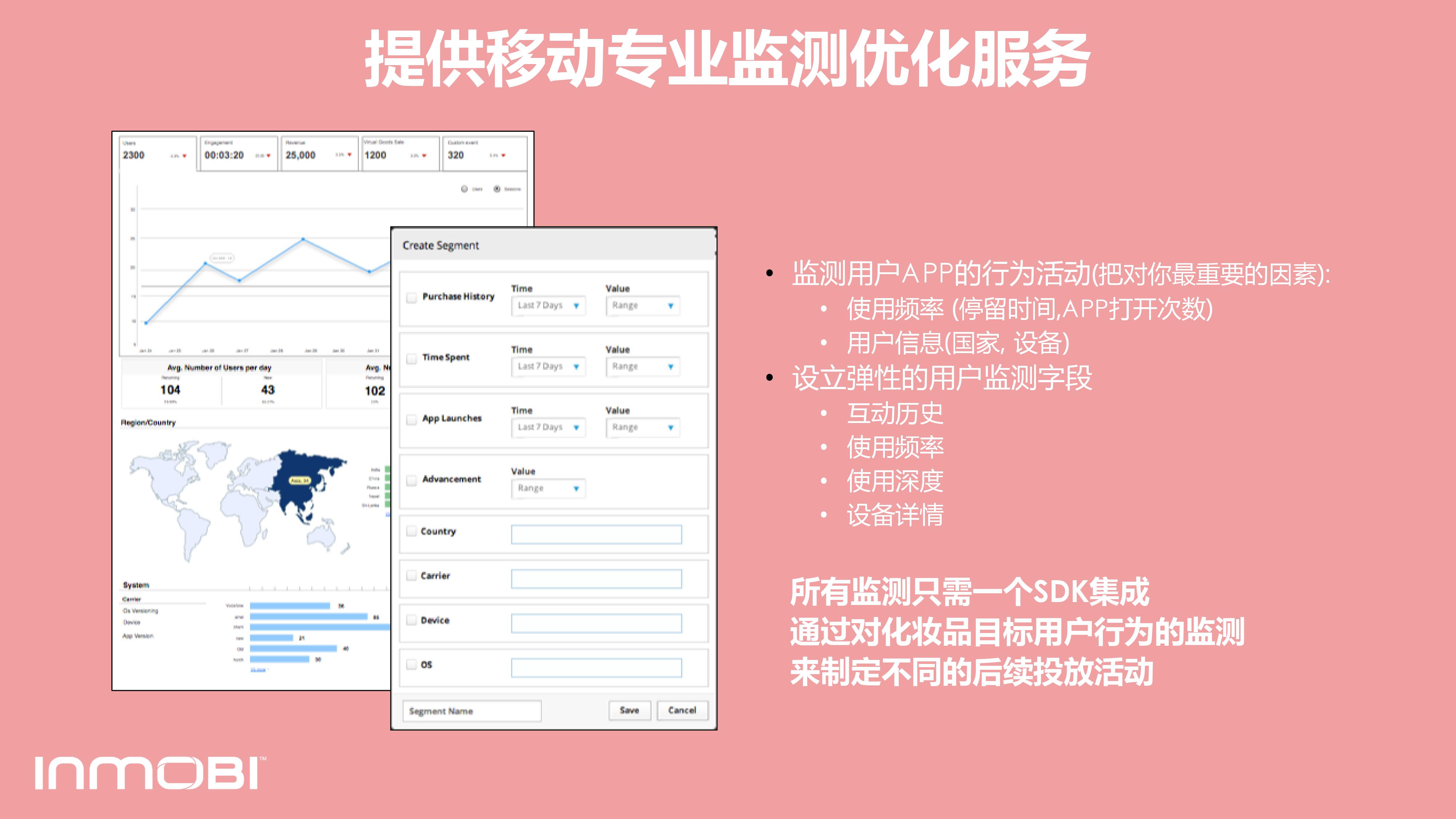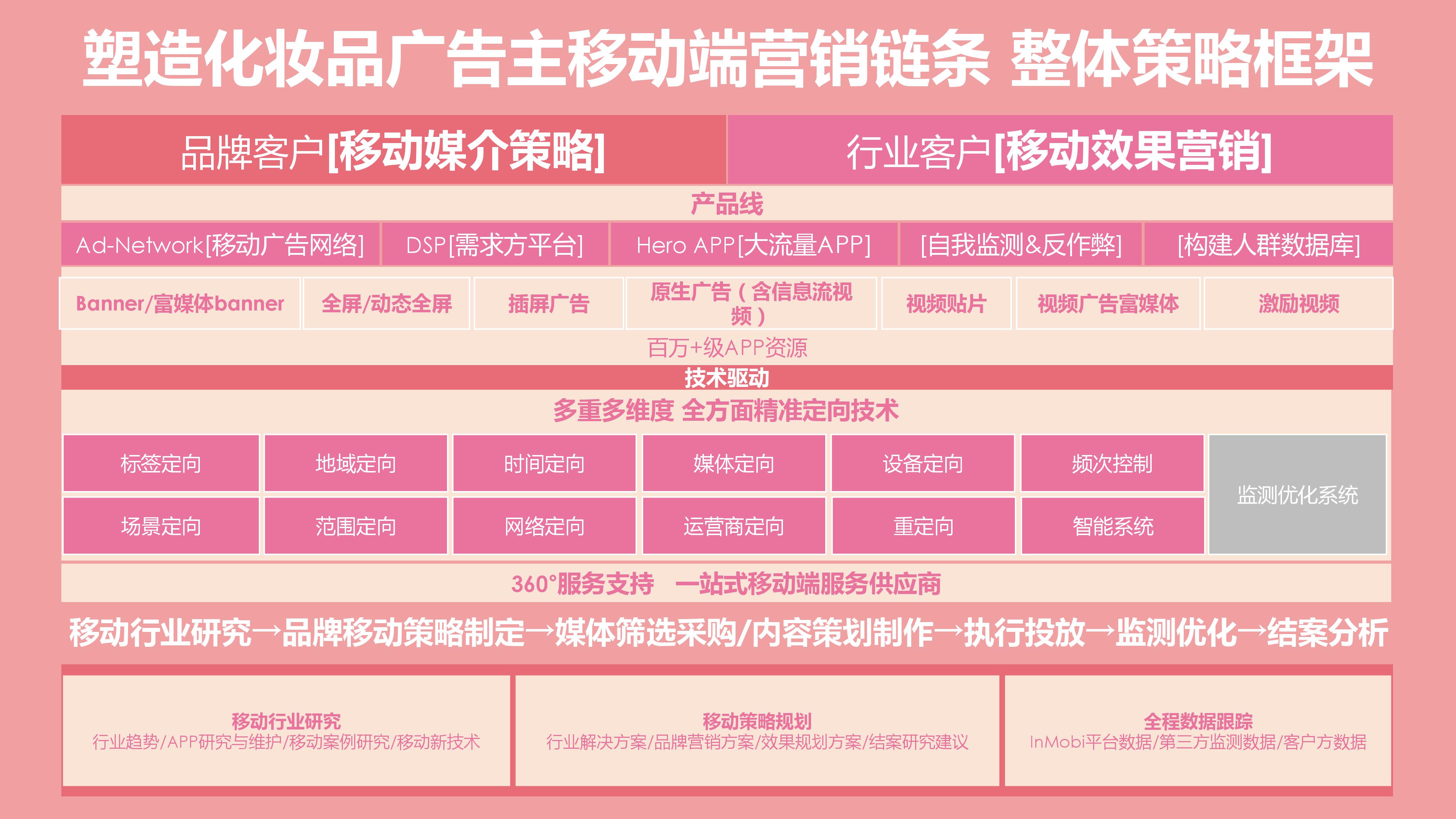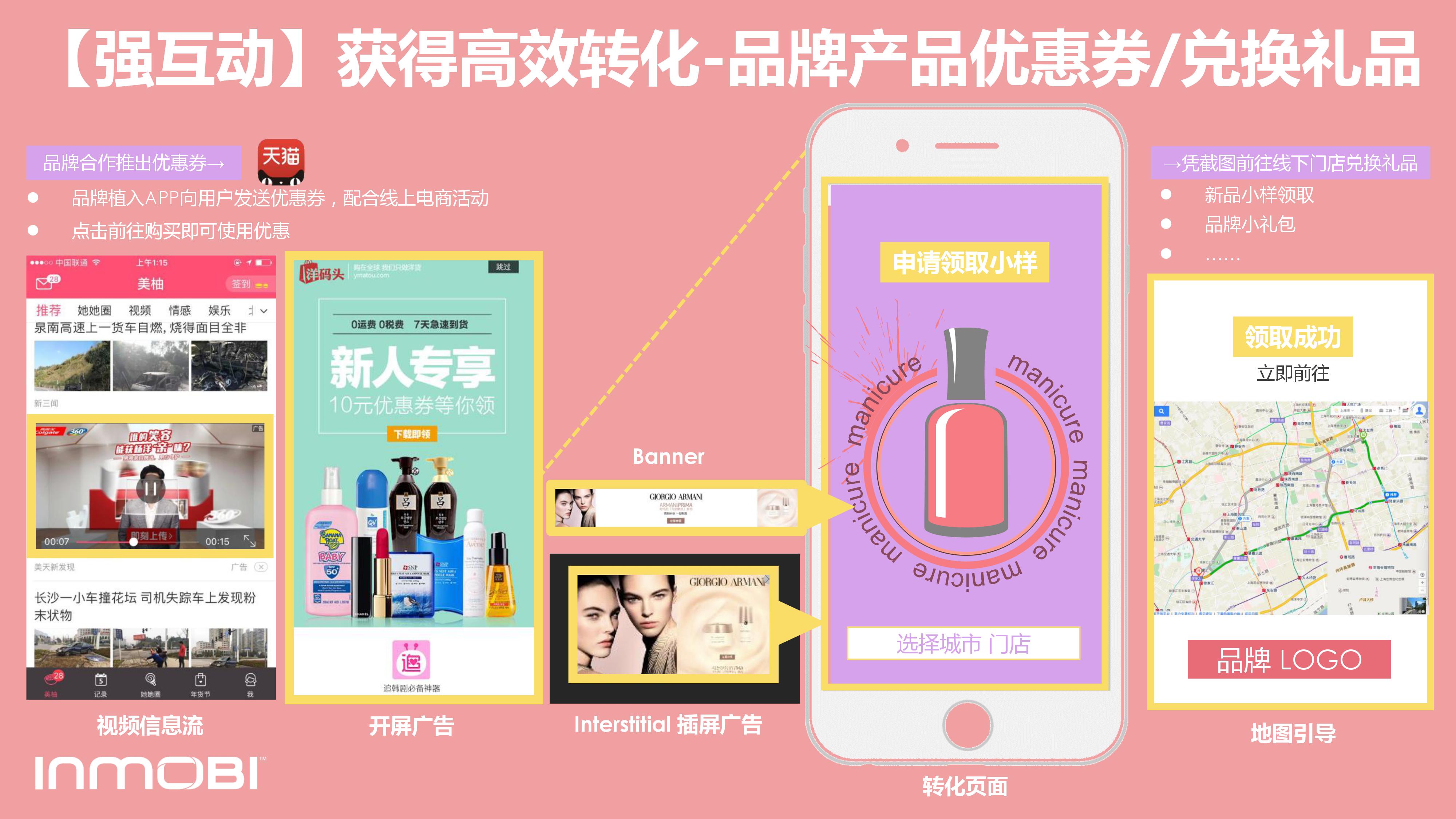此外,InMobi还将利用庞大的媒体矩阵,进行移动媒体优势产品组合,为用户提供差异化、高度定制的沟通内容,从而更有效地影响化妆品用户,提升移动整合营销传播结果。同时,从移动设备中抓取有即时需求的关键字搜索人群进行投放,满足其即时需求,促进转化。