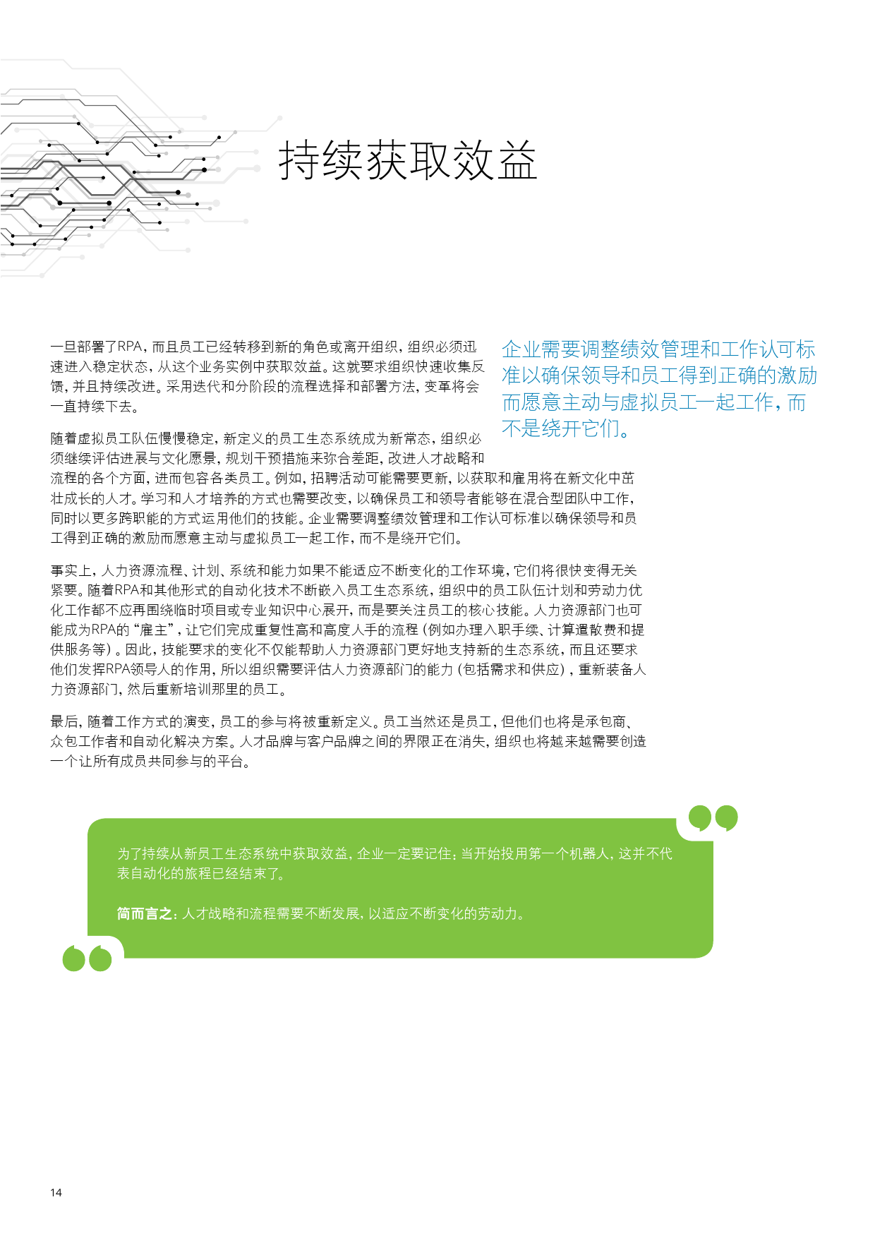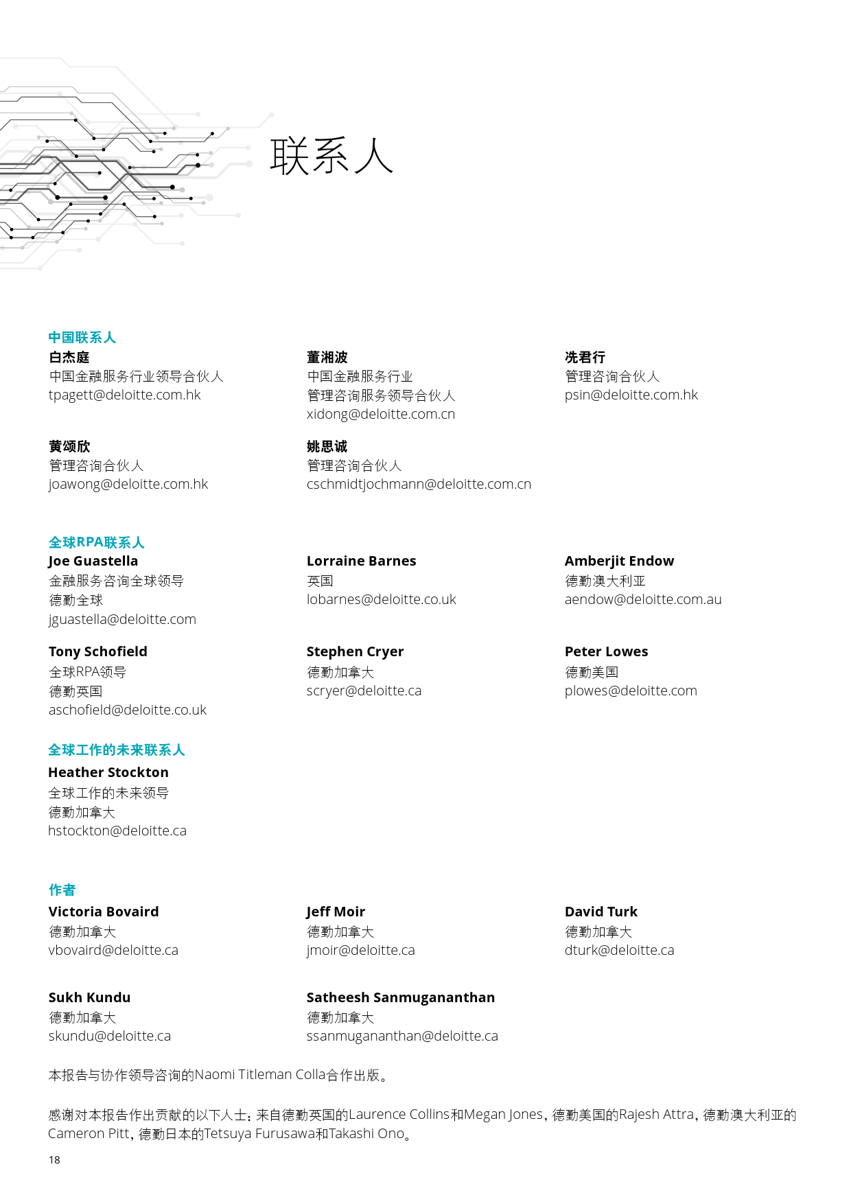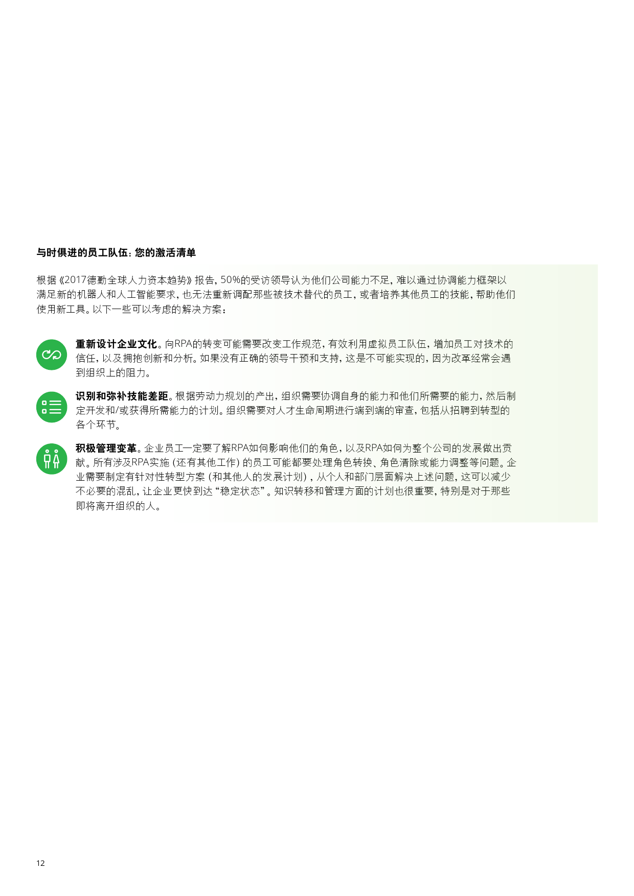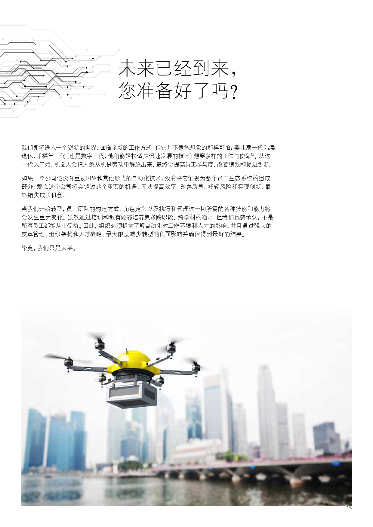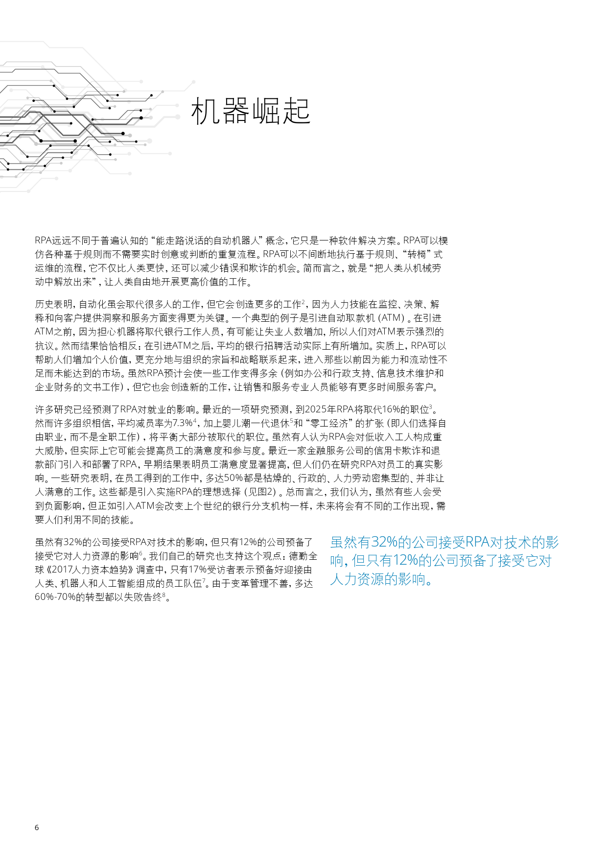 本报告勾划了在机构部署RPA的路线图,报告又指出未有把自动化纳入人力资源全局考虑的企业将会面临错失提升效率和质量,减轻风险和推动创新和增长的机遇。