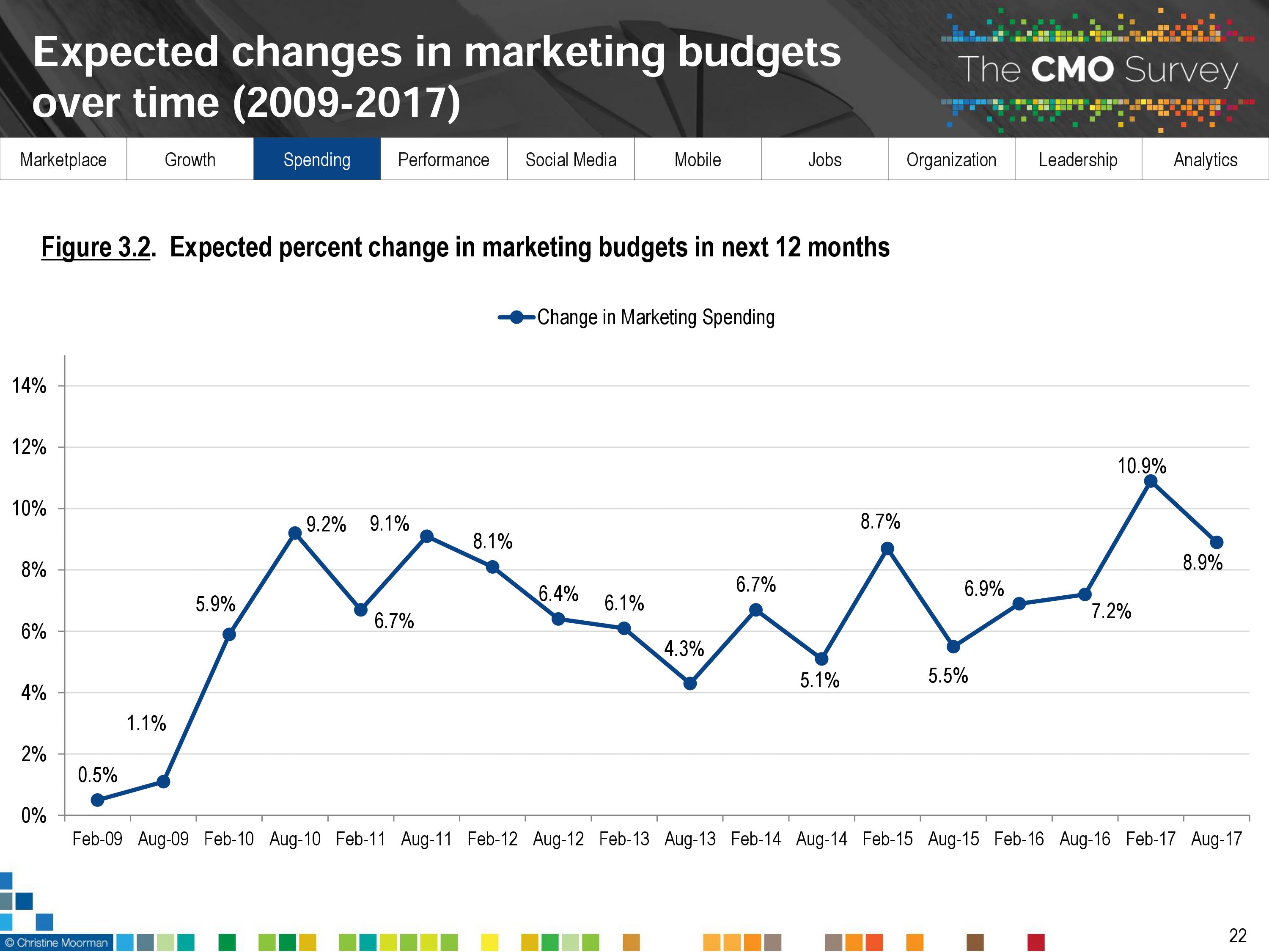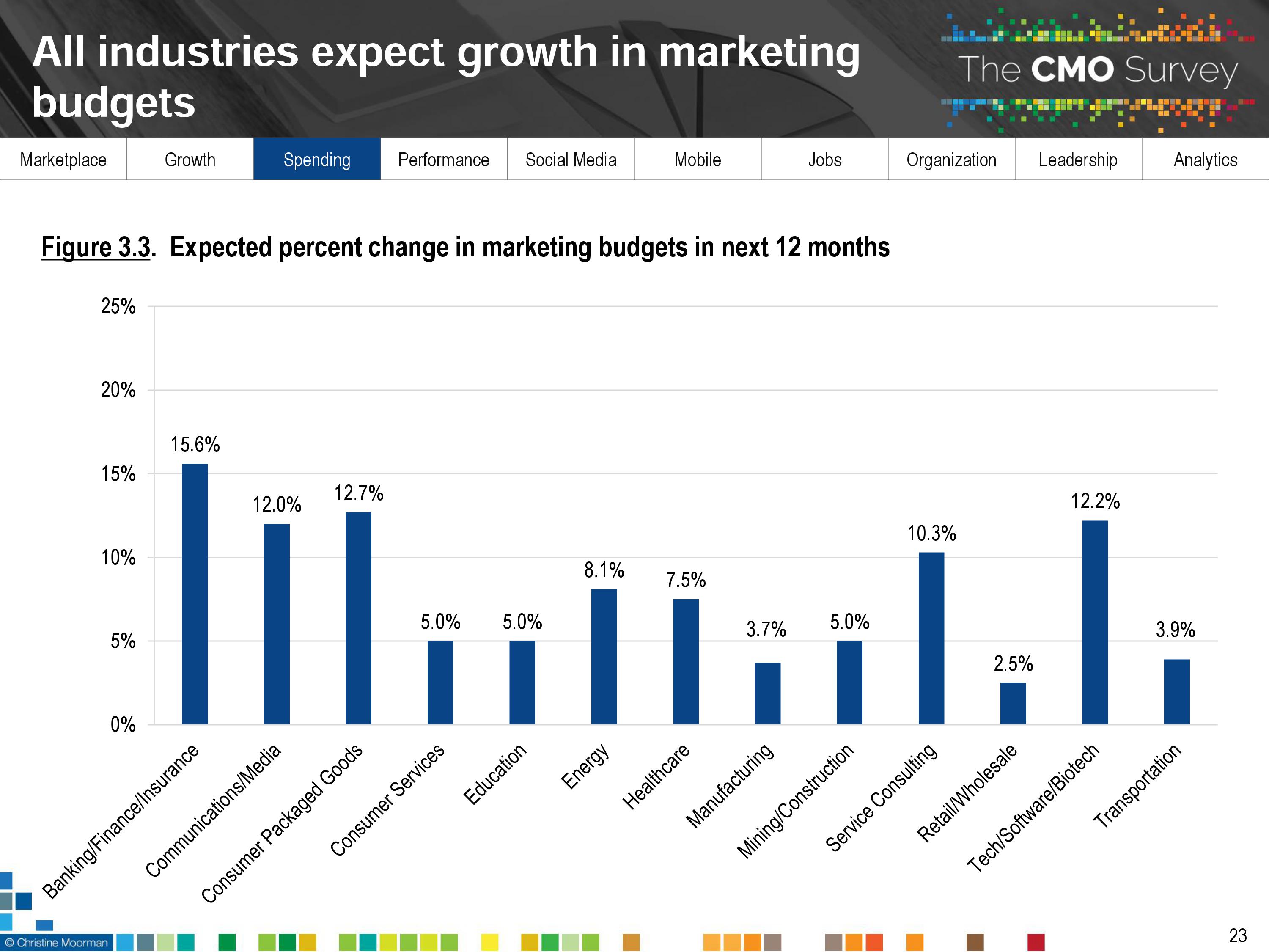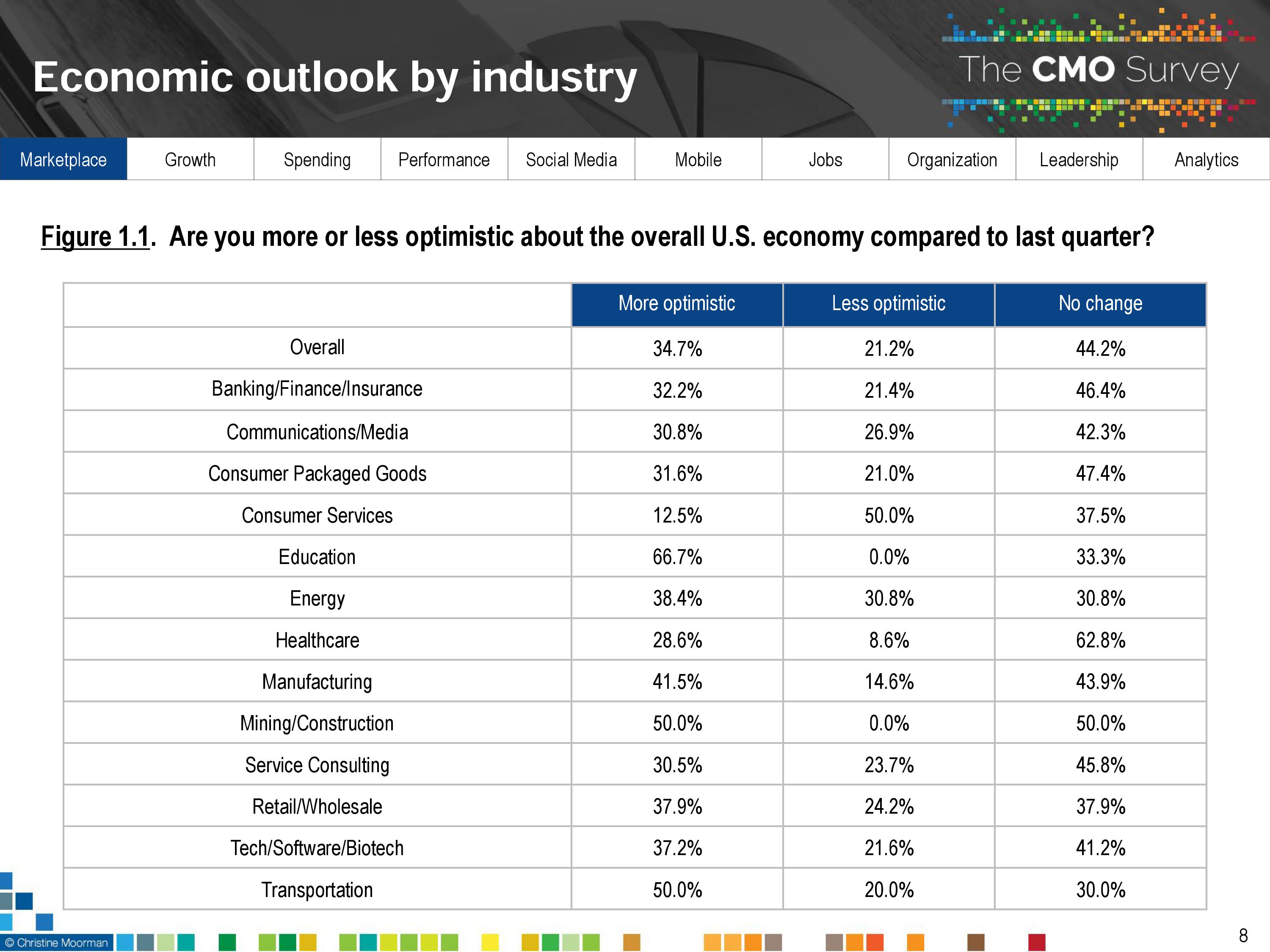 要想成为一个高效的CMO(首席营销官),在业务增长计划中起重要作用,而且还要证明营销的价值。杜克大学调查了美国盈利企业的顶级营销人员,并发布了最新的CMO调查报告。