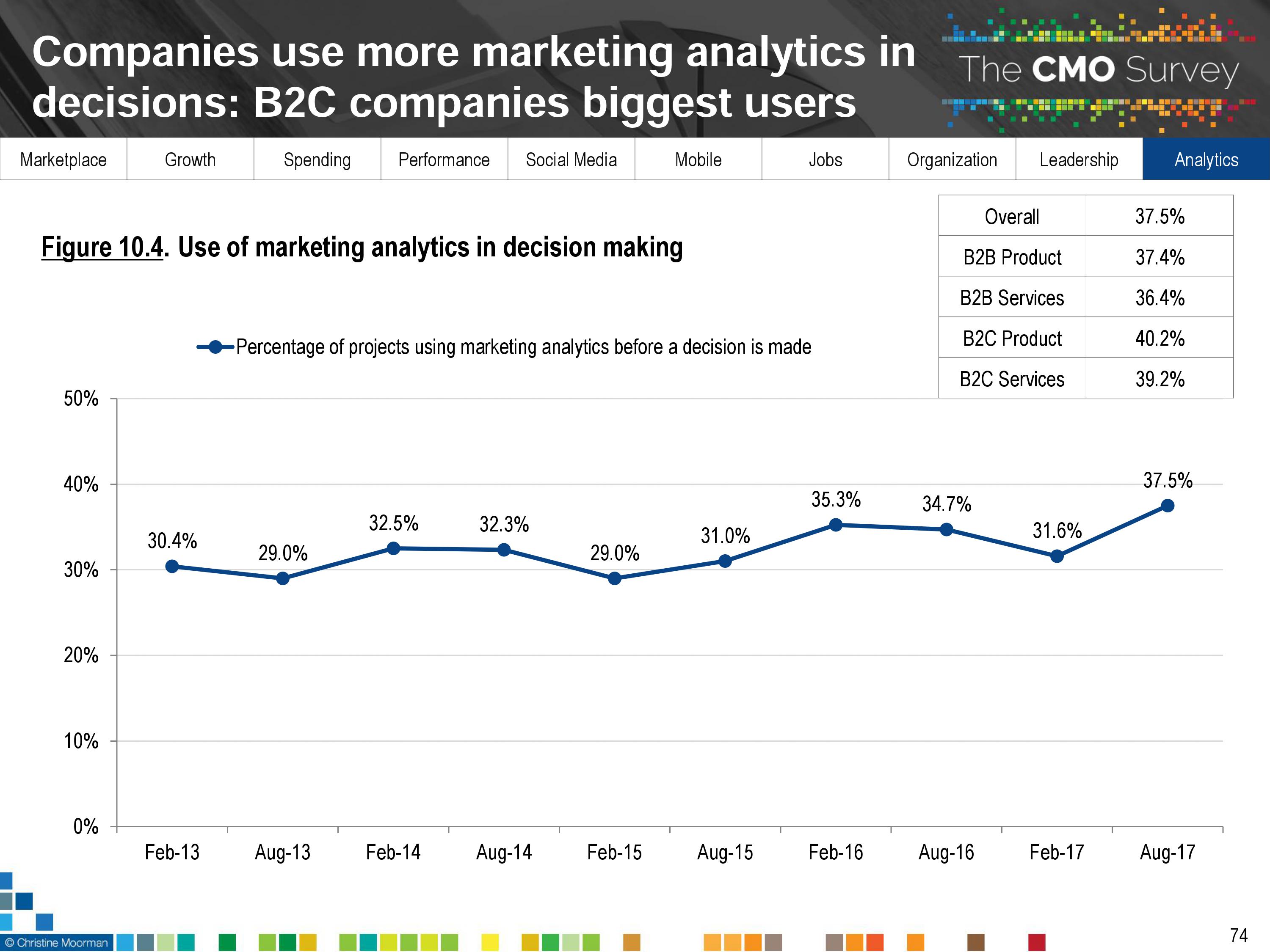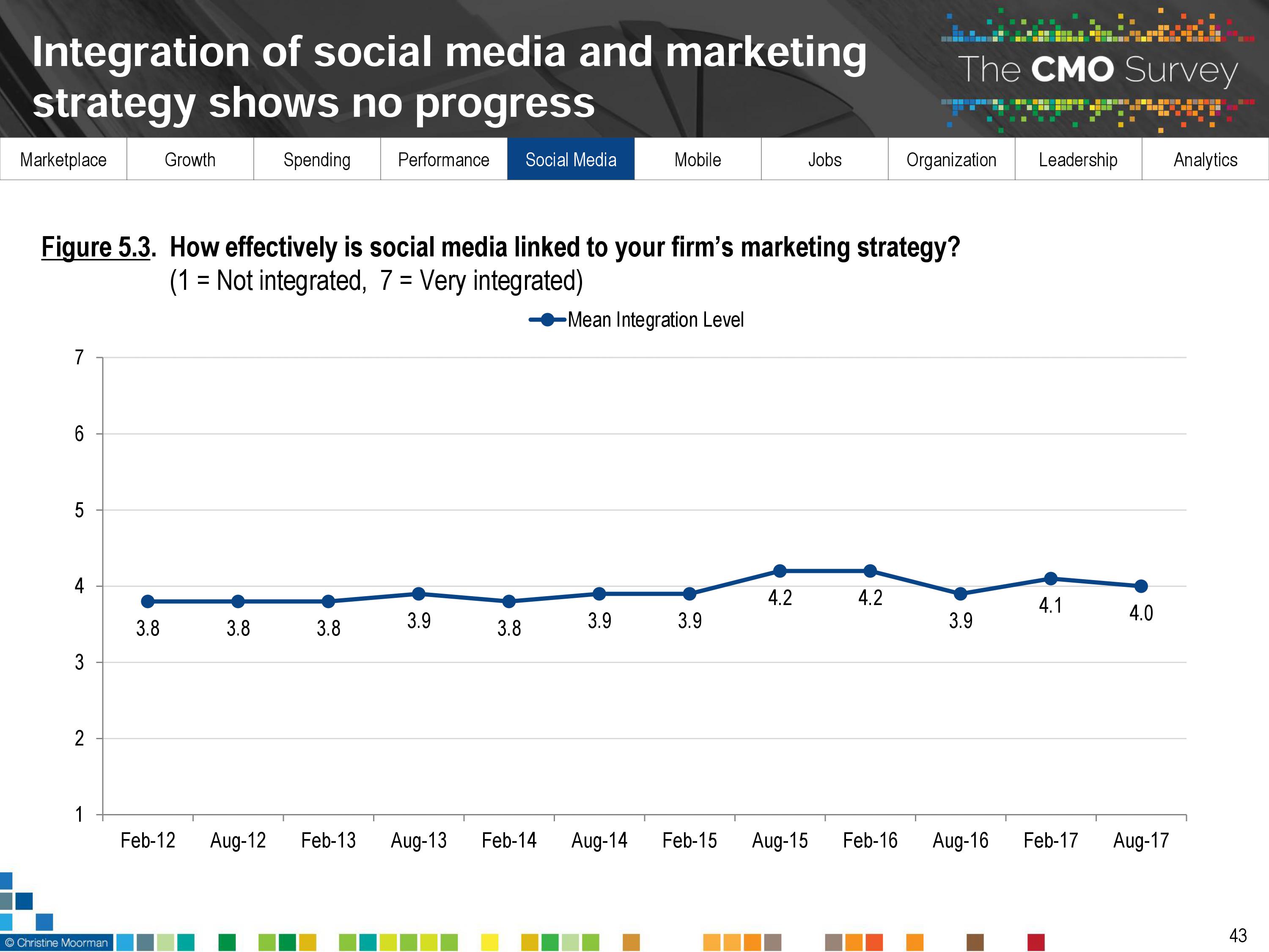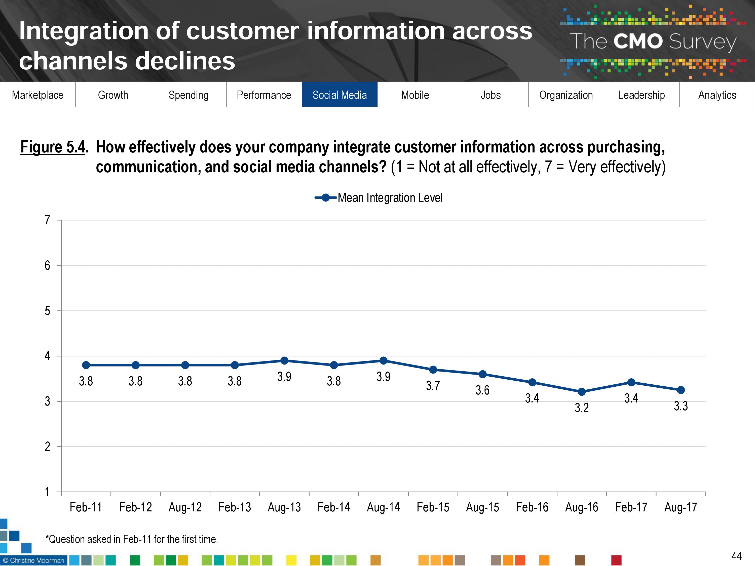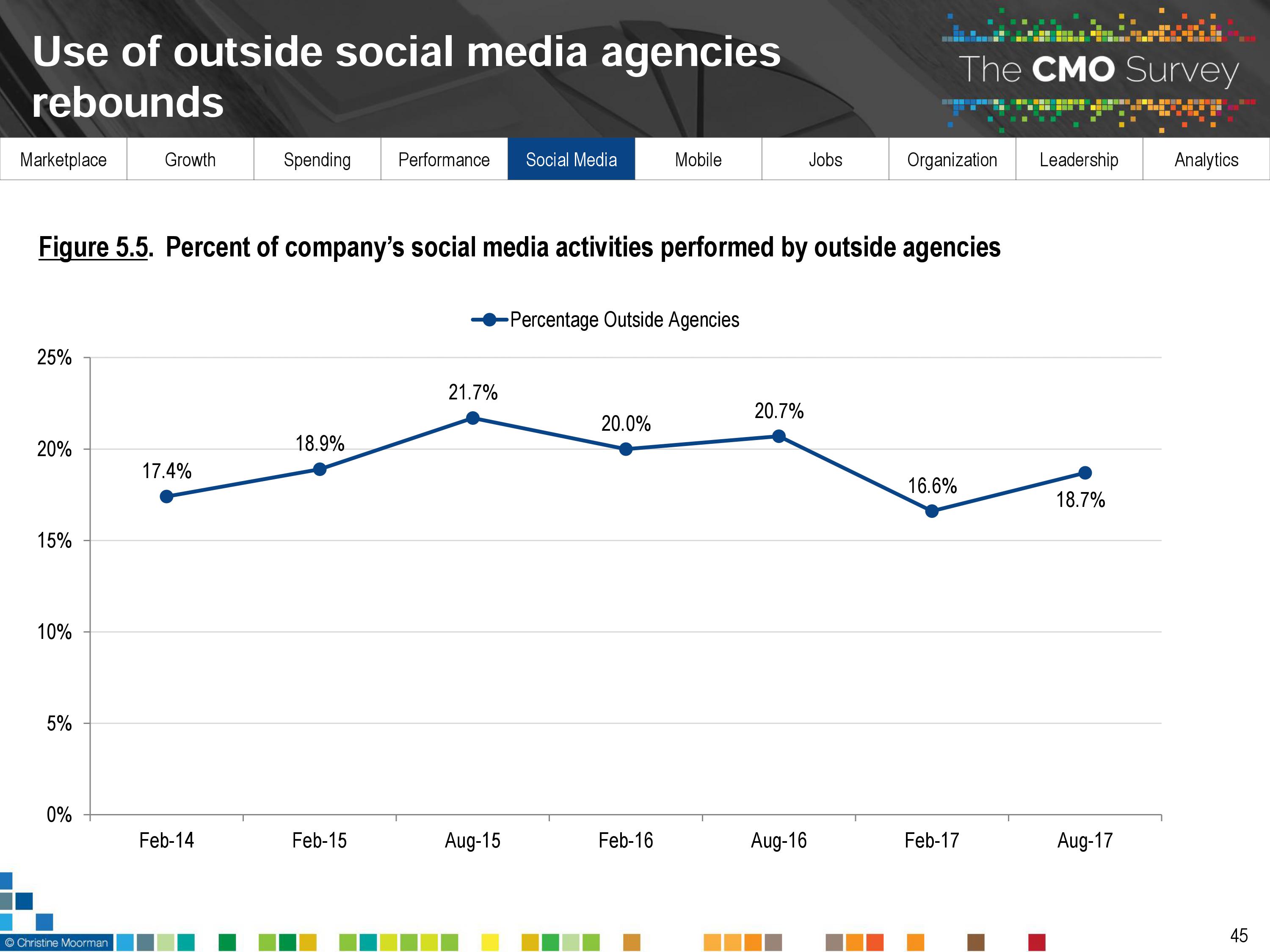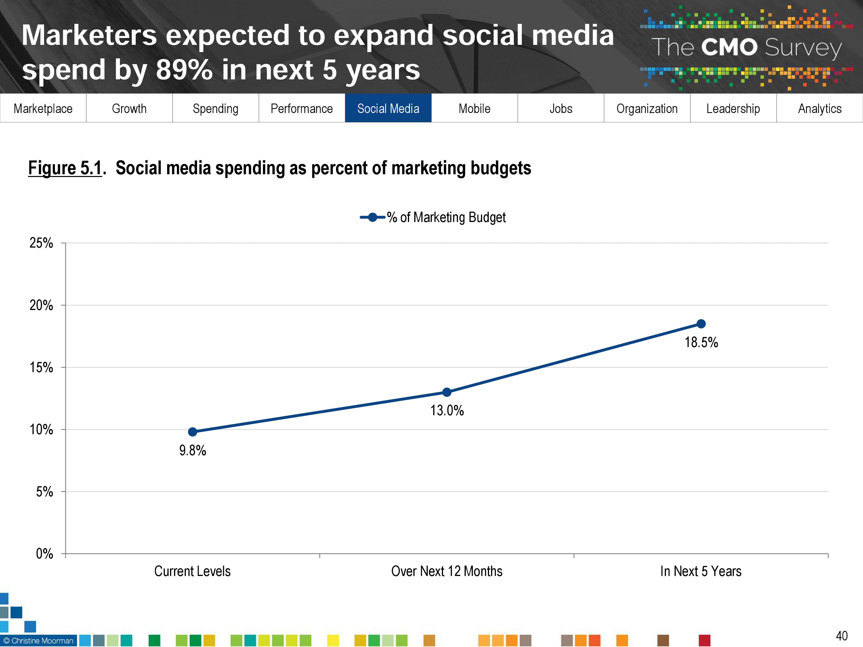 还有38.2%的CMO能通过量化证明营销支出的长期影响,这个指数在2013年的调查中只有31.7%。