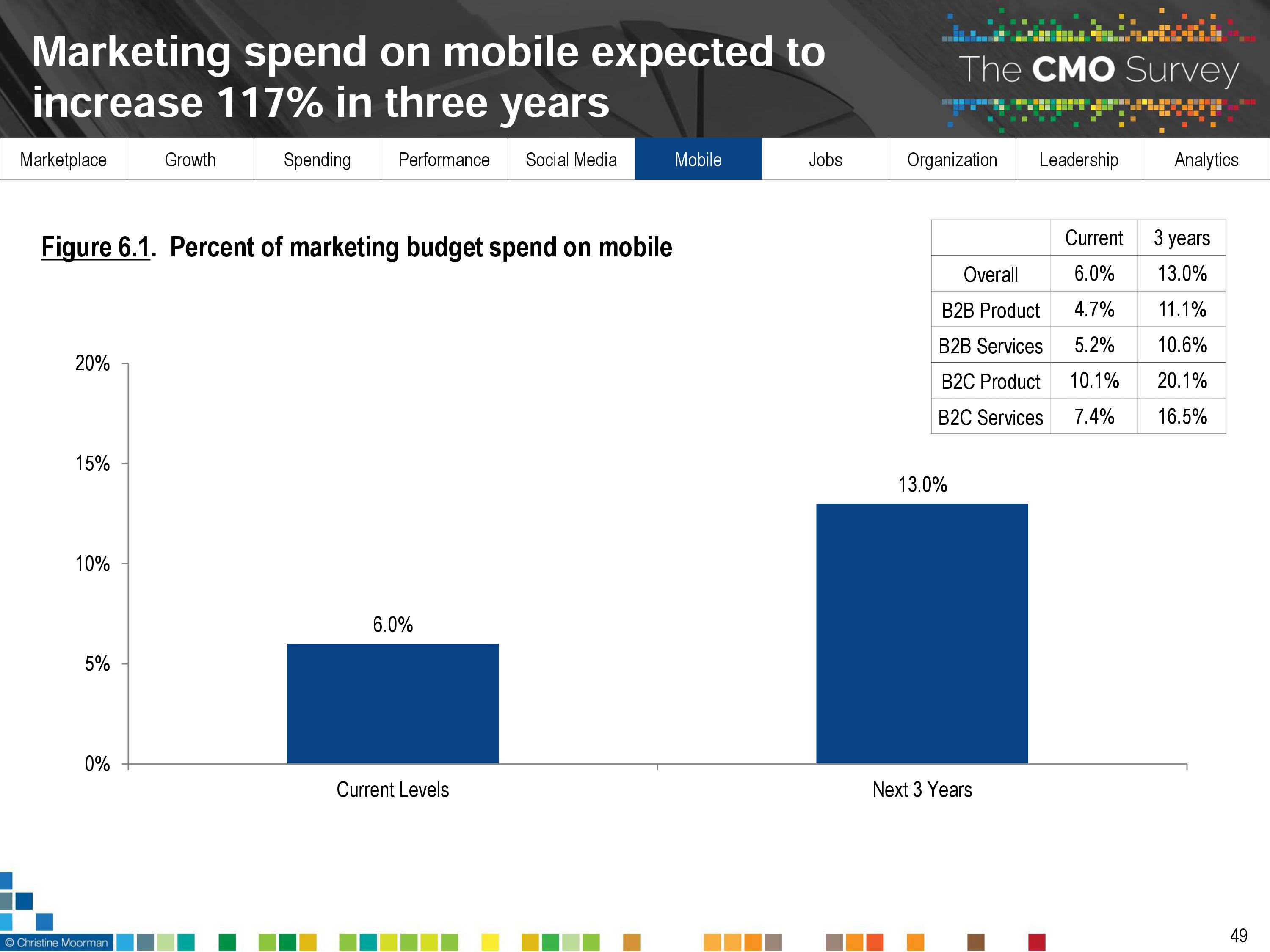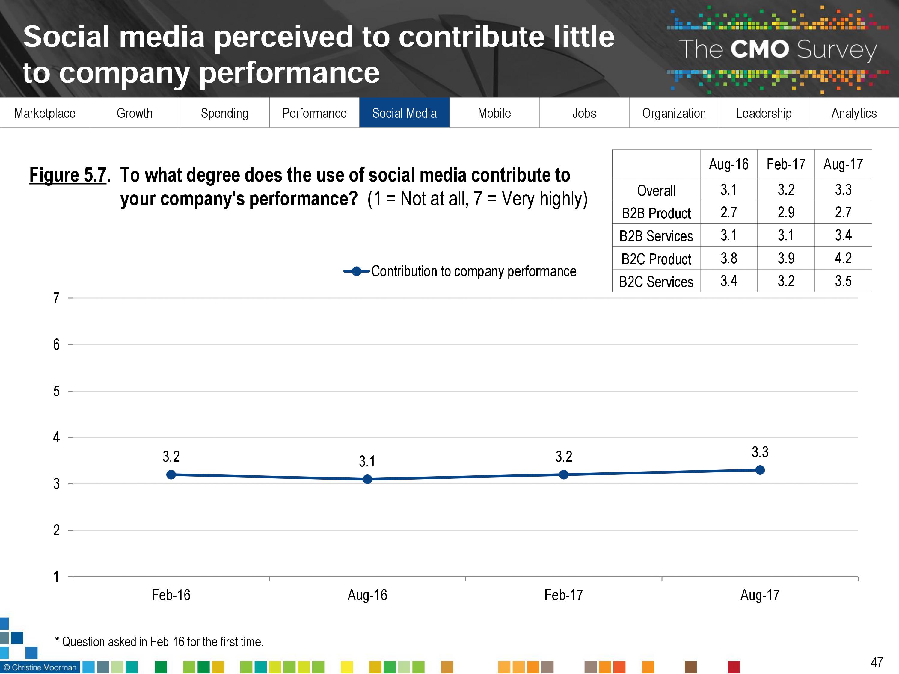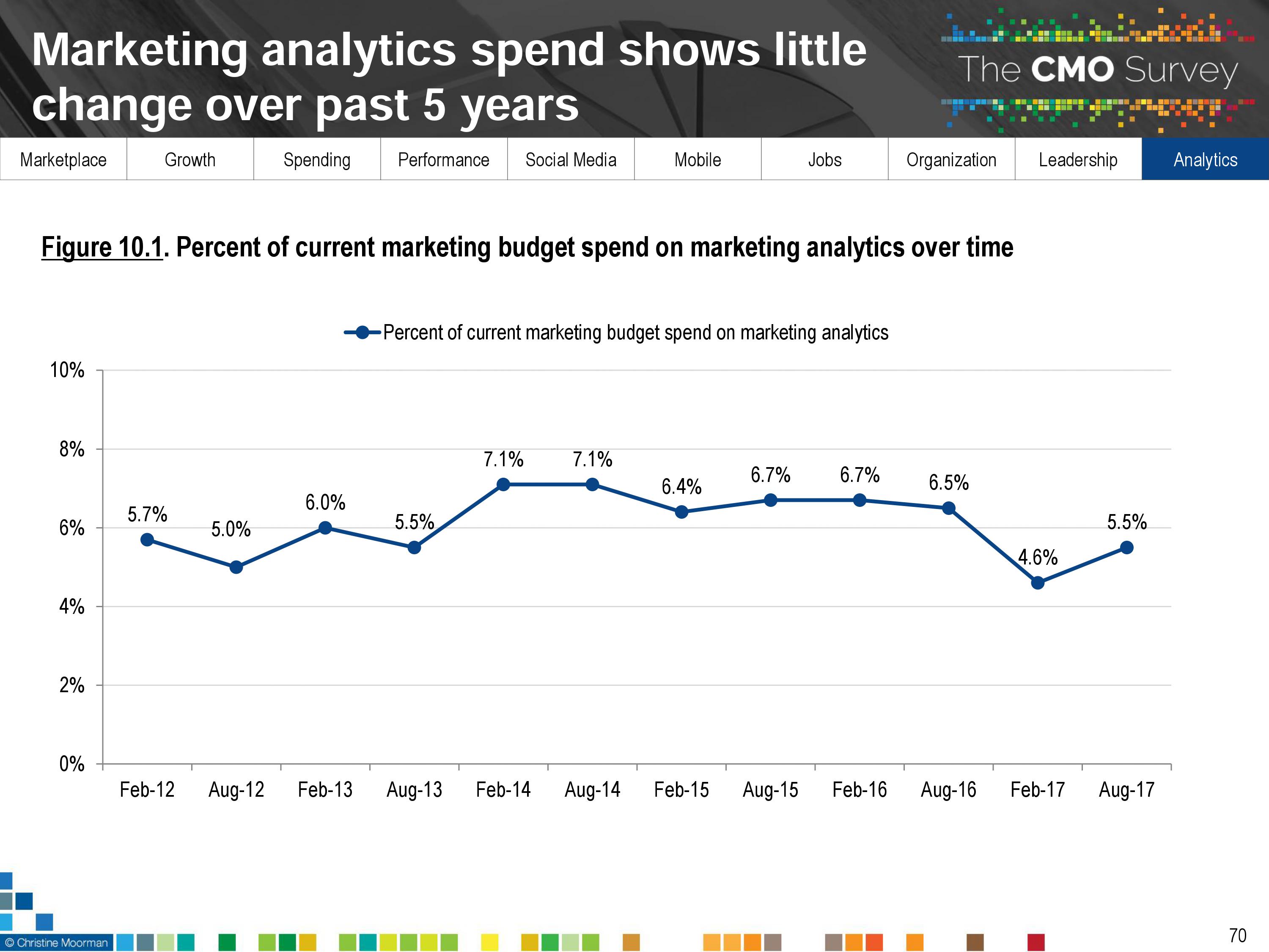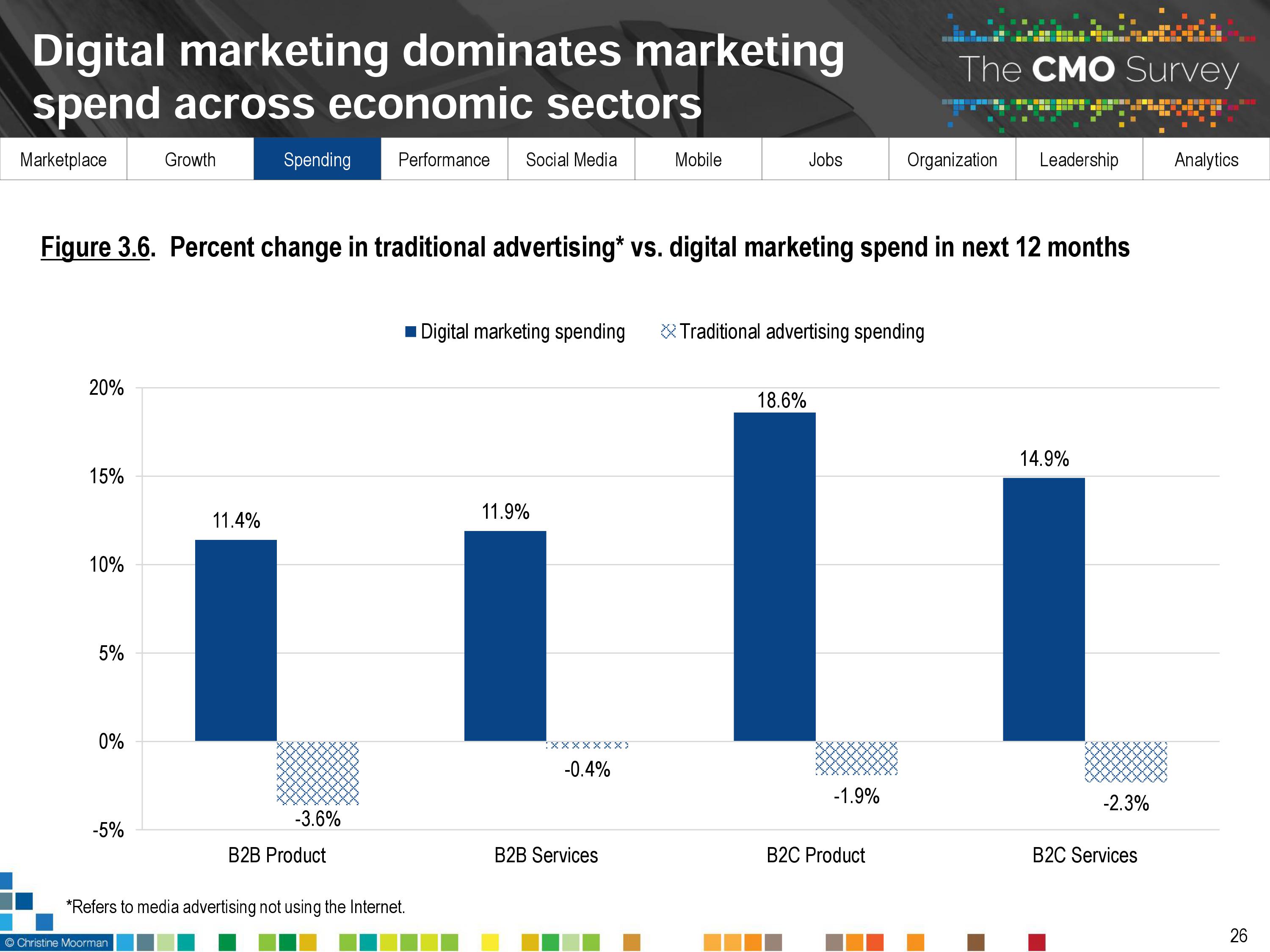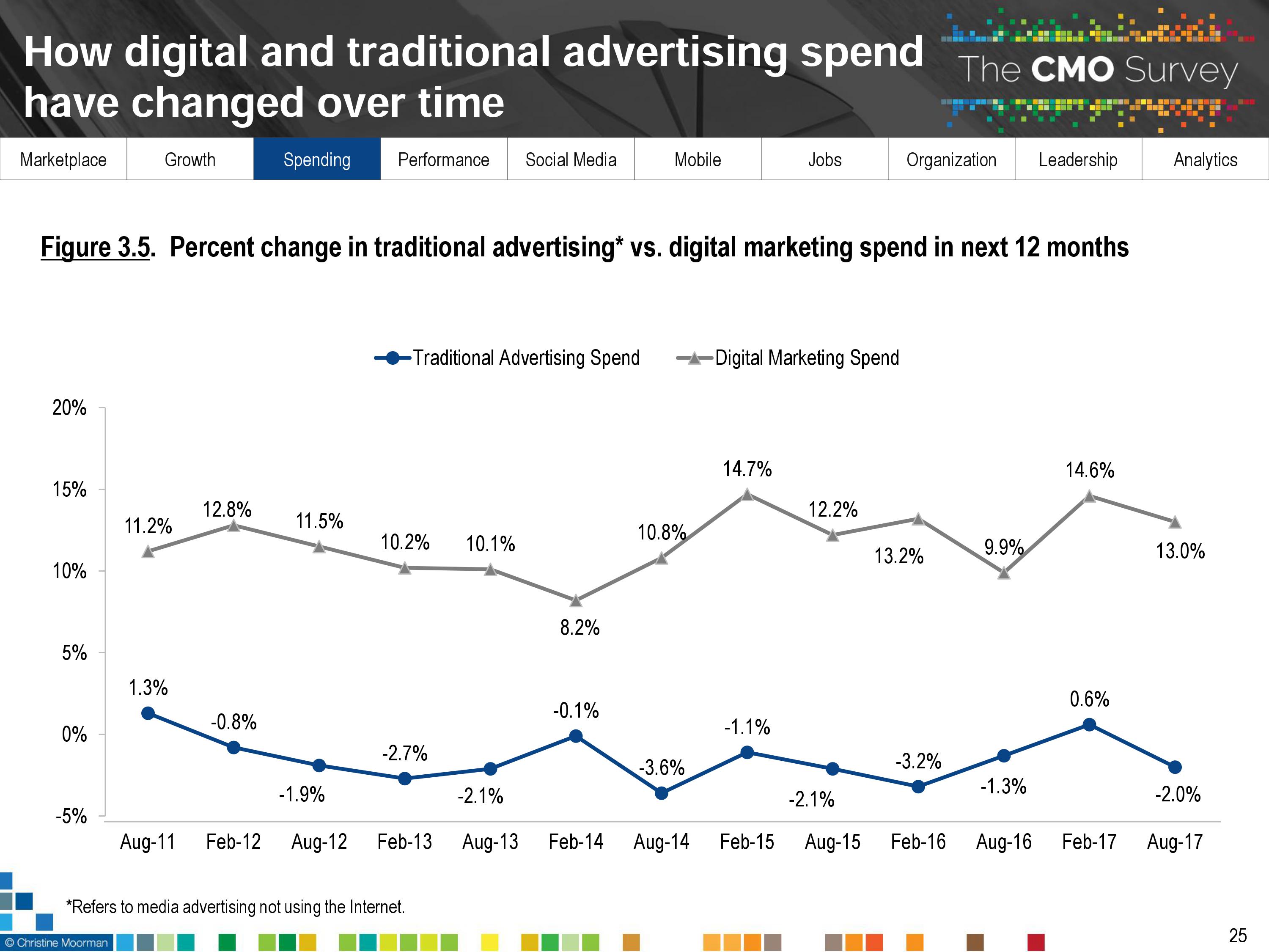 还有38.2%的CMO能通过量化证明营销支出的长期影响,这个指数在2013年的调查中只有31.7%。