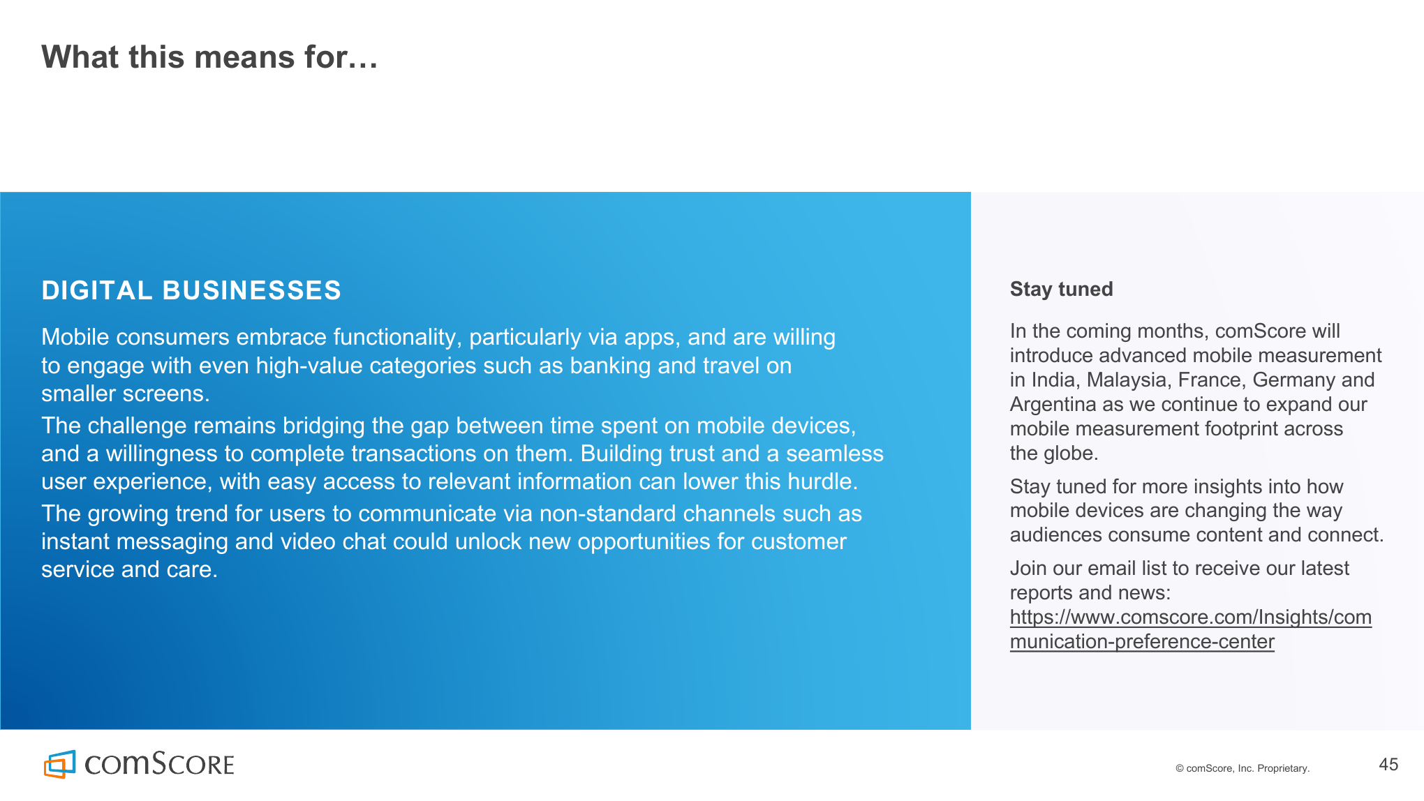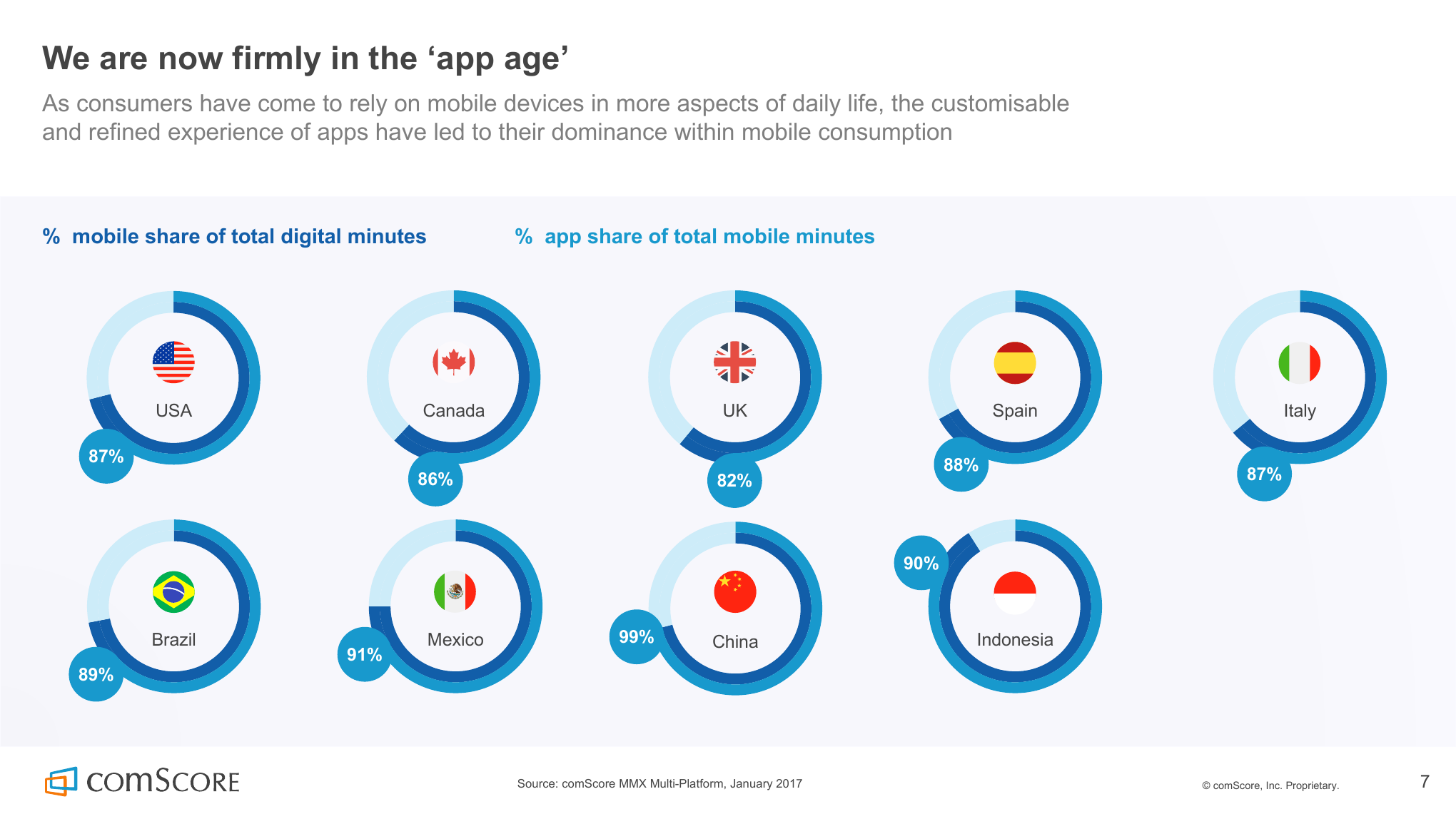 - 中国用户花费在移动App的上网时间高于美国(60%)和英国(53%)等其他大型数字市场。